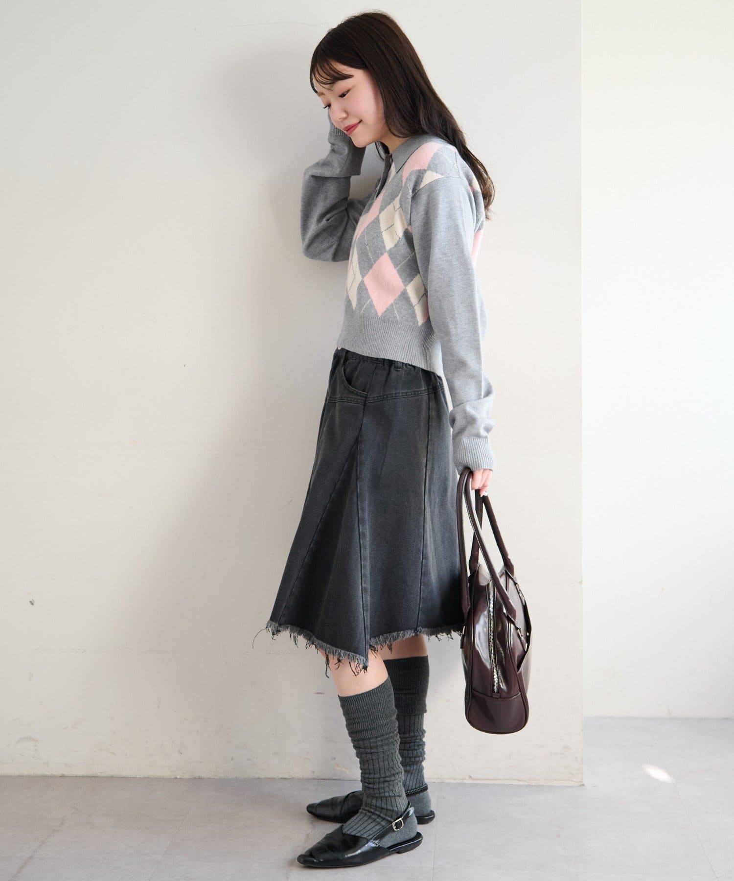 フレアスカートやミニボトムでガーリーな着こなしも◎。