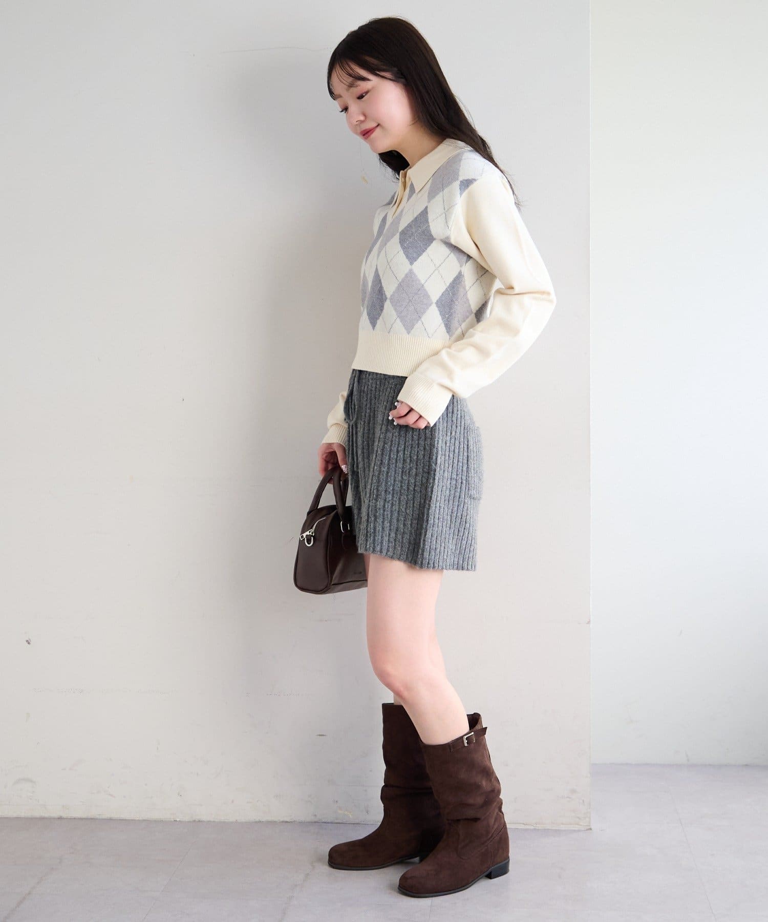 ハイウエストボトムと合わせるとバランス良く着用できます。