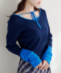 【4色展開/前後2WAY】バイカラースクエアニット