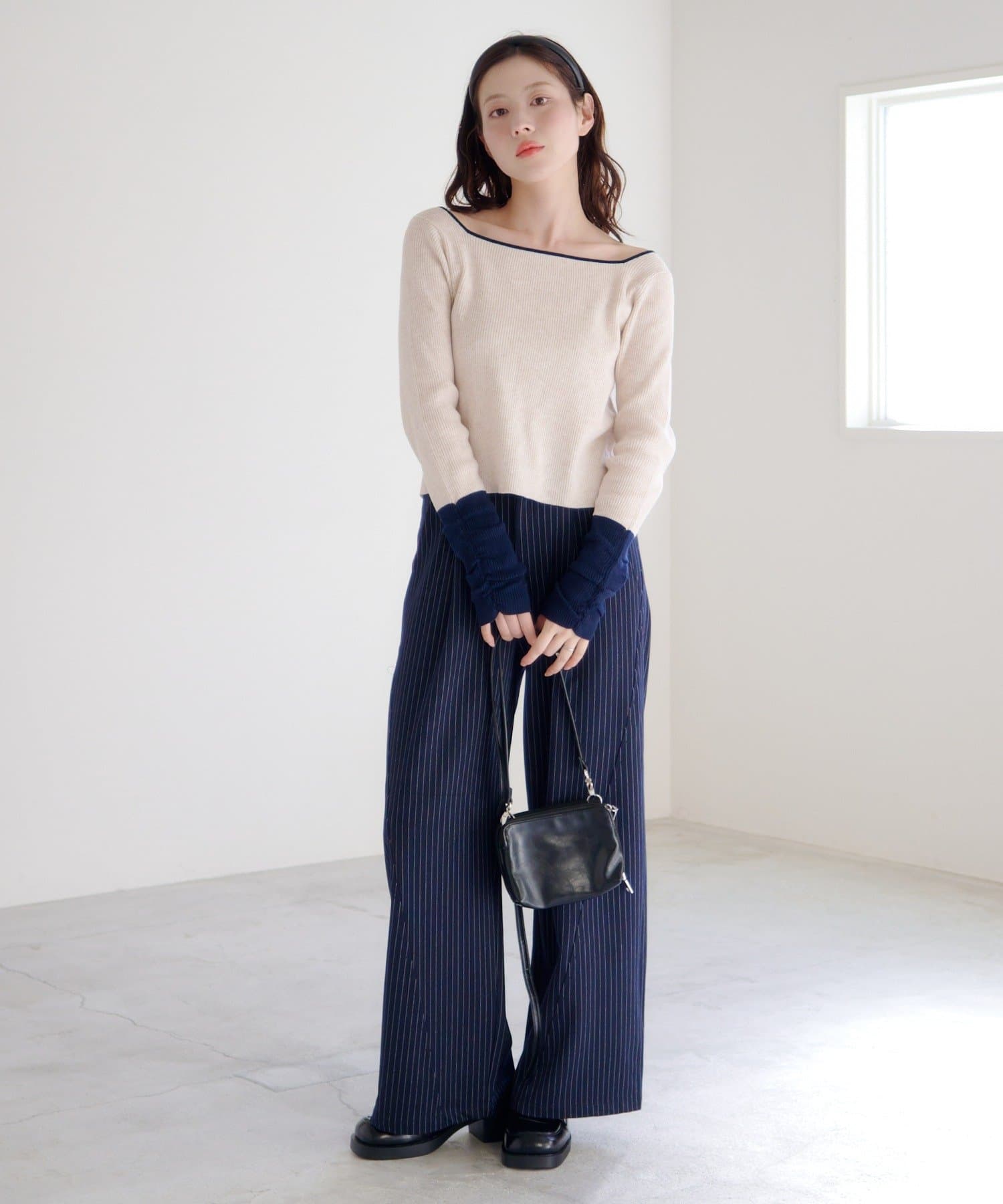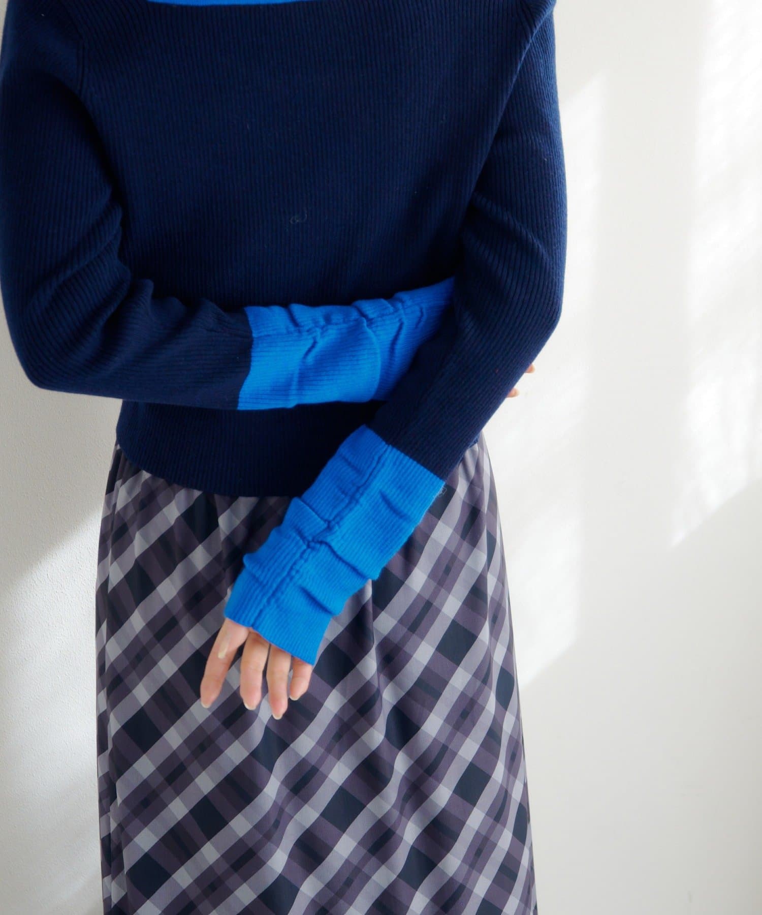 シンプルなシルエットながら、配色デザインと袖口のアクセントでさりげなくトレンド感をプラス。