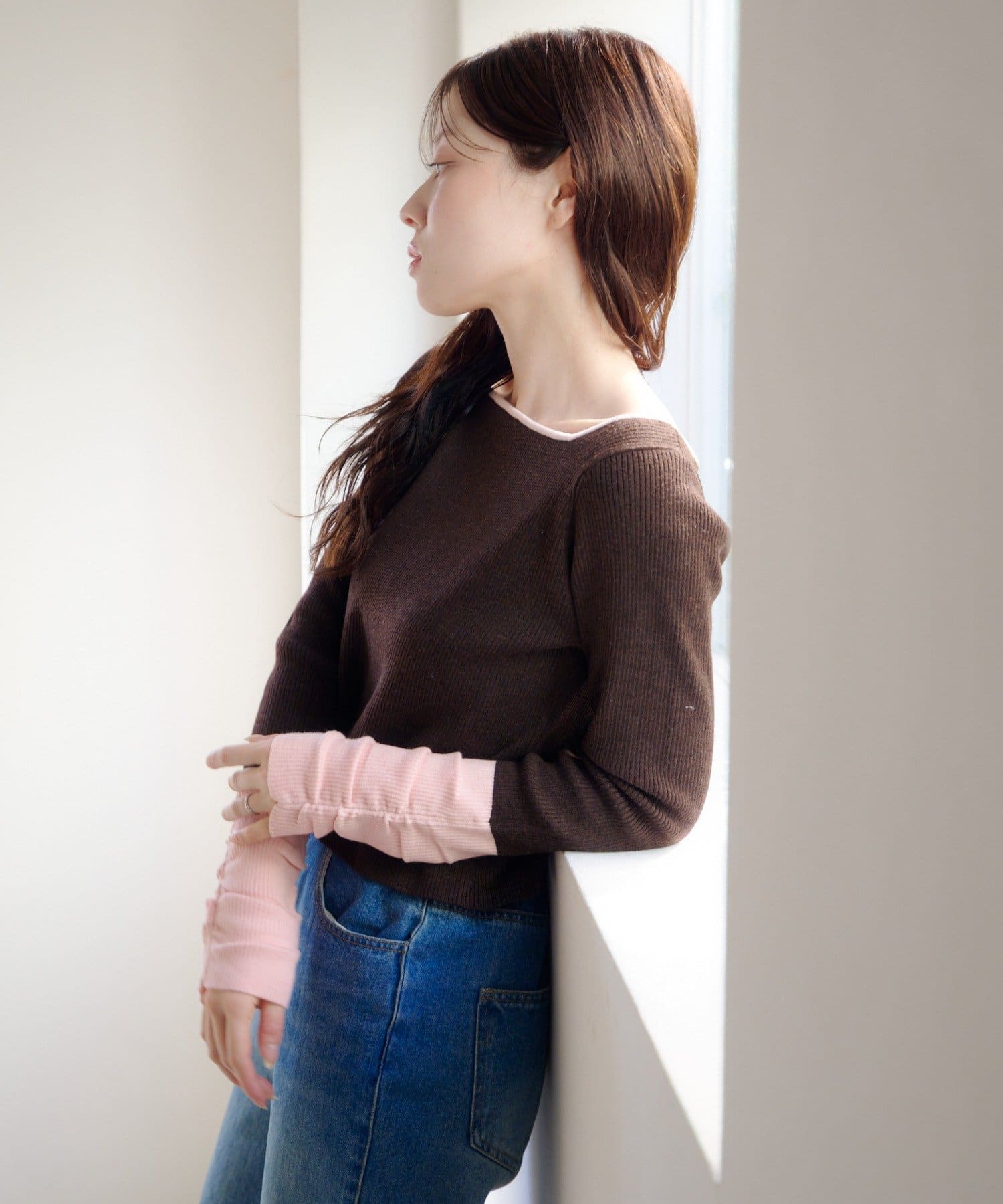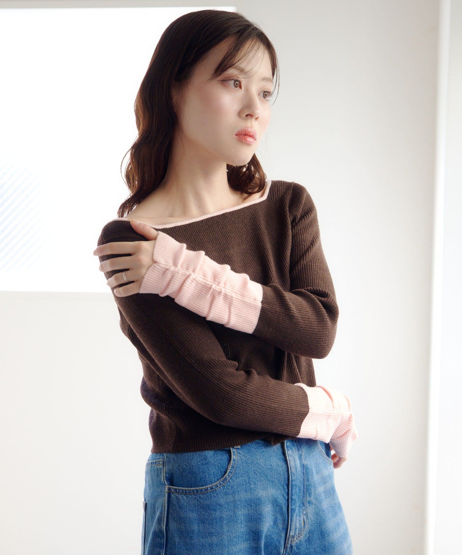 TOP > Kastane > レディース > トップス > ニット/セーター > 【4色展開/前後2WAY】バイカラースクエアニット