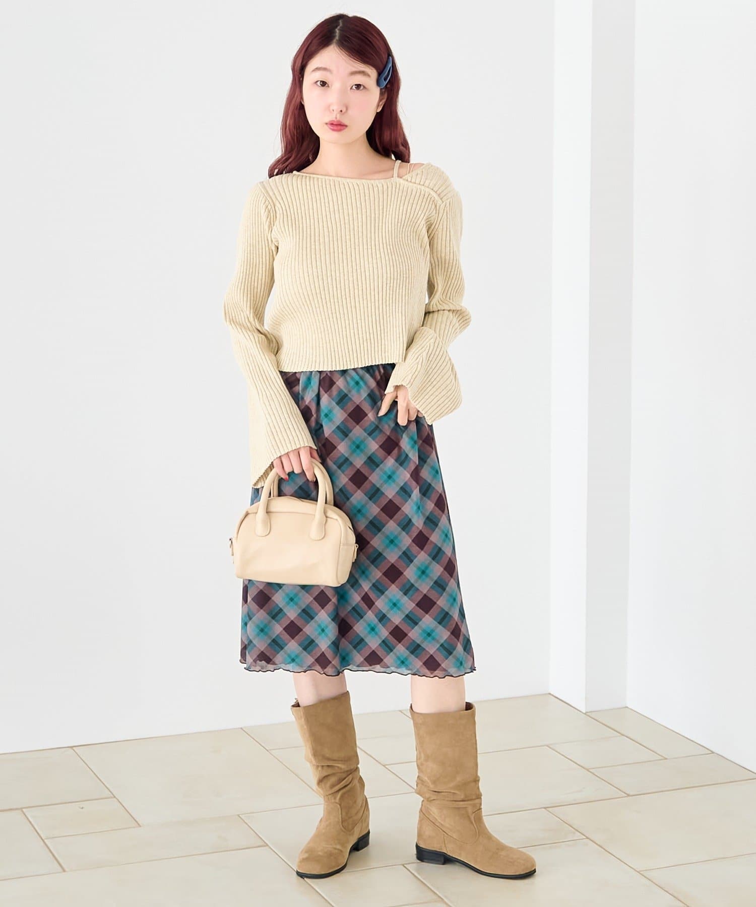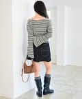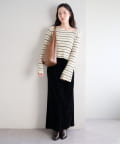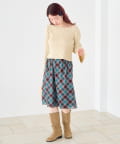 フレアスカートを合わせて、女性らしいフェミニンスタイル。