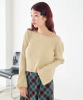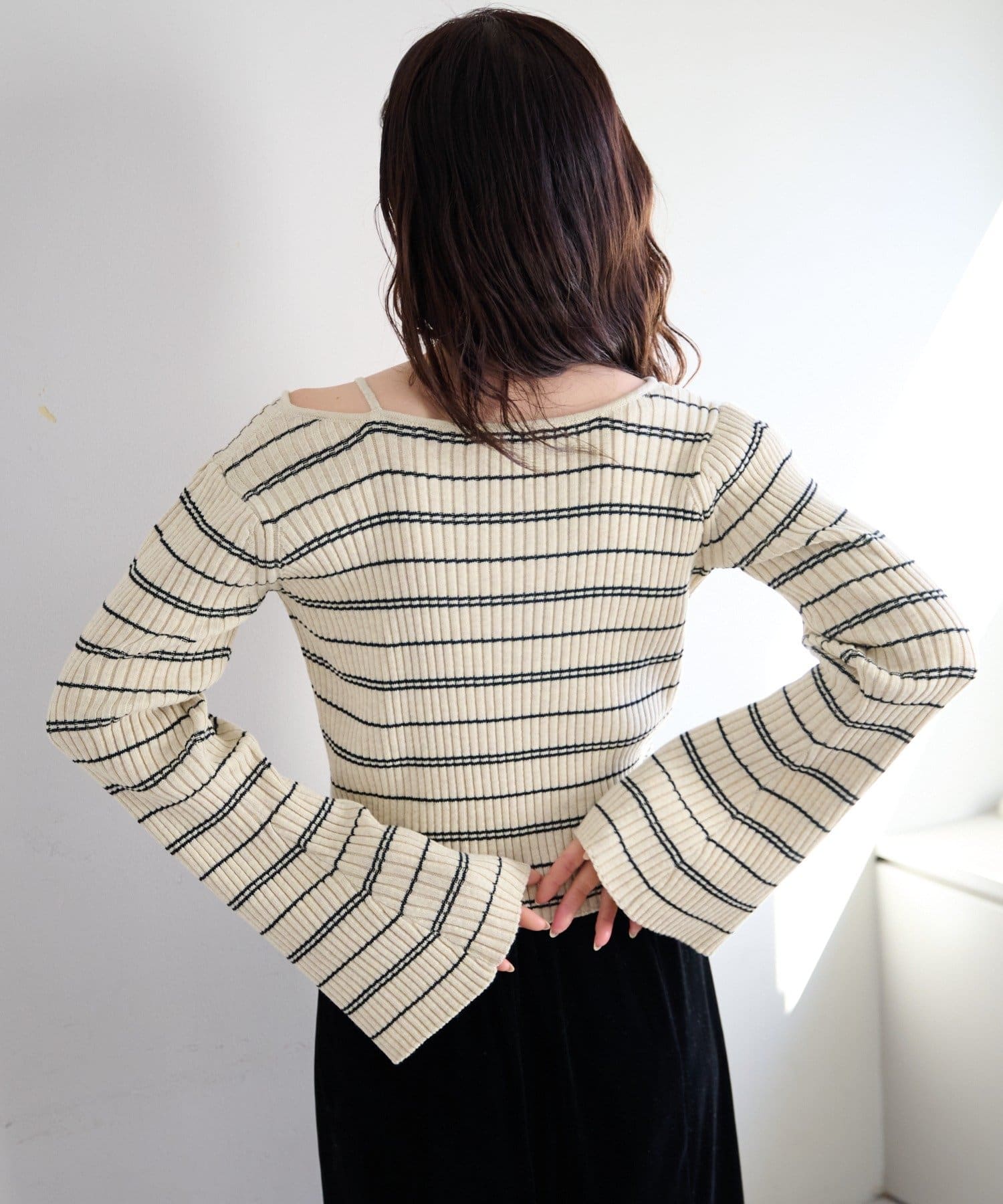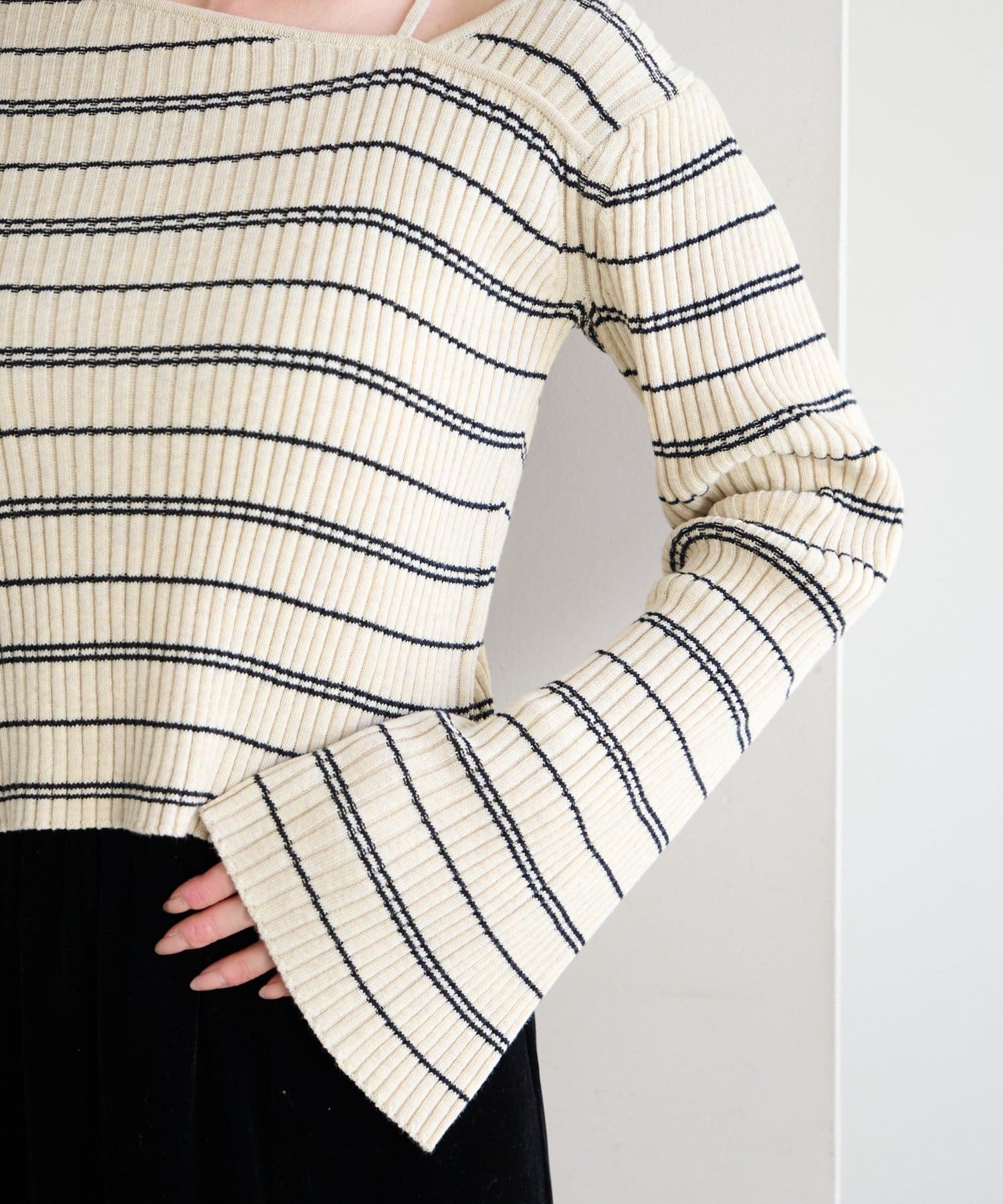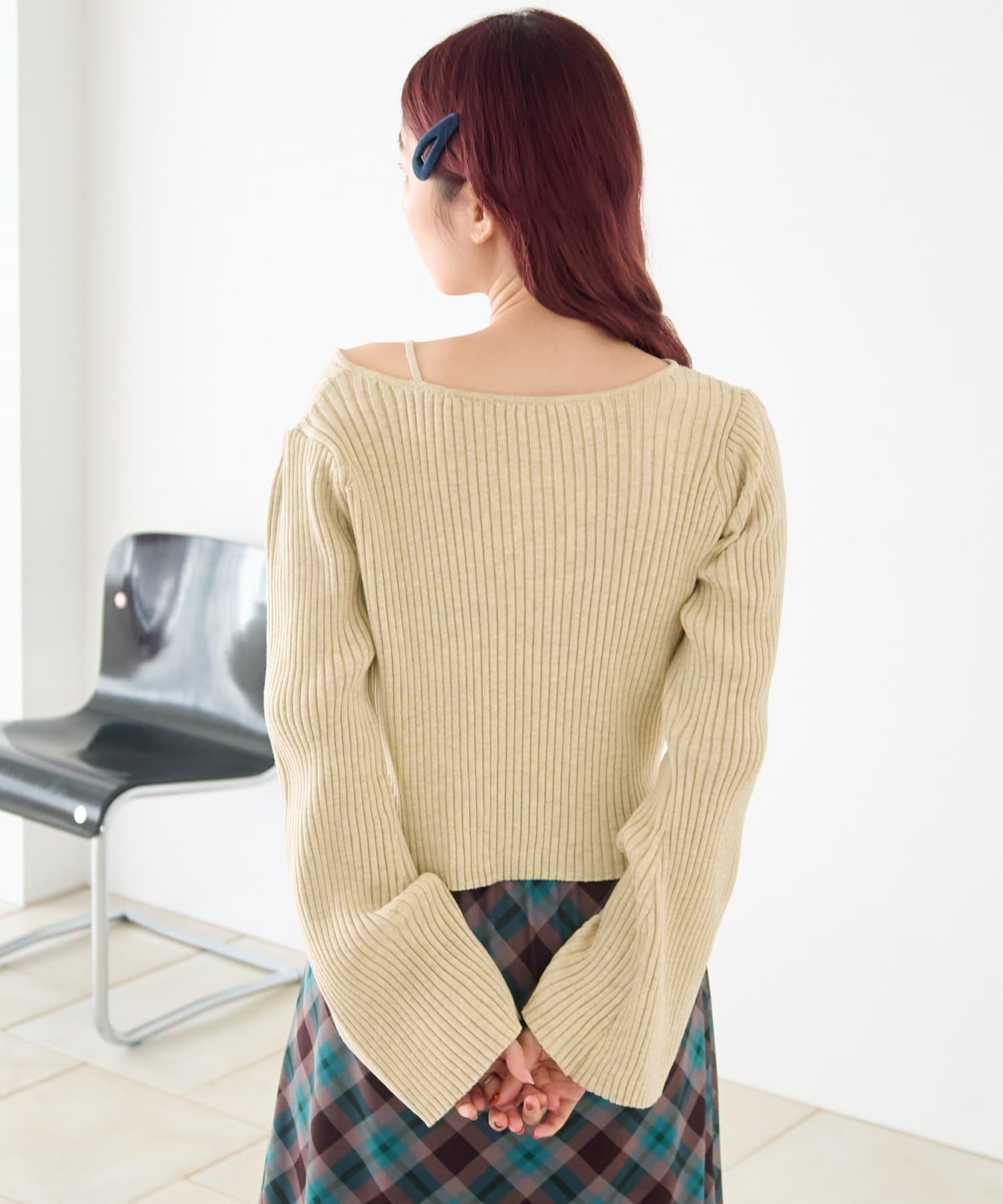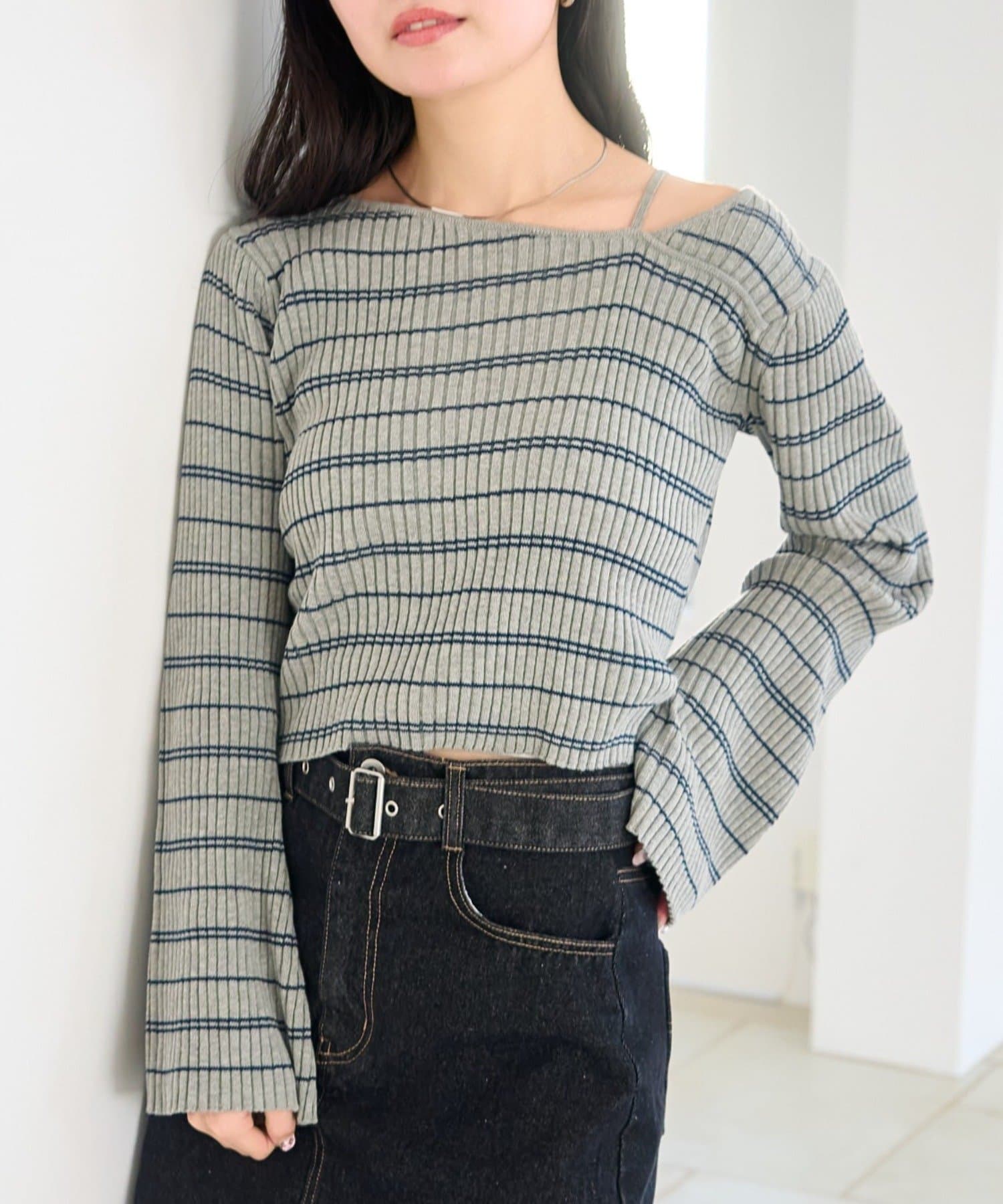 TOP > Kastane > レディース > トップス > ニット/セーター > 【ボーダー&無地】フレアスリーブリブニット