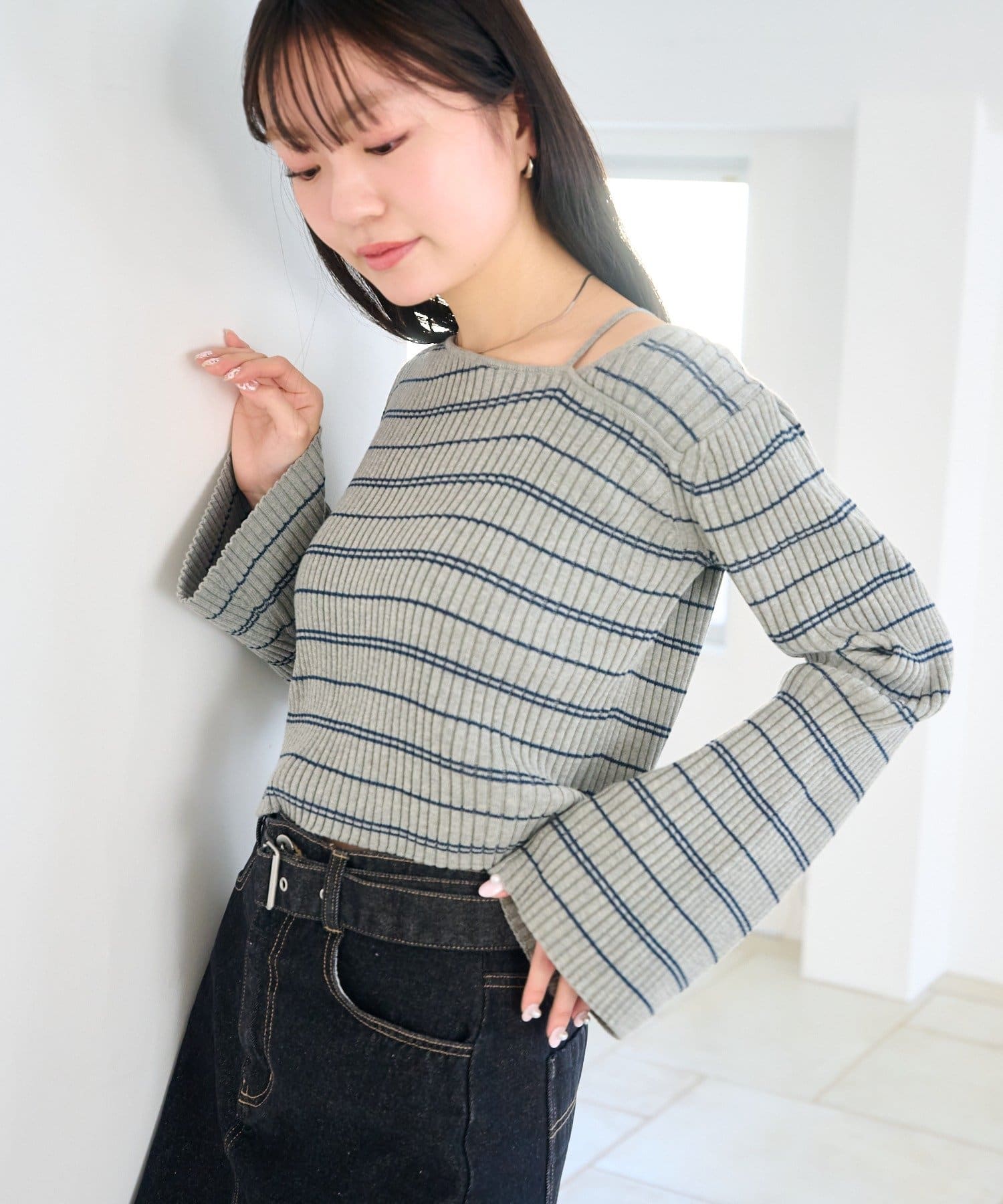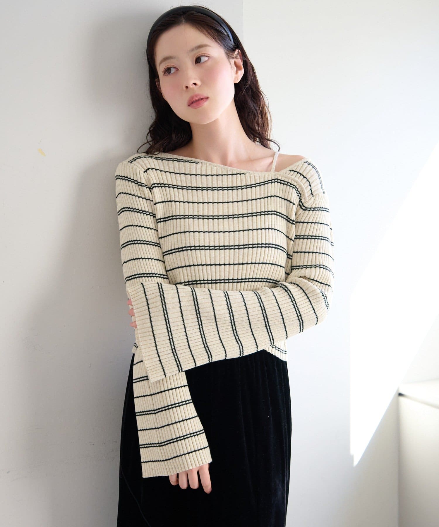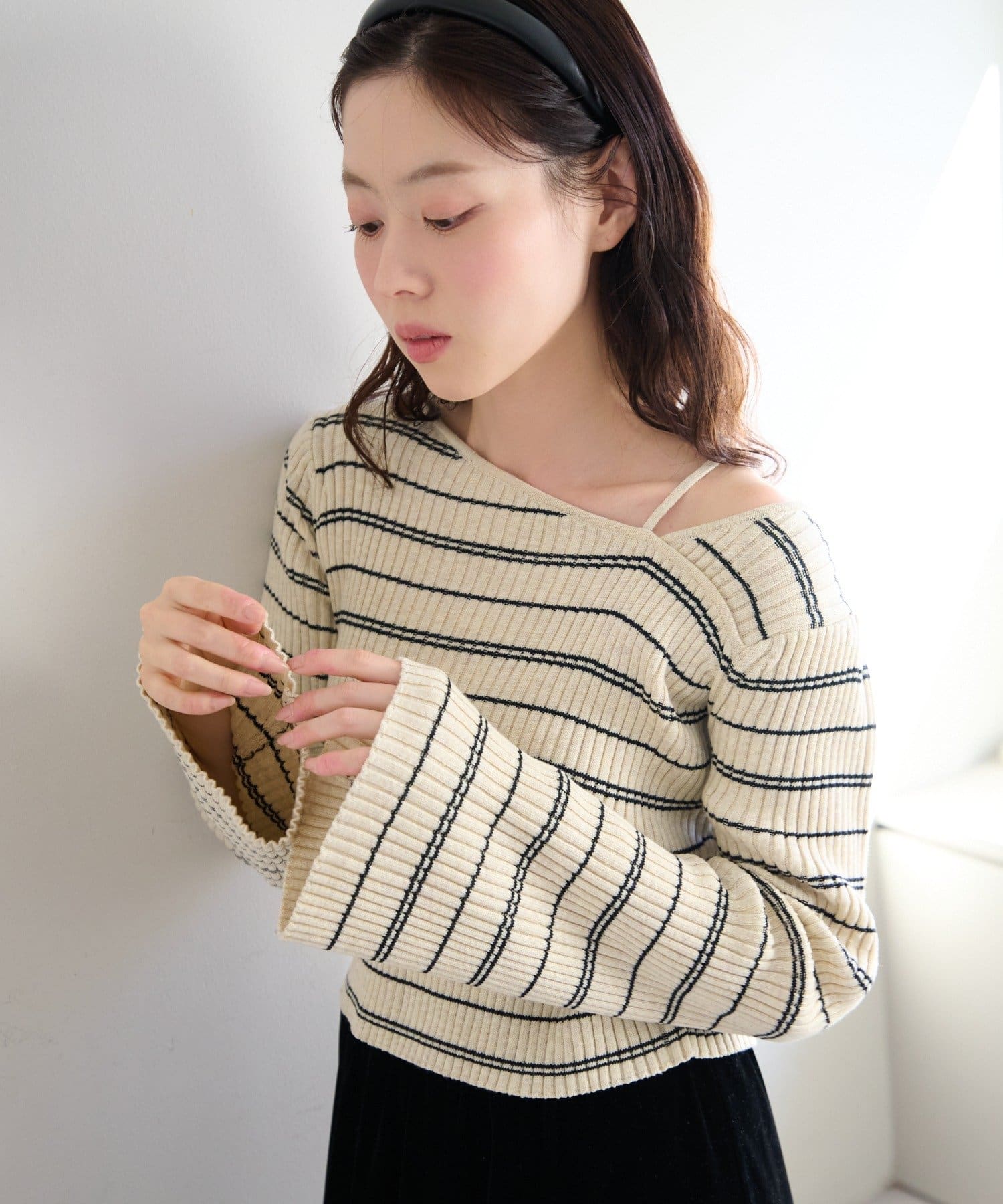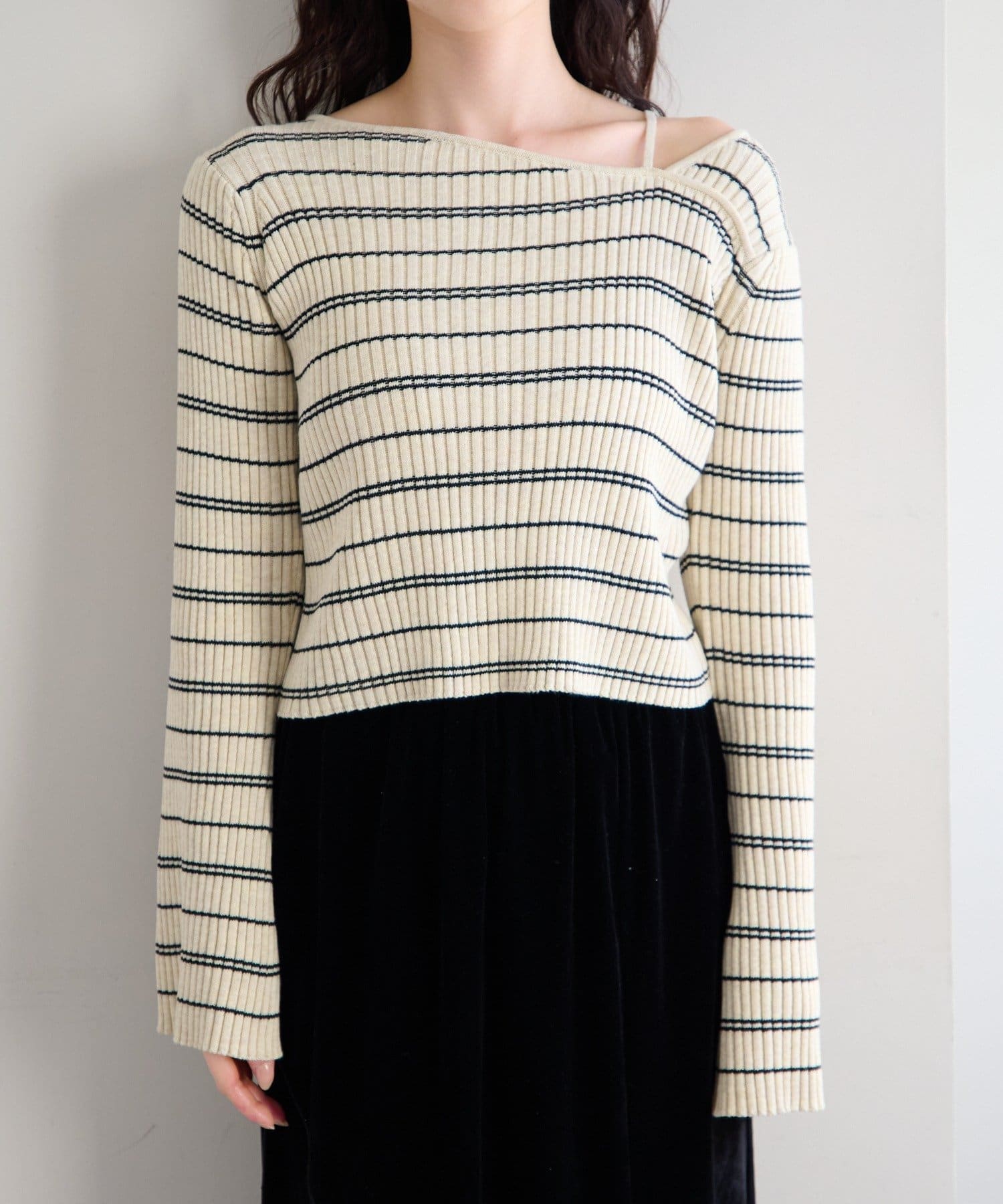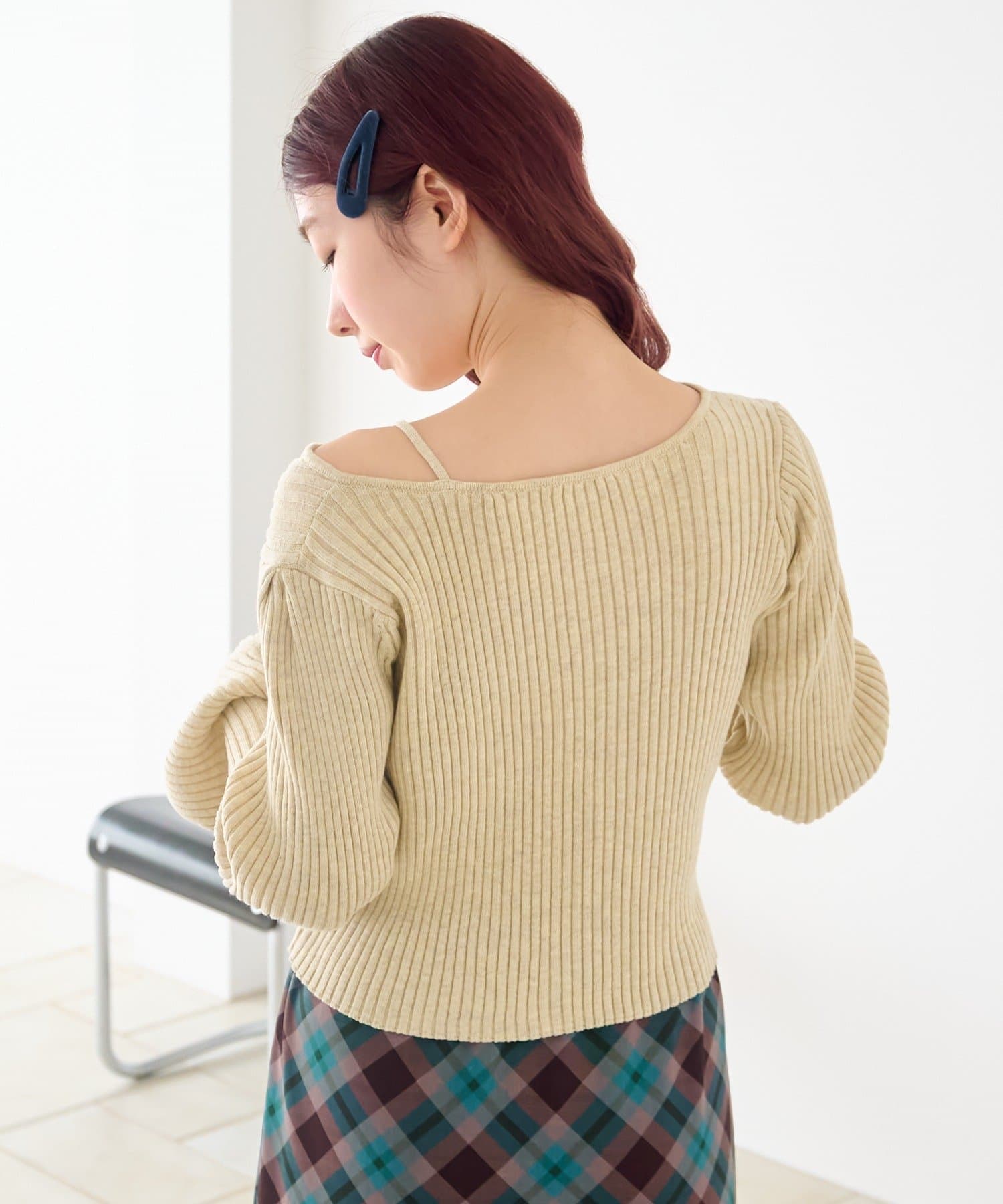 TOP > Kastane > レディース > トップス > ニット/セーター > 【ボーダー&無地】フレアスリーブリブニット