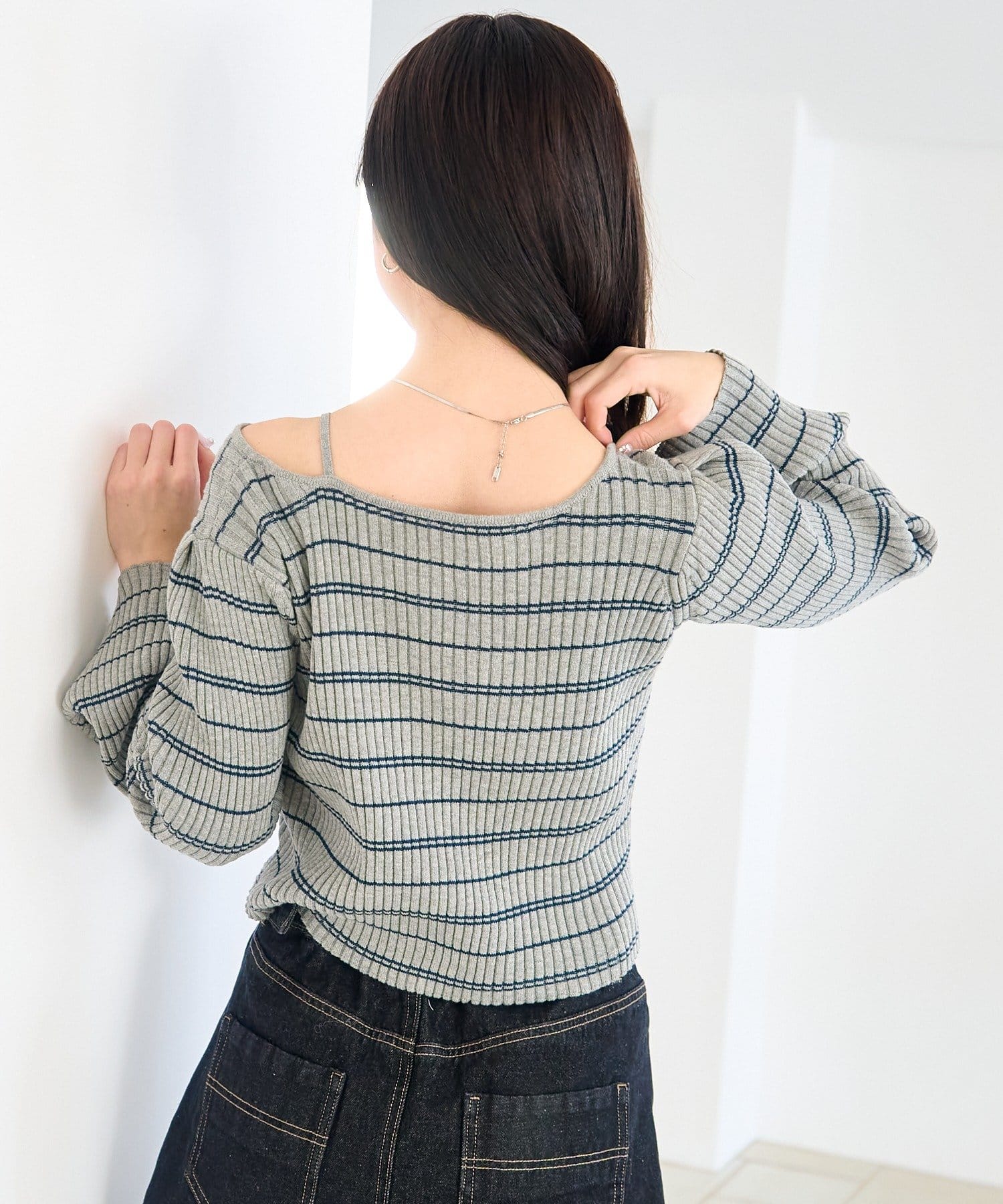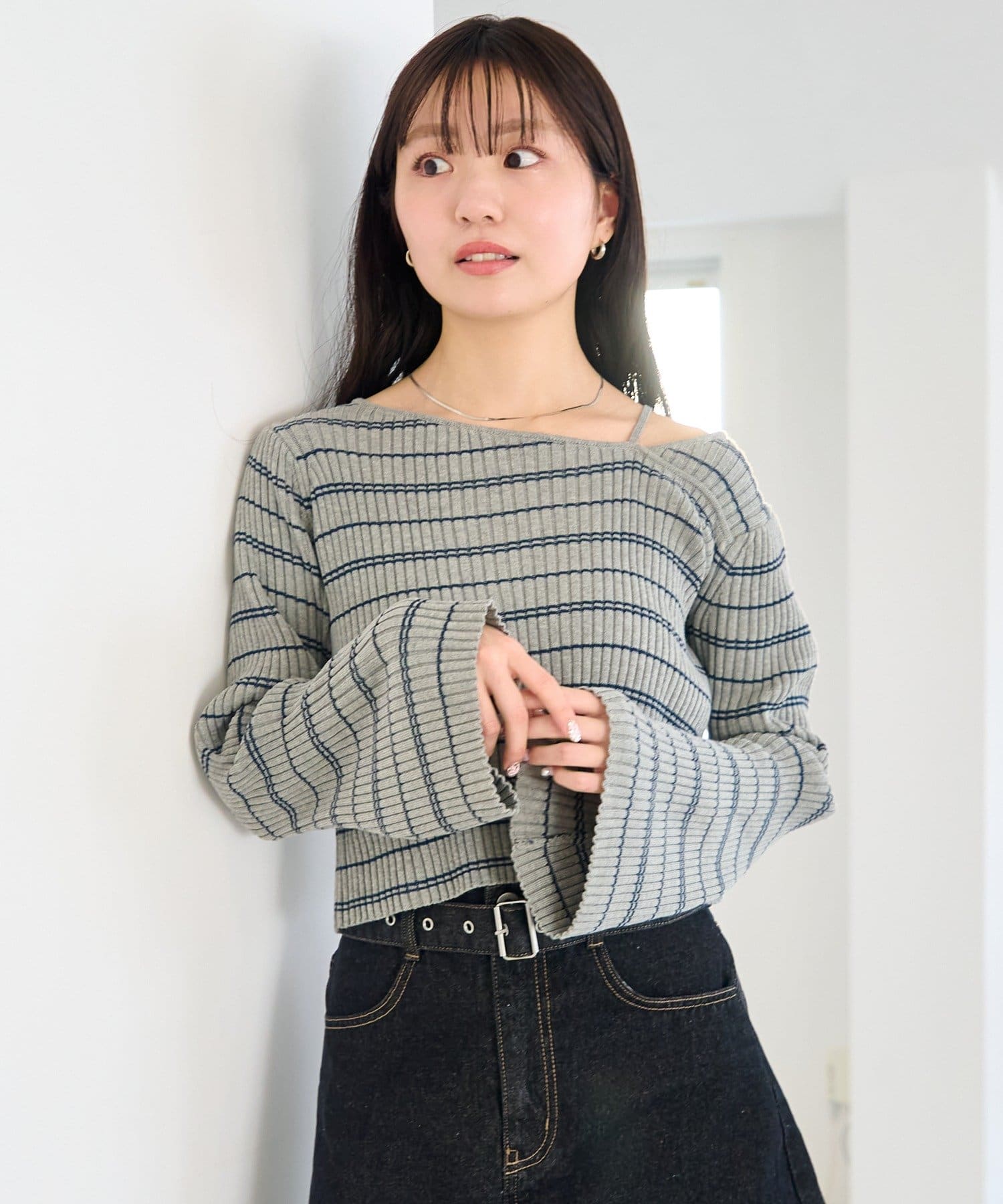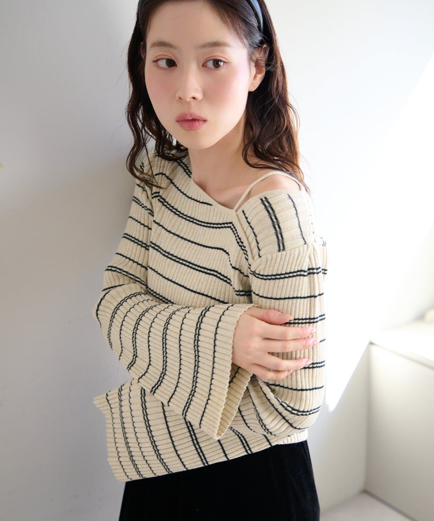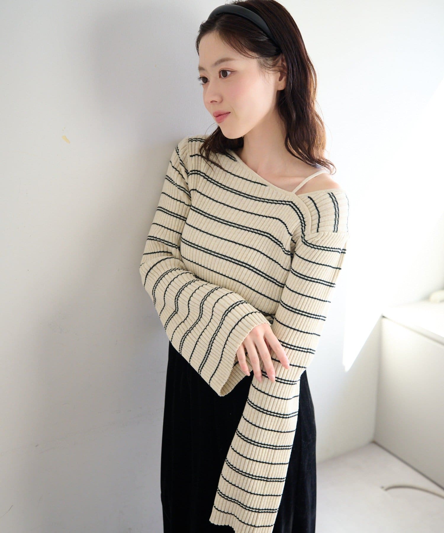 TOP > Kastane > レディース > トップス > ニット/セーター > 【ボーダー&無地】フレアスリーブリブニット