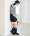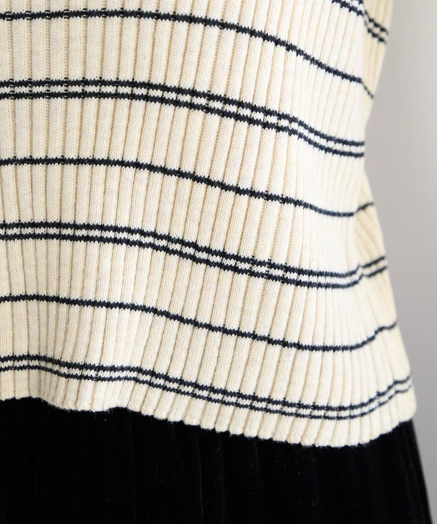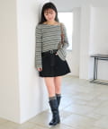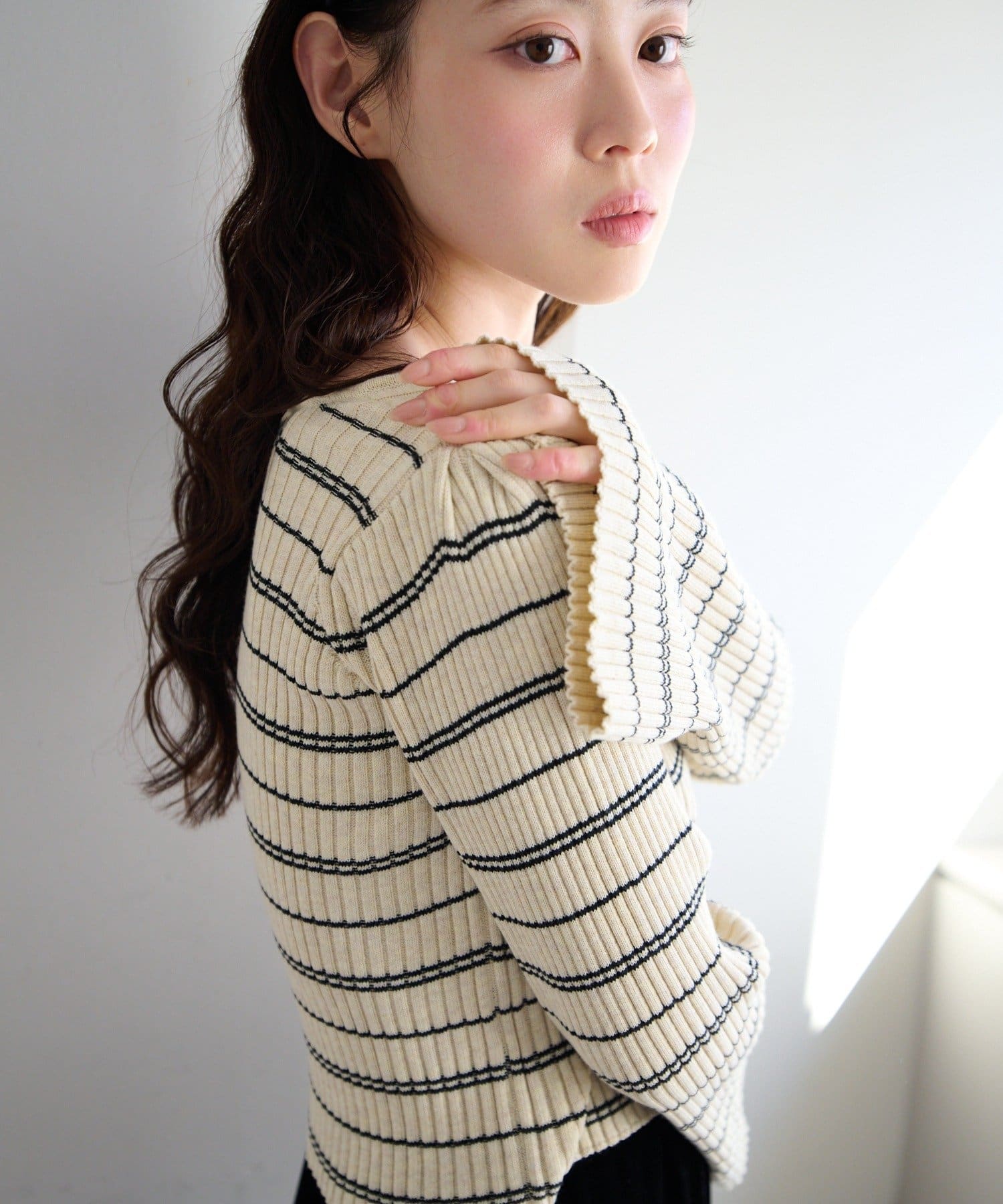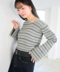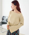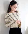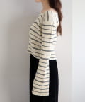 • Kastane(カスタネ) 【ボーダー&無地】フレアスリーブリブニット