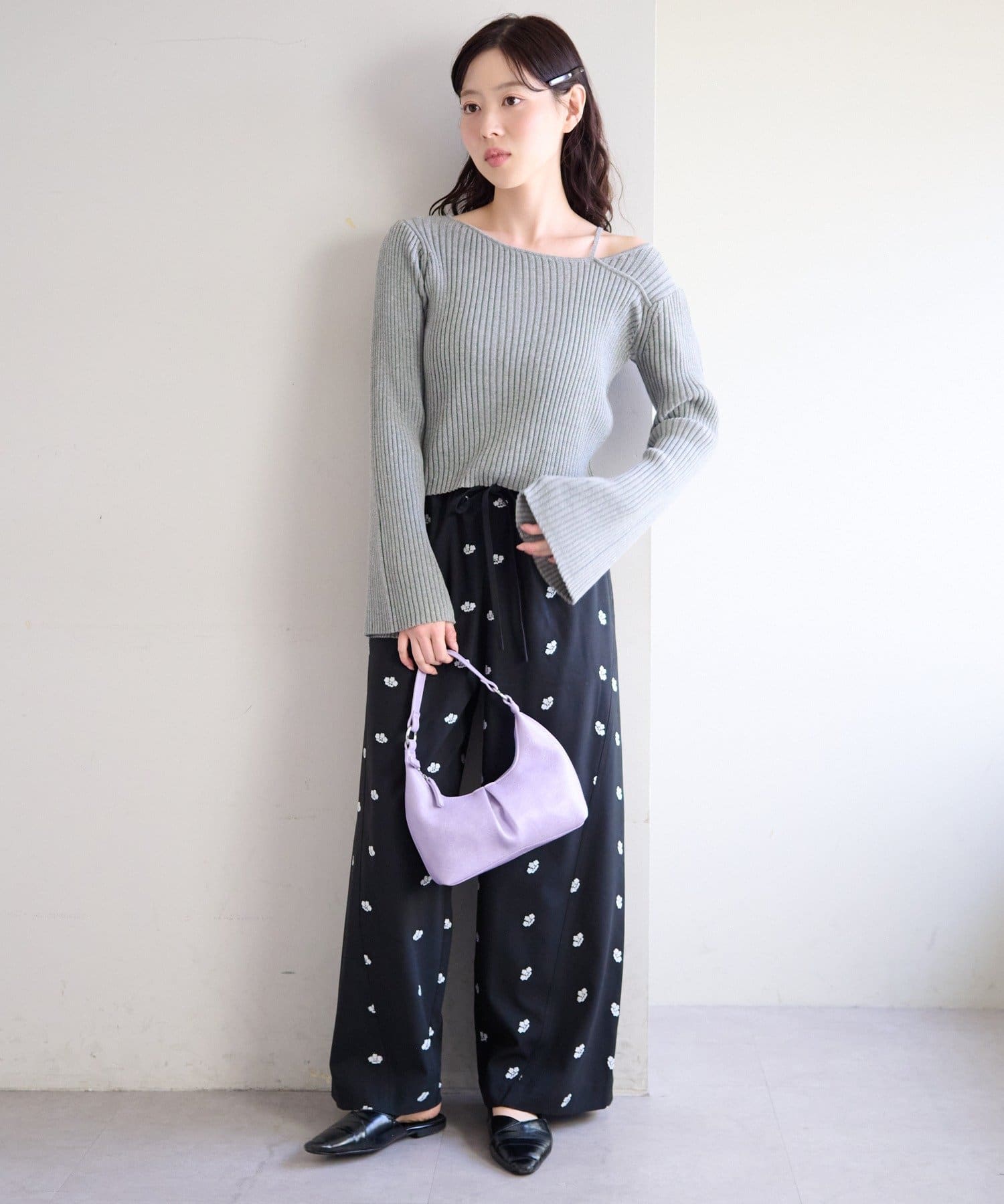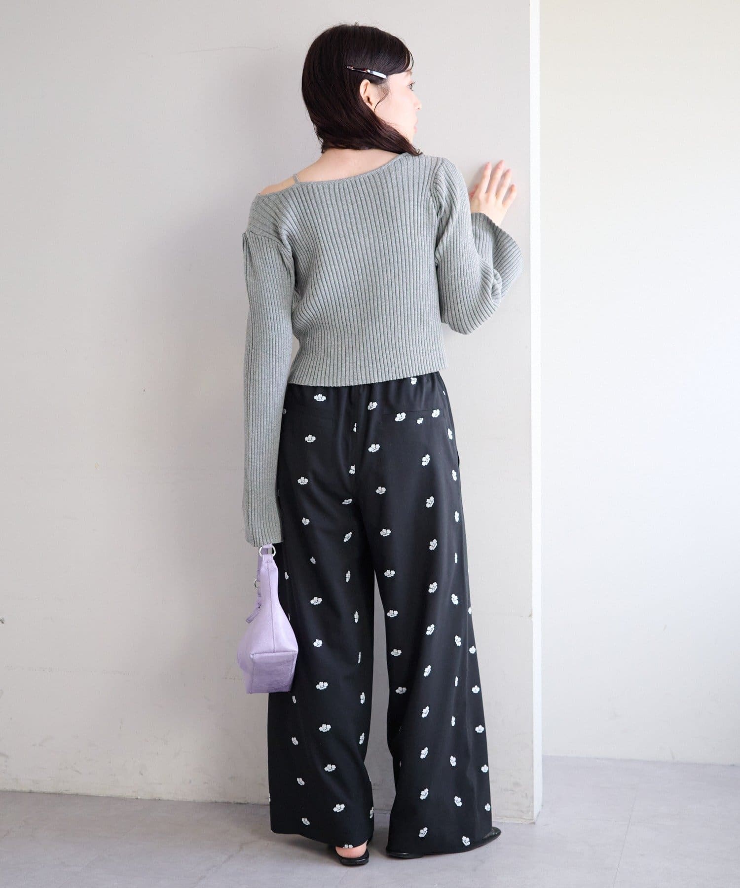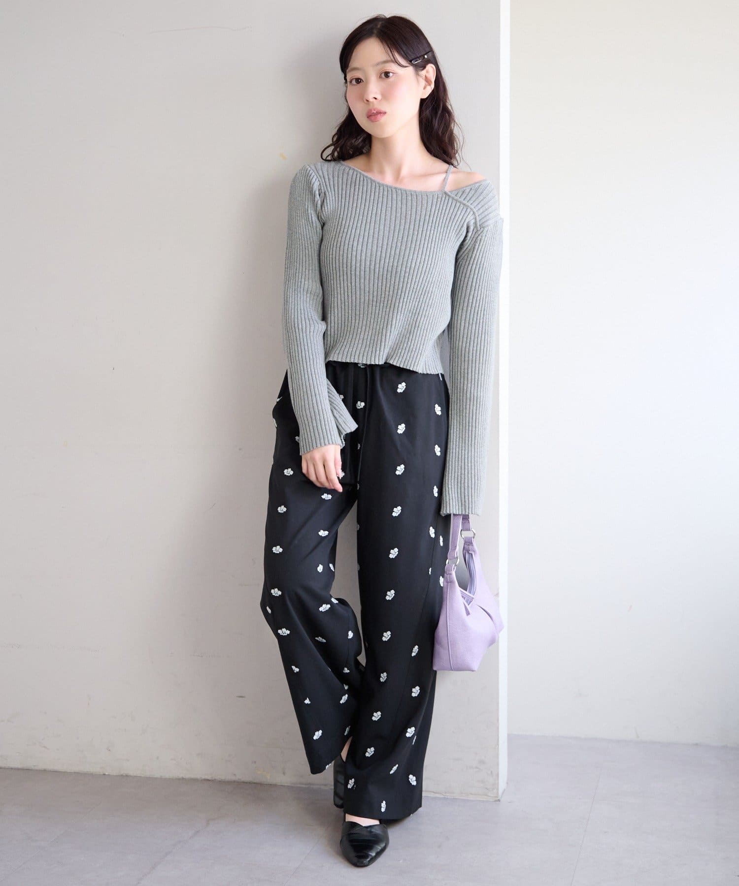 フラワーステッチワイドパンツ