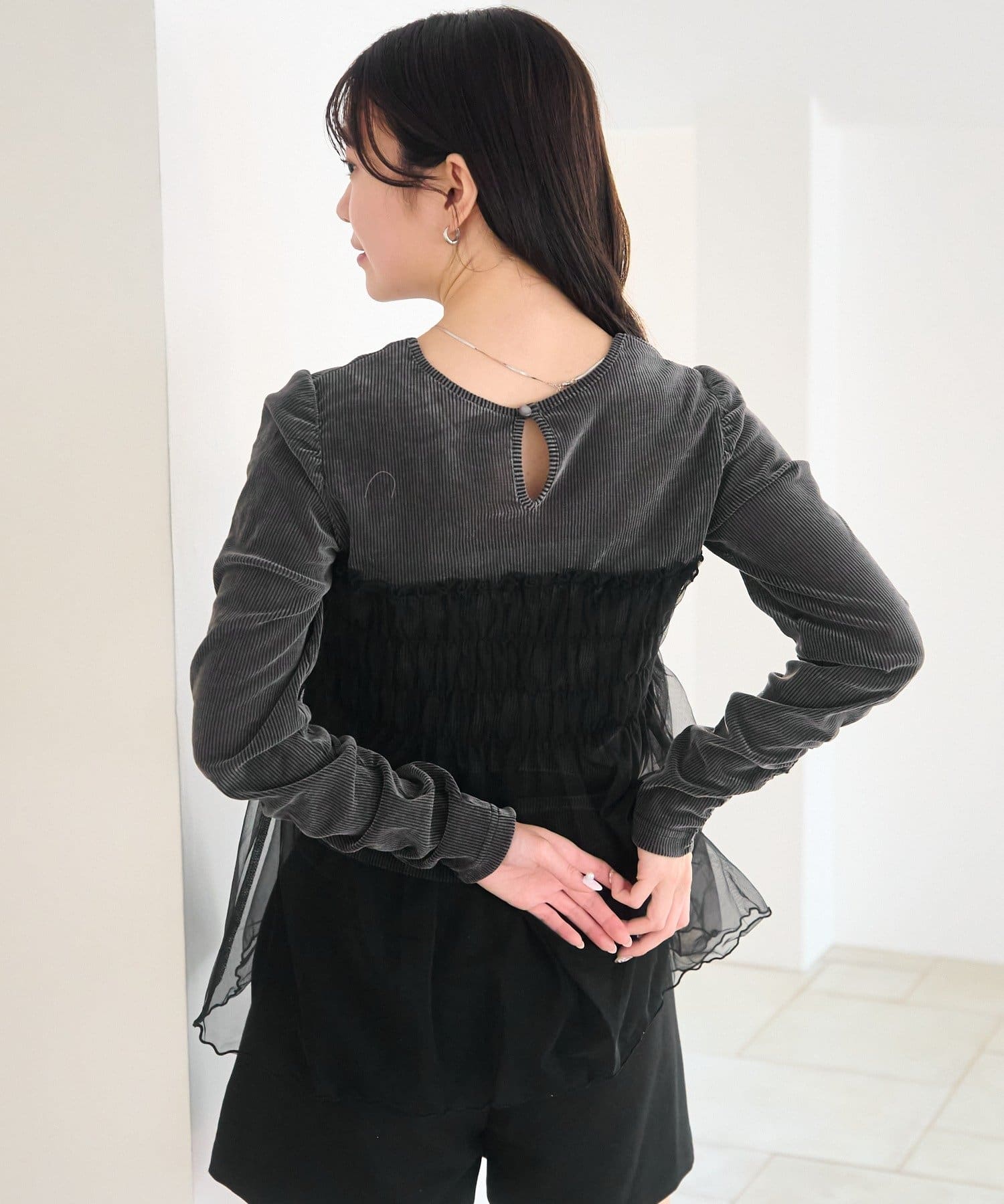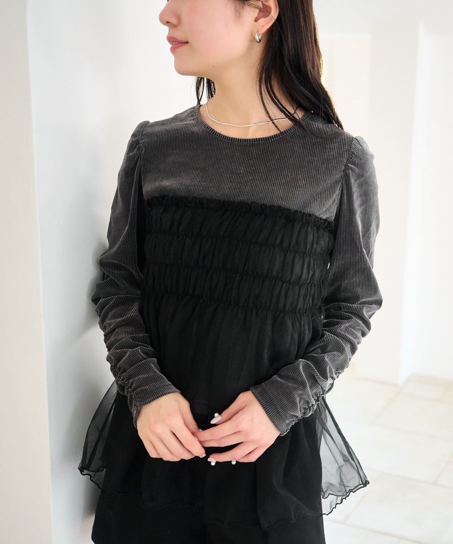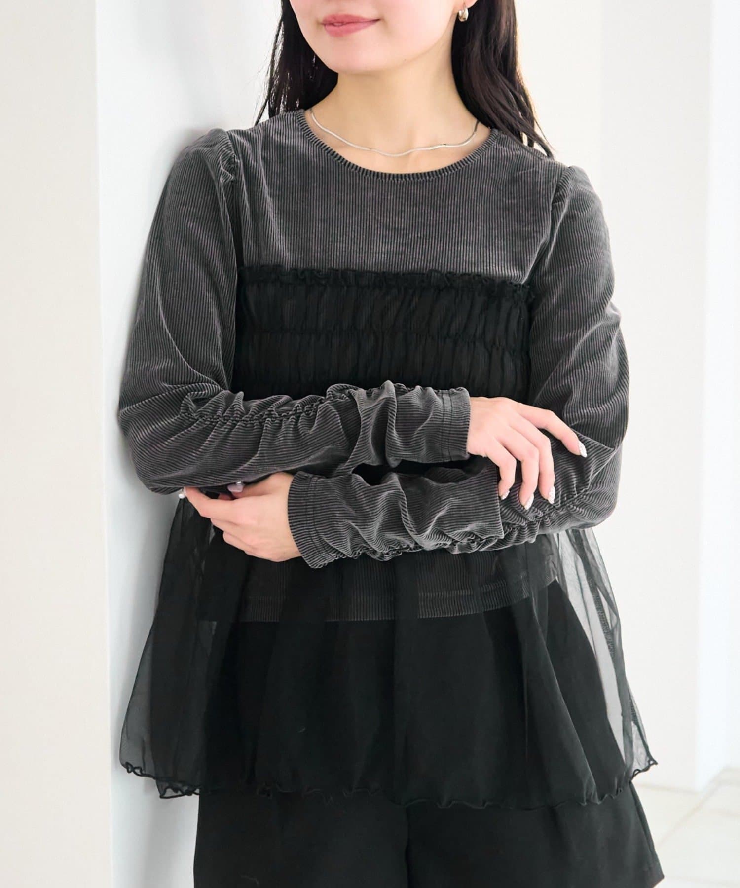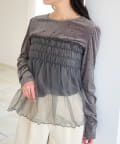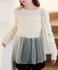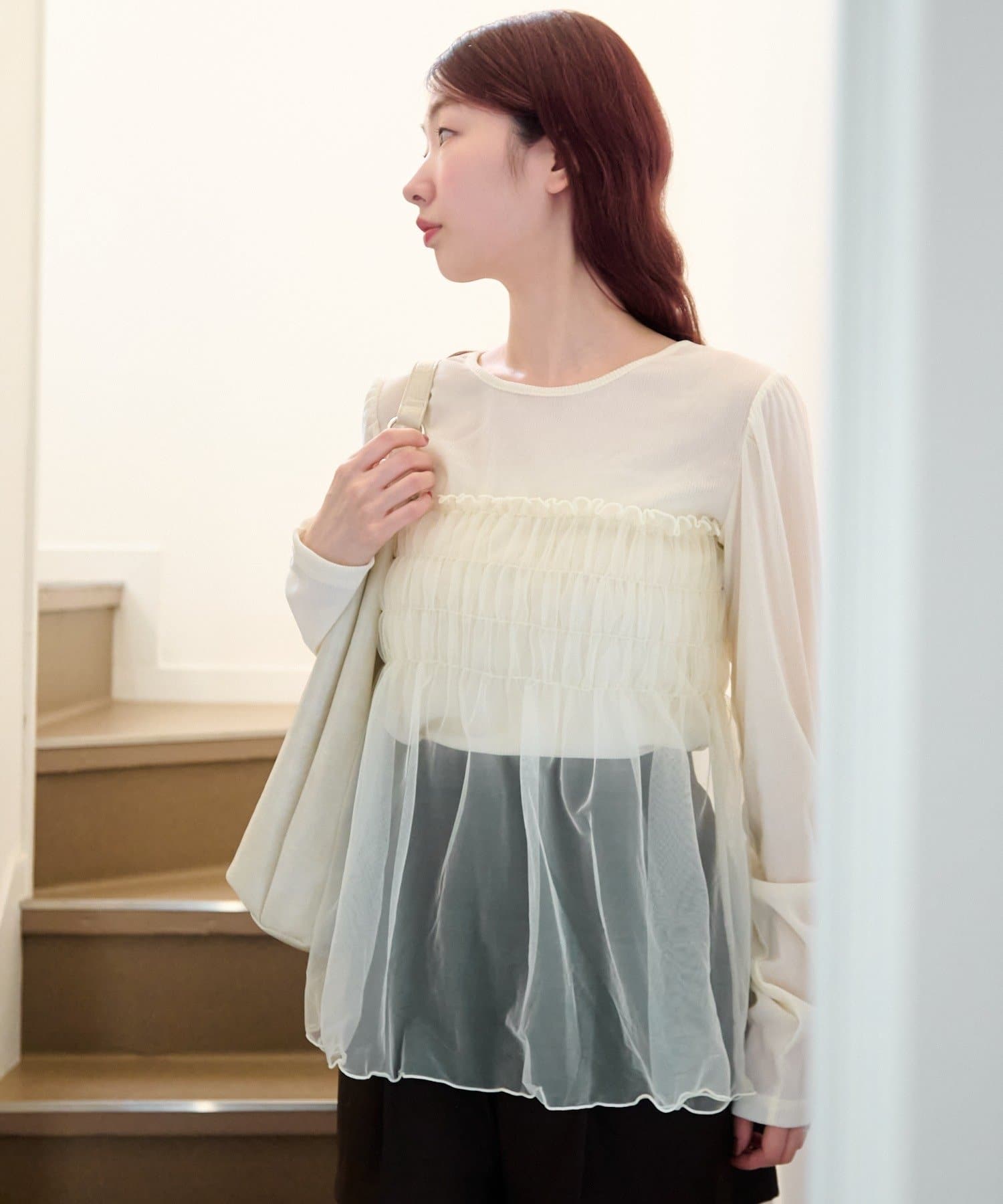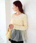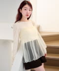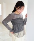 カットソーとチュールをドッキングした、一枚でレイヤードスタイルが完成するデザインプルオーバー。