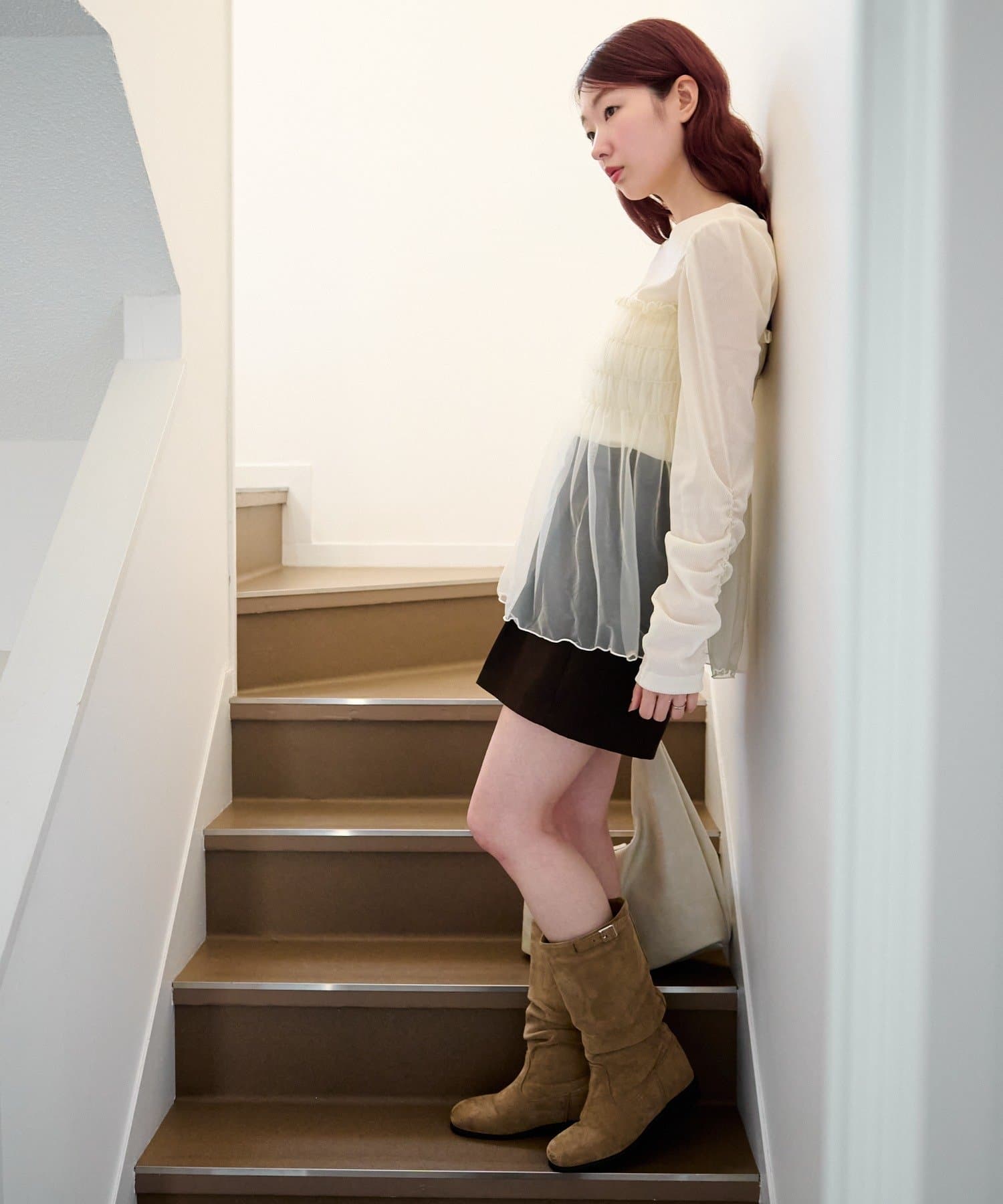 透け感チュールが軽やかさを添える、大人フェミニンな一着
