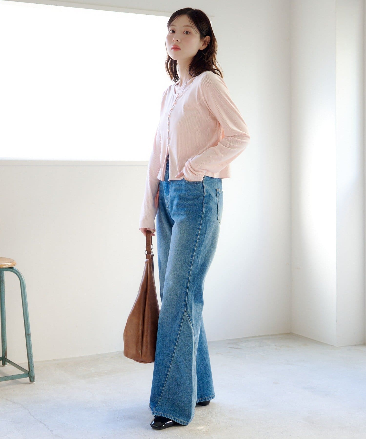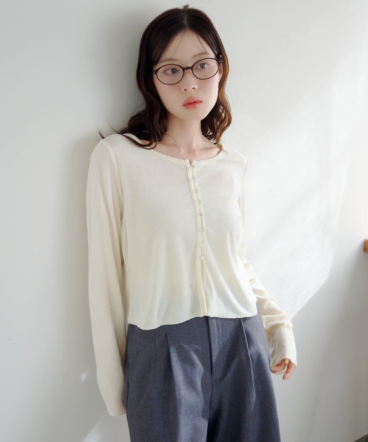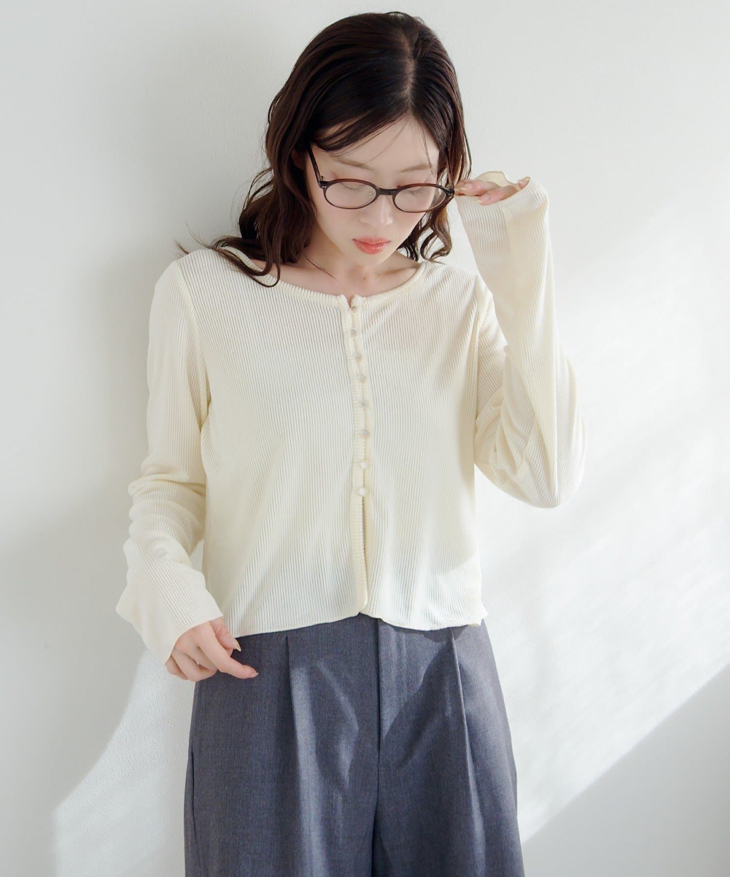 フロントボタン仕様なので、トップスとしても羽織りとしても着用可能。