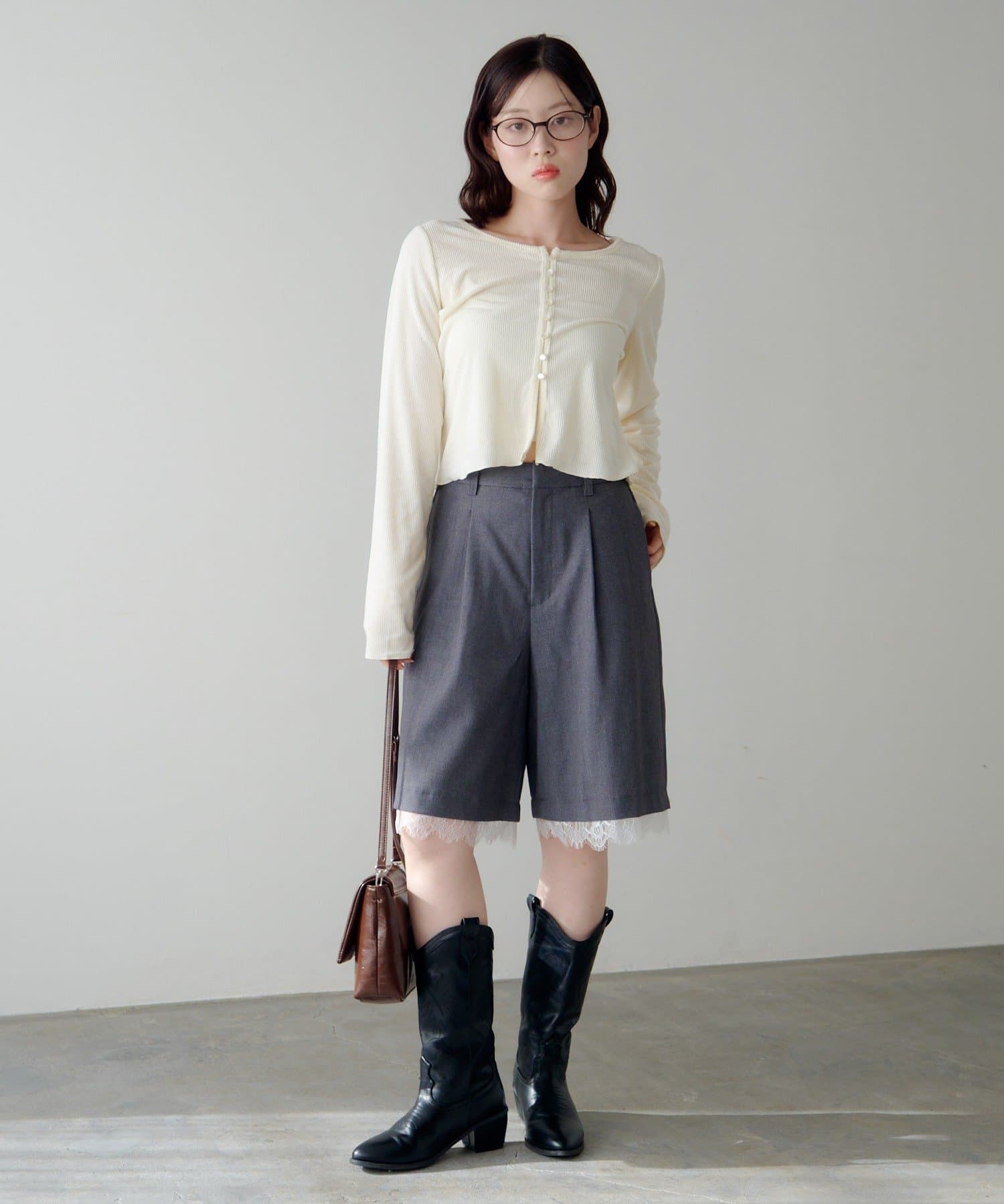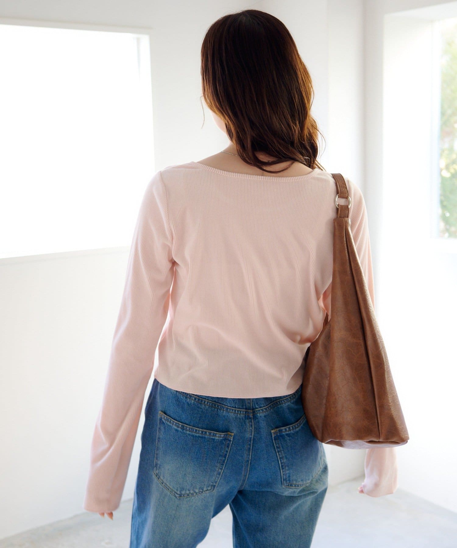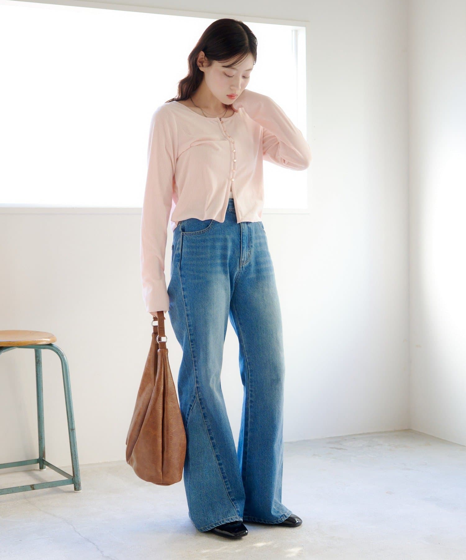 フロントボタン仕様なので、トップスとしても羽織りとしても着用可能。