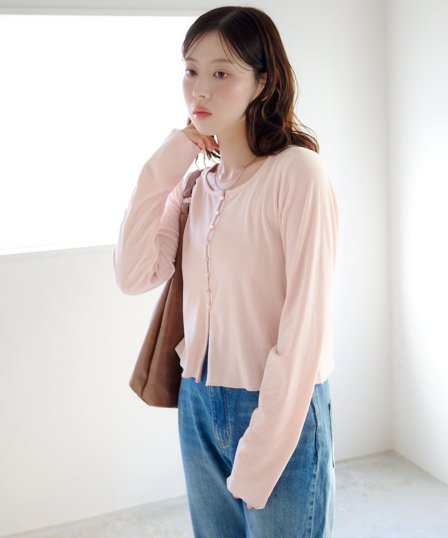 柔らかなカットベロア素材感が魅力のボタンカーディガン。