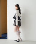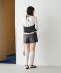 ミニスカートと合わせて、フリルの甘さを引き立てたガーリーな着こなしに。