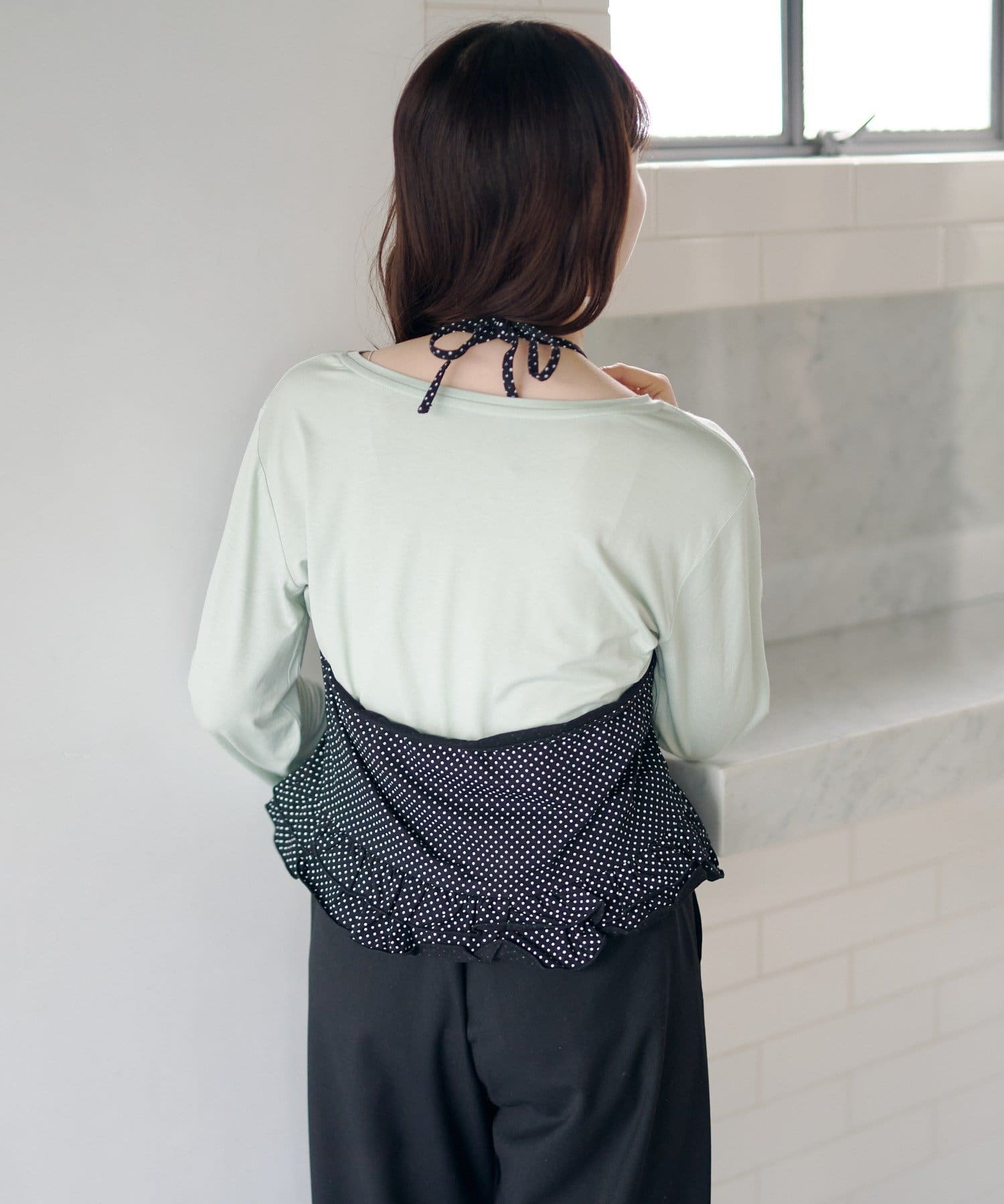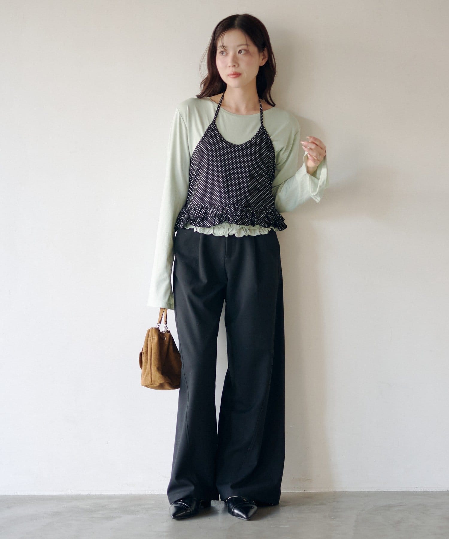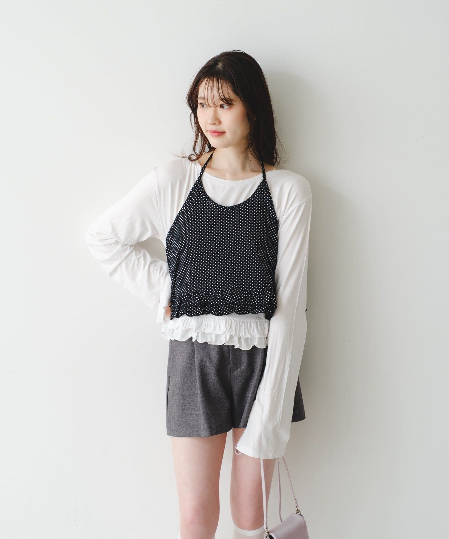 ドット柄のキャミソールとロンTがセットになった着映えアイテム。