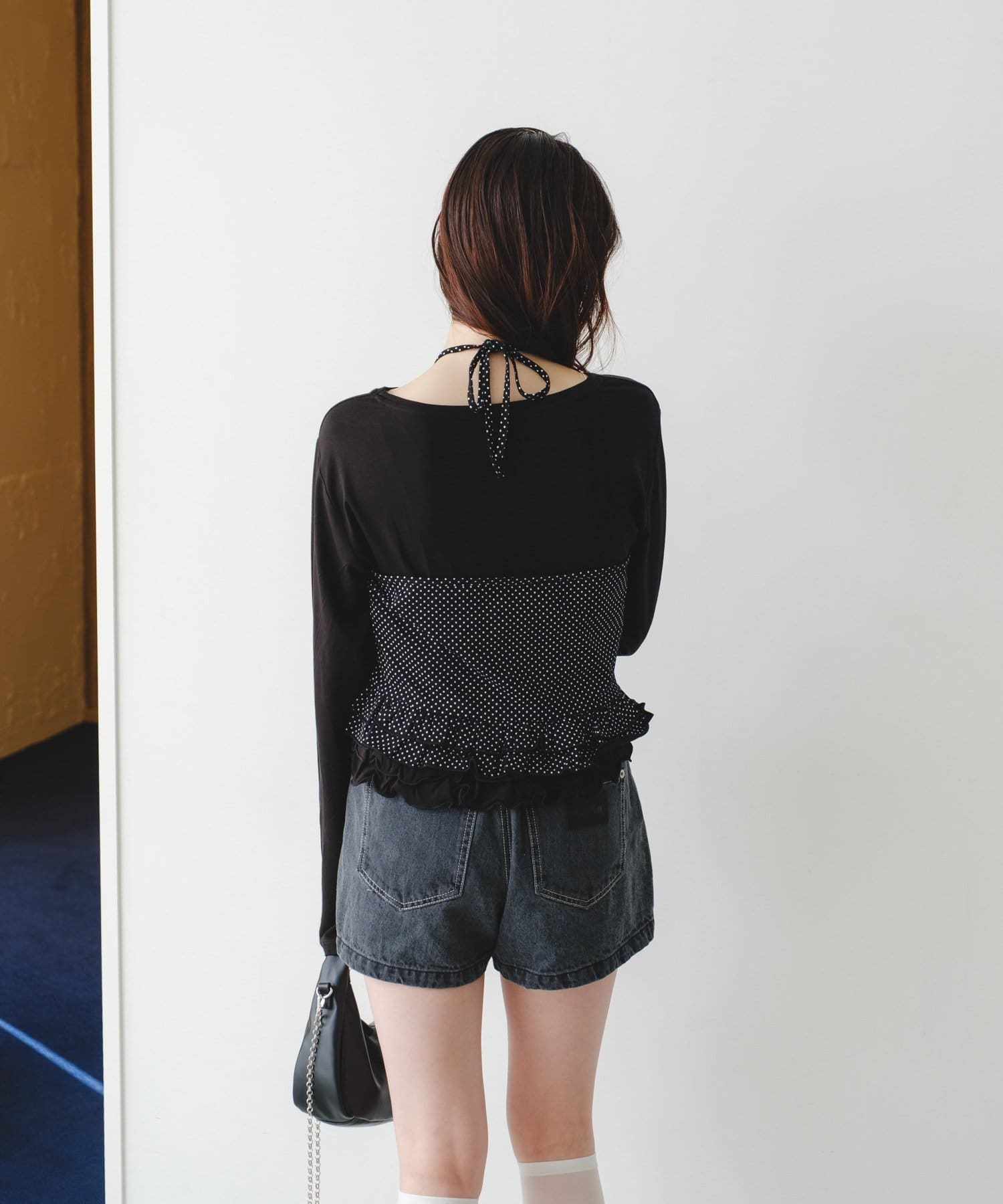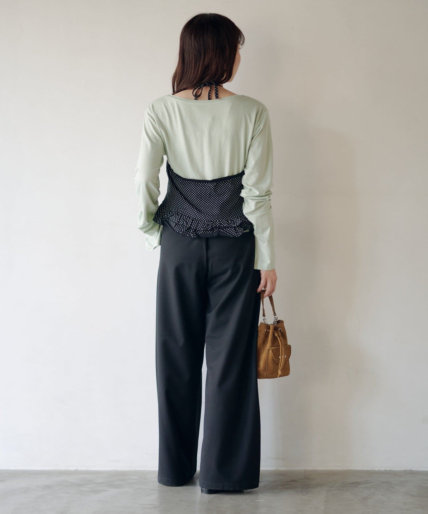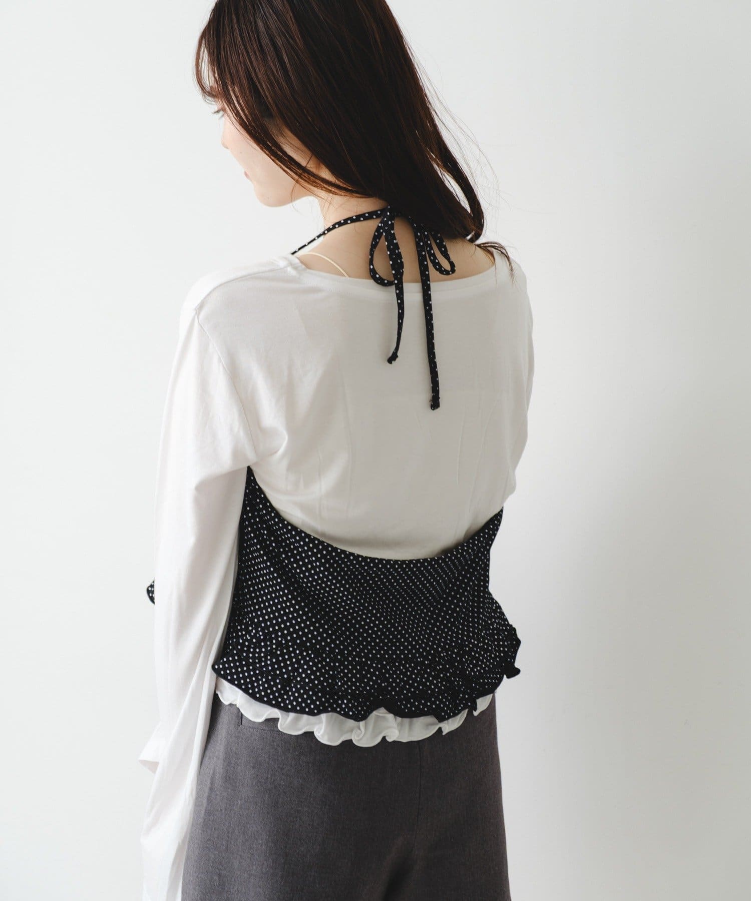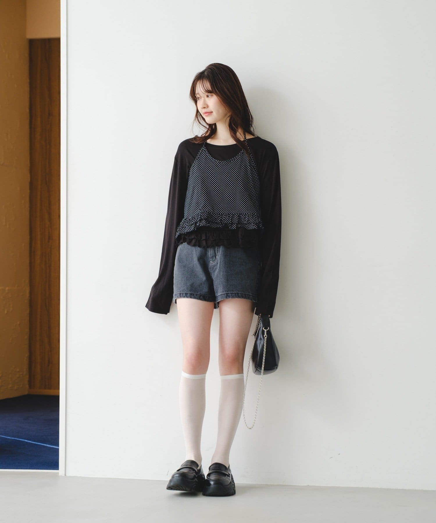 ドット柄のキャミソールとロンTがセットになった着映えアイテム。
