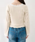 繊細なレースをあしらったトップスとカーディガンのセットアイテムです。