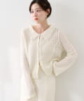 【セットアップ対応】クロスジャガード衿付きカーディガン