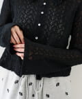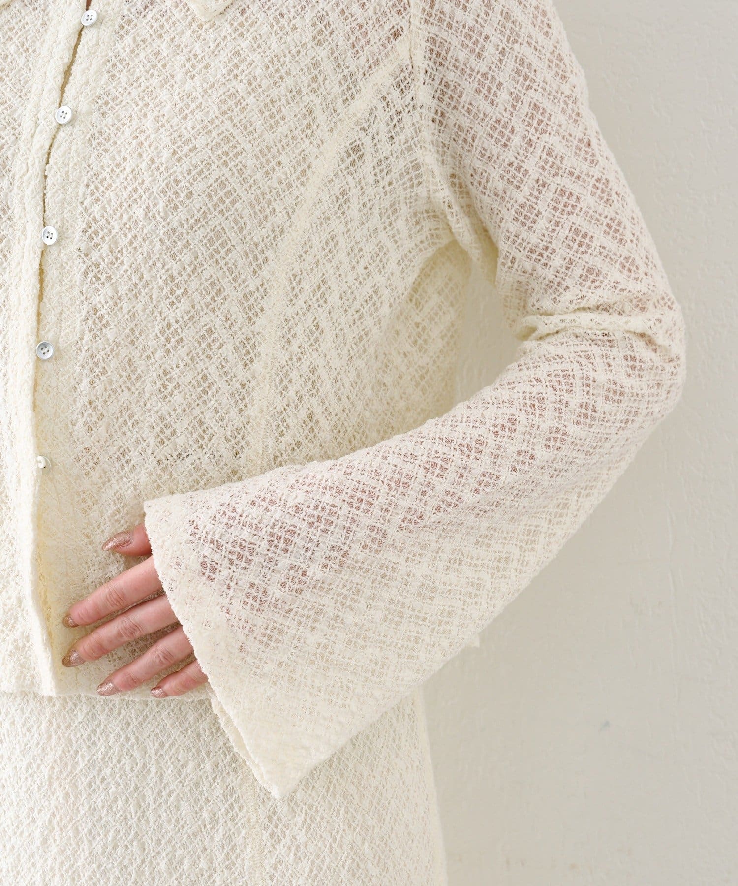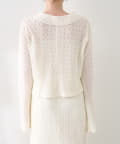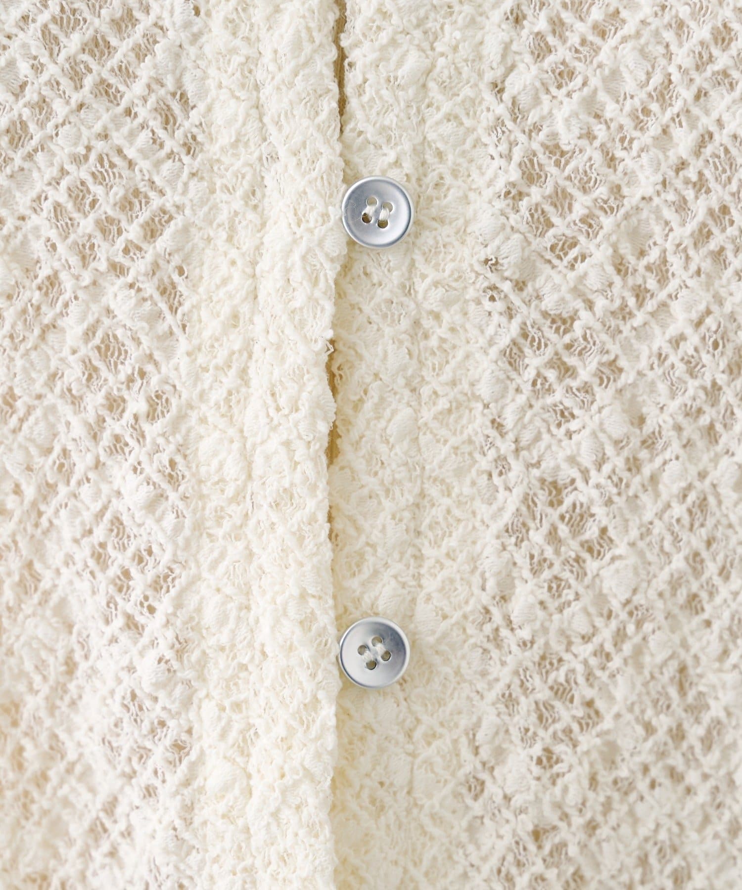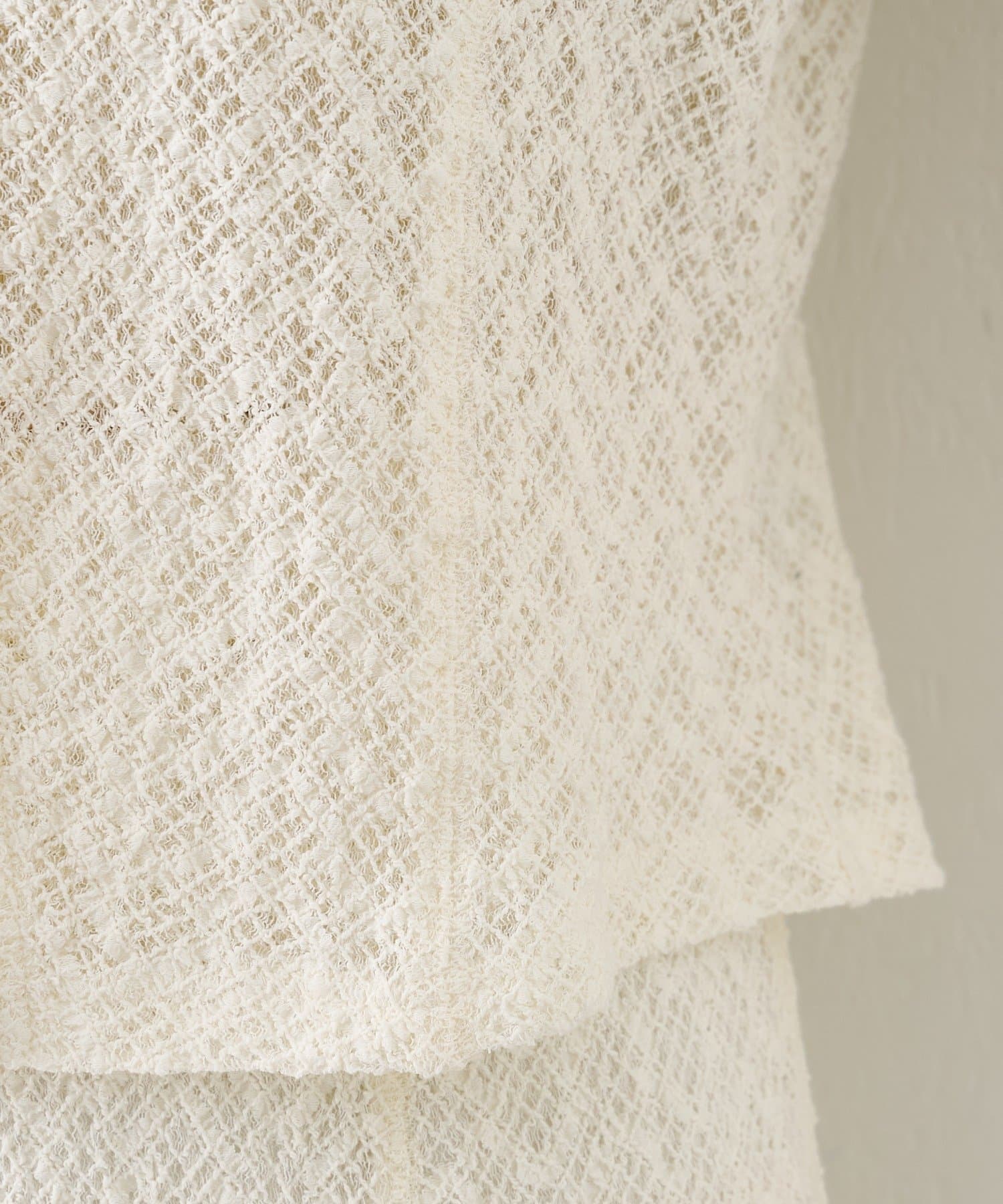 繊細な編み柄がやわらかく光を受け、シンプルながらも存在感のある一枚です。