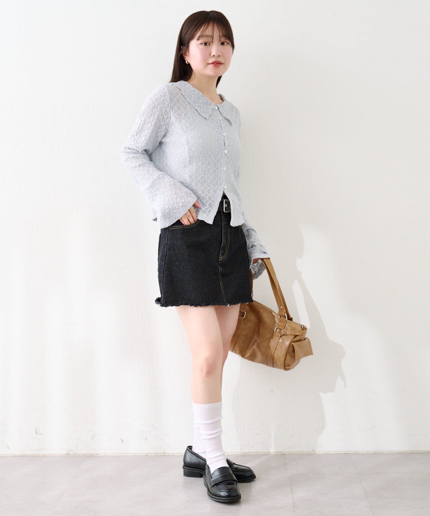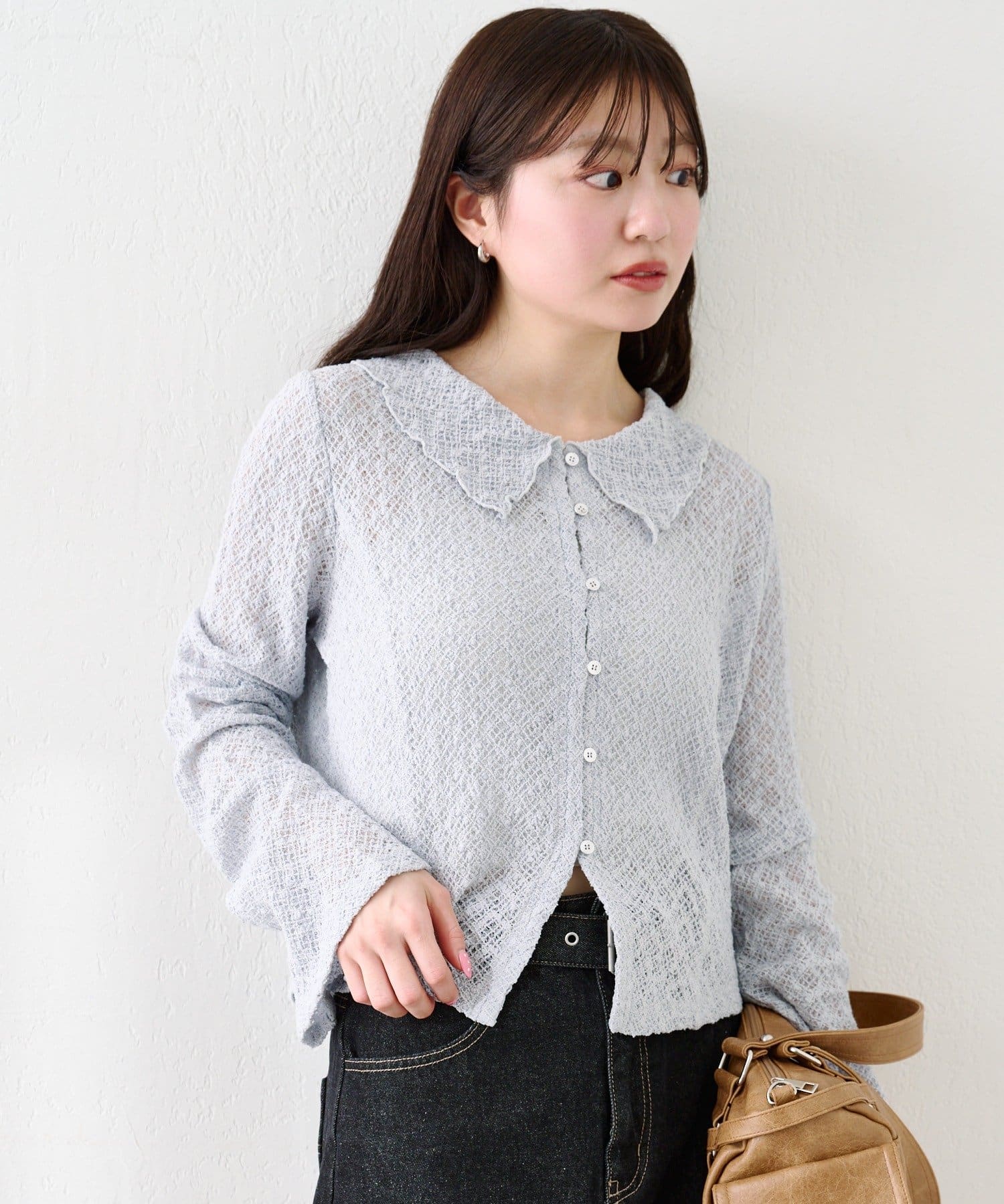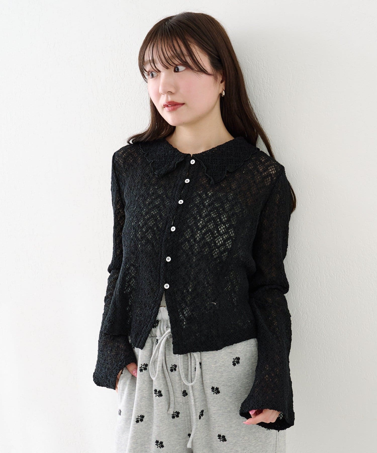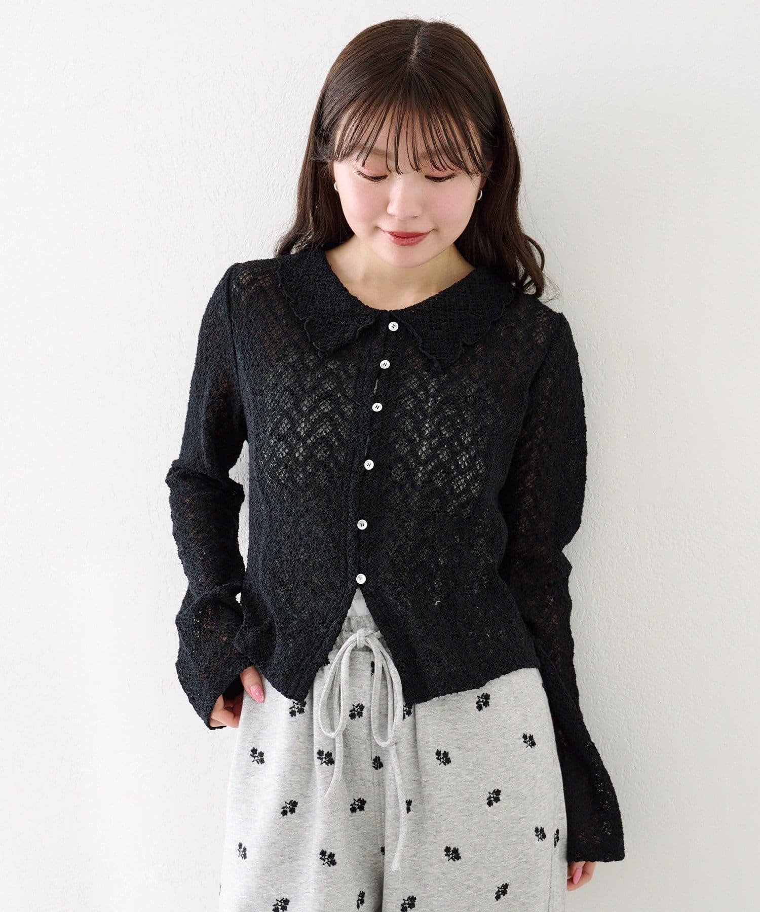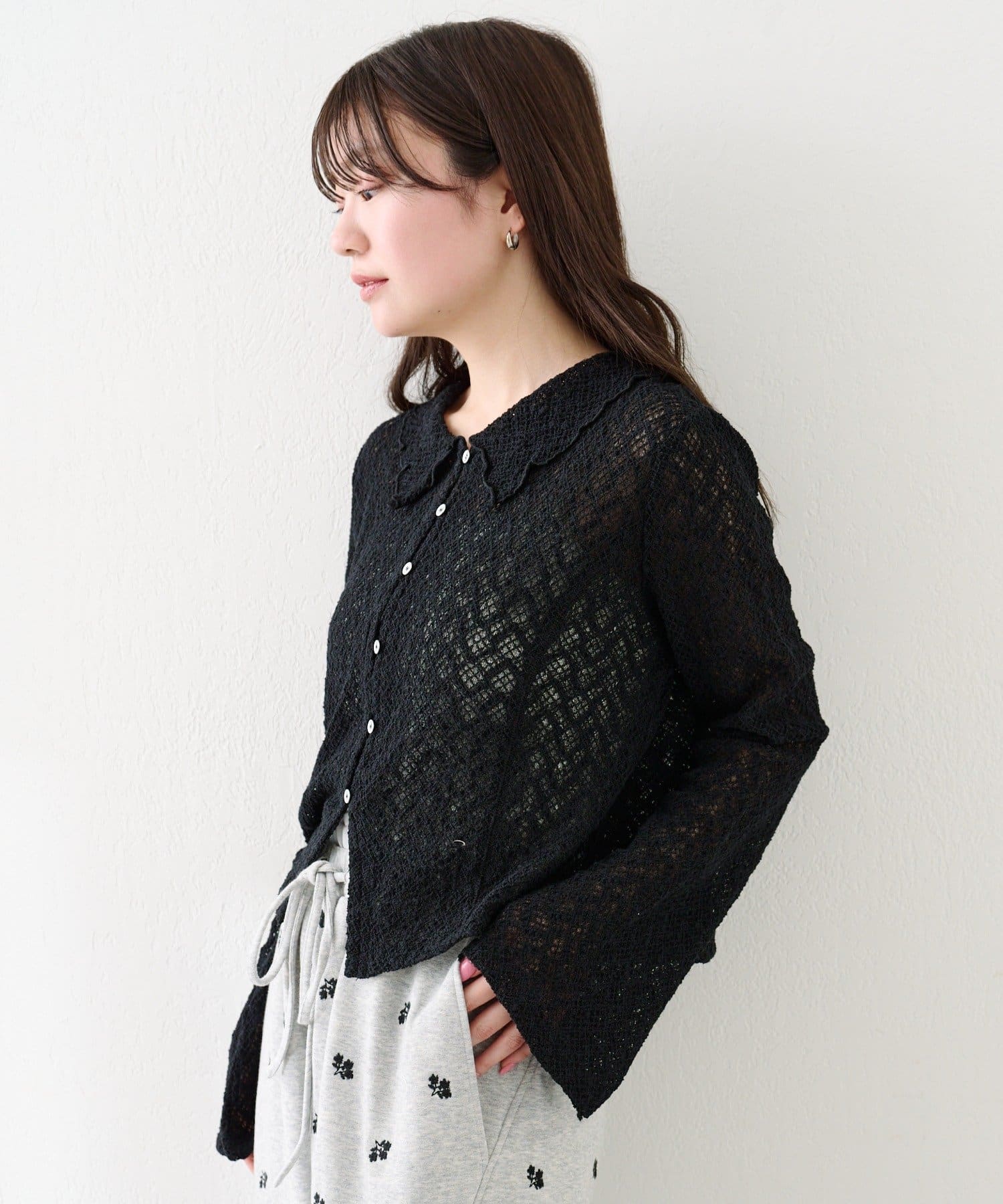 フロントボタン仕様で、トップスとしても羽織りとしても着回しが可能です。