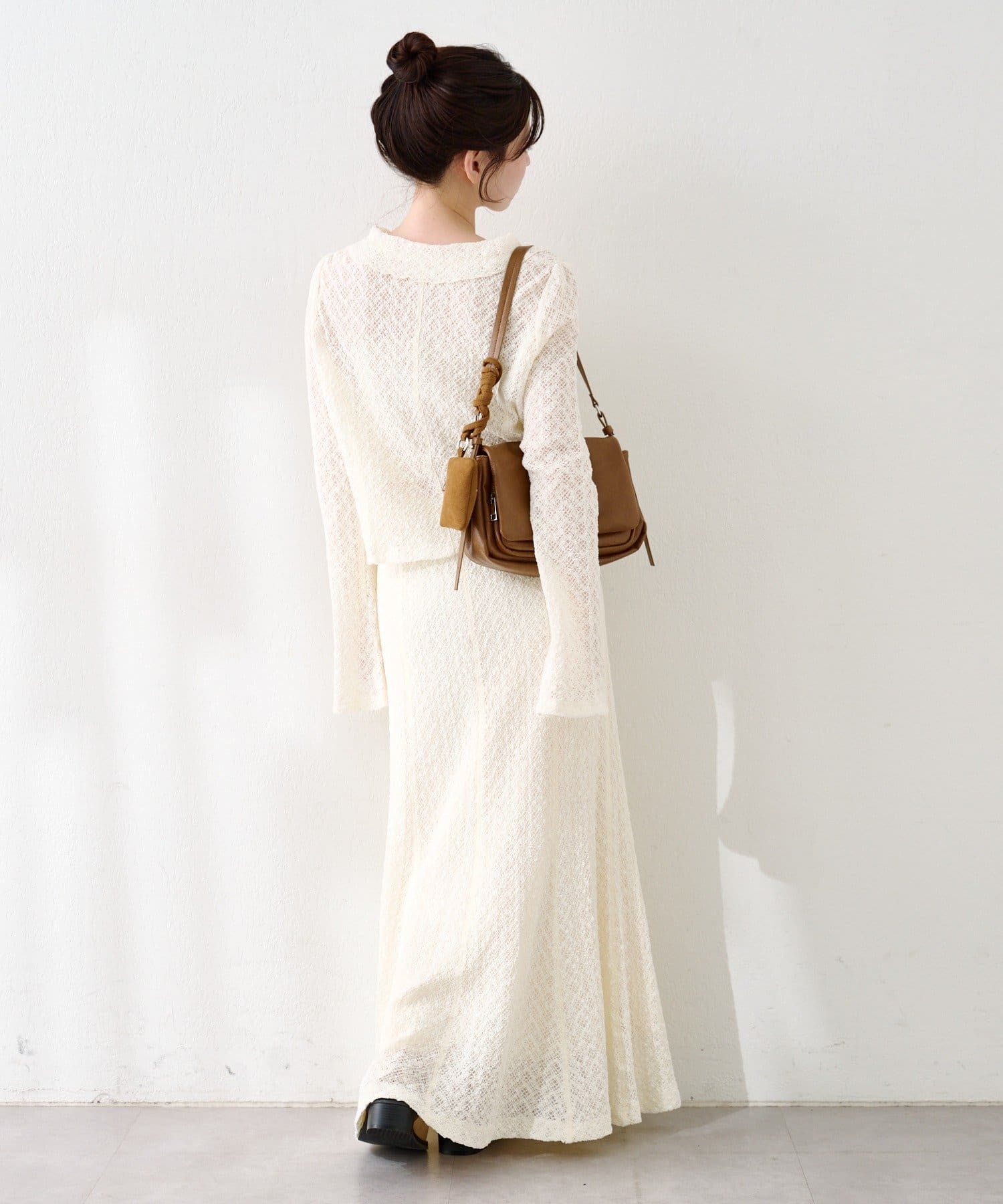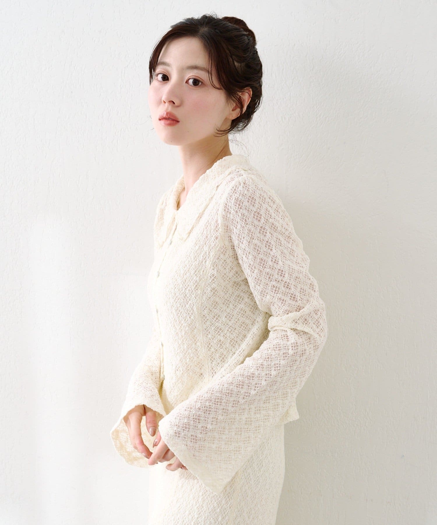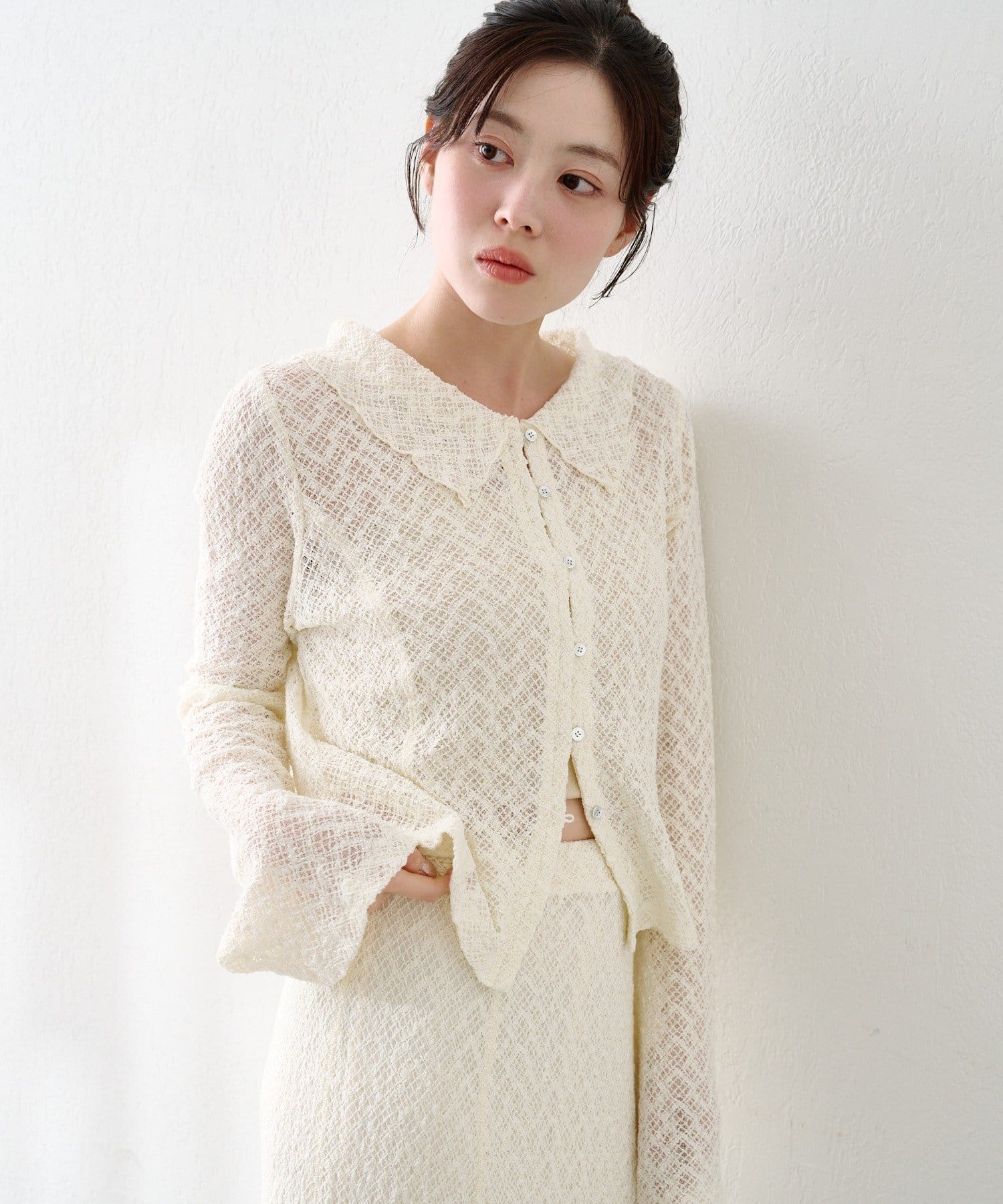 同素材スカートと合わせて上品なセットアップに。ヒールや小ぶりバッグを合わせればオケージョンにも◎。