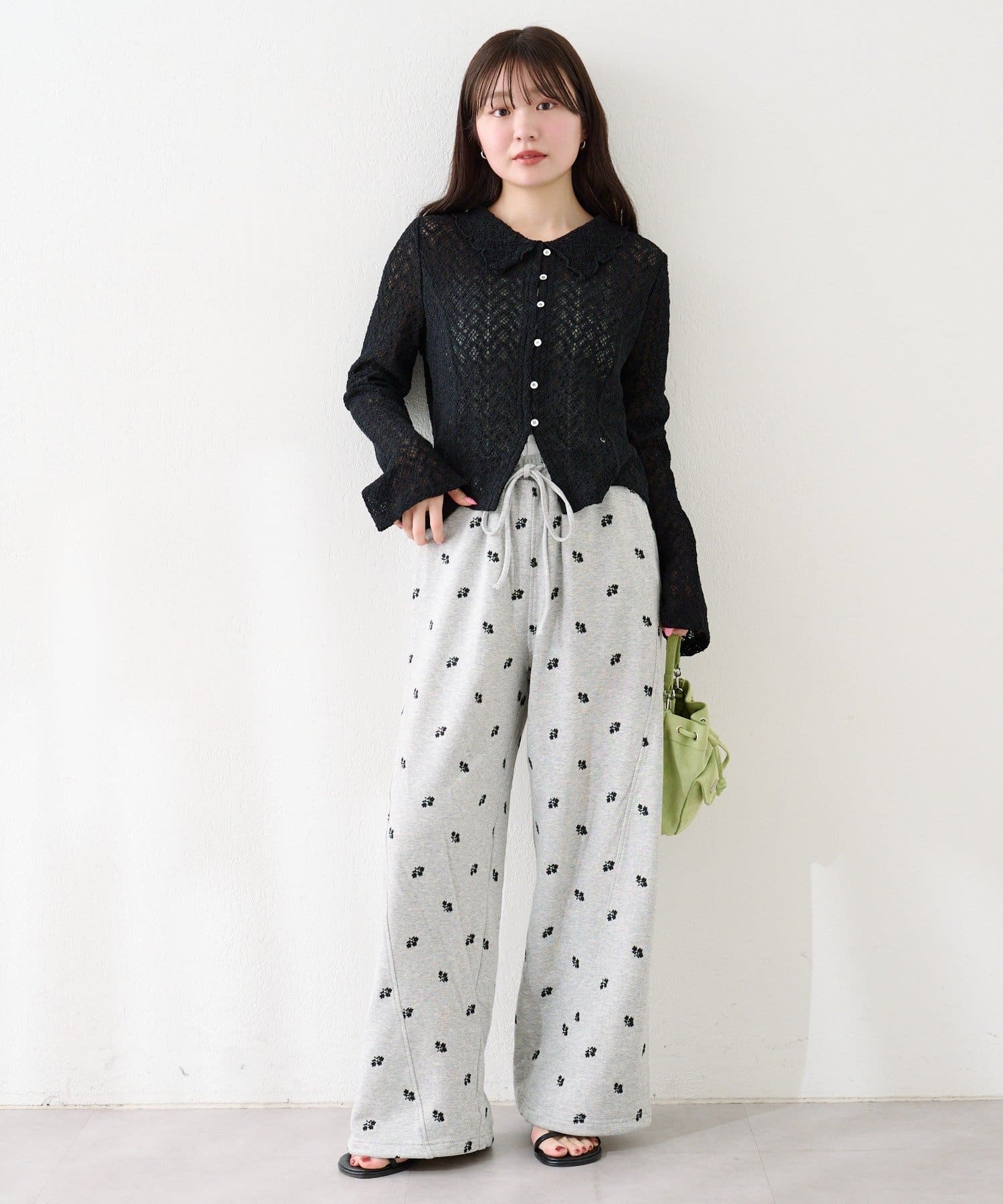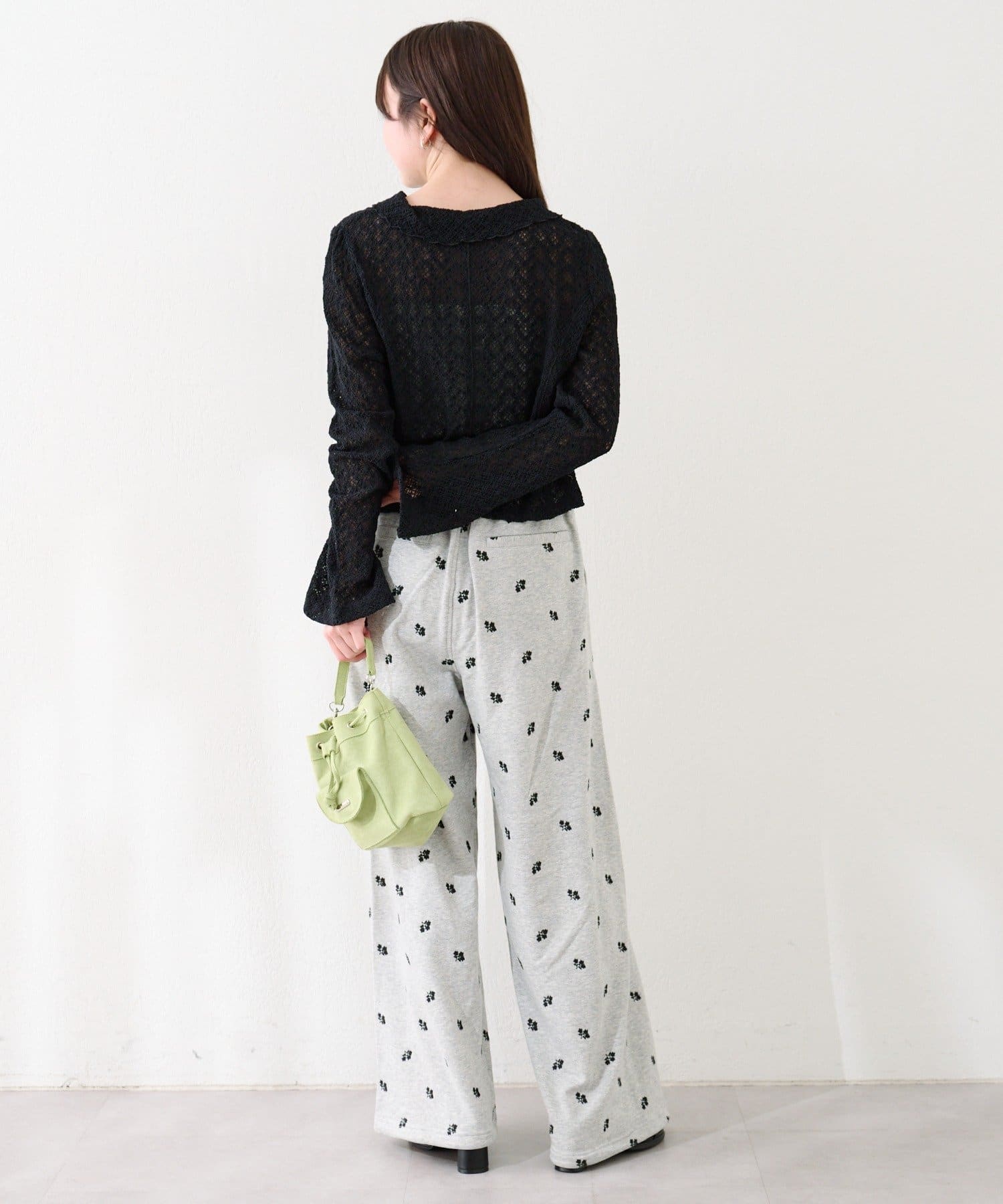 フラワーステッチワイドパンツ