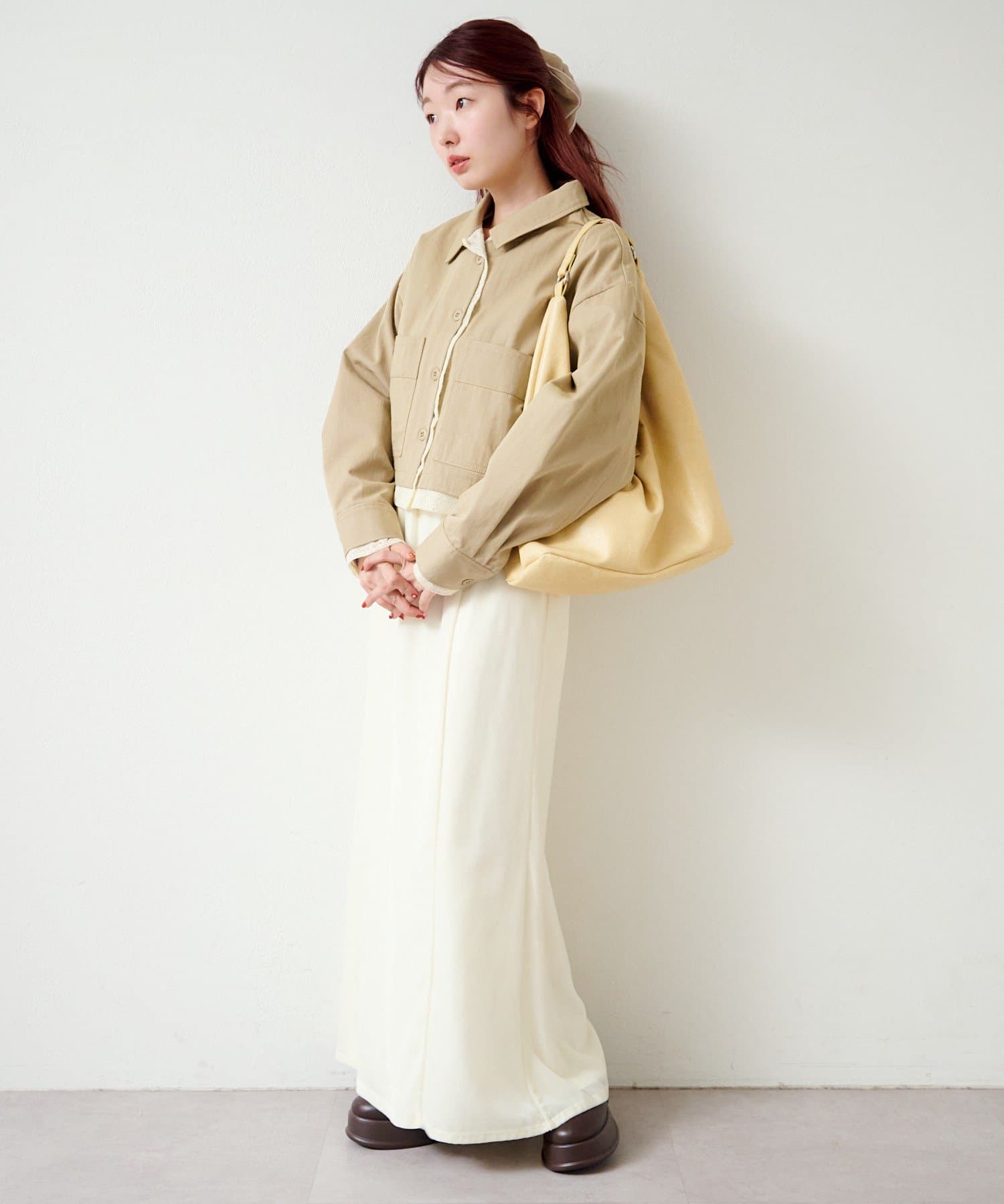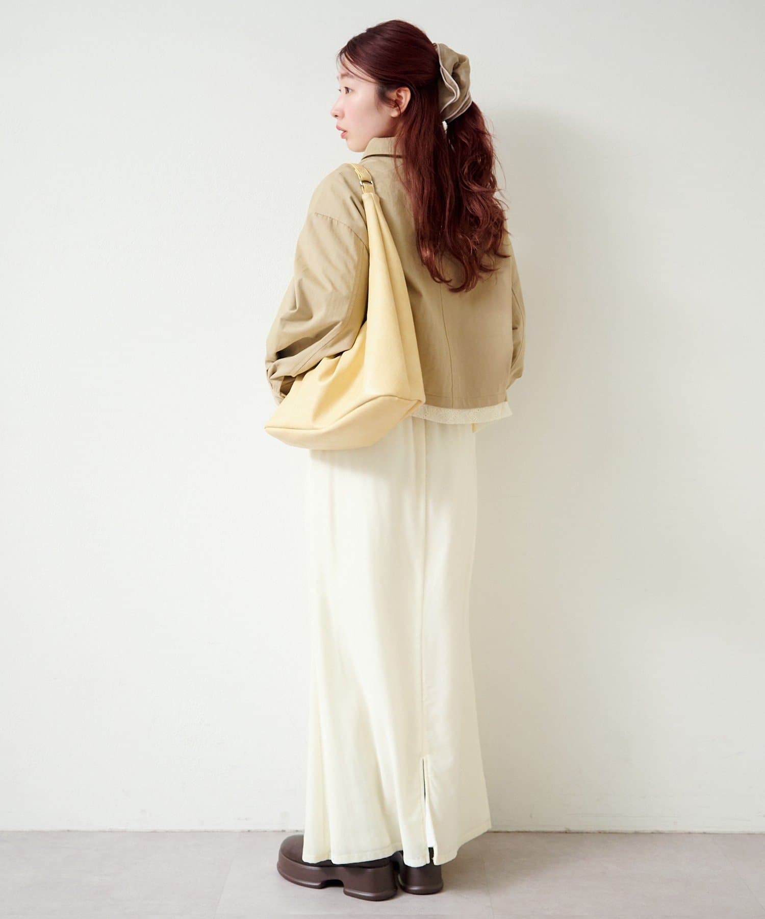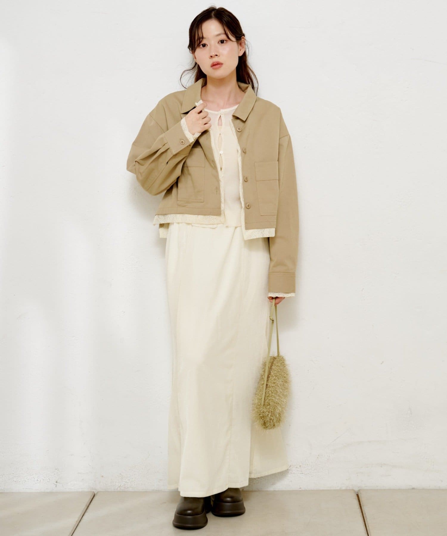 ショート丈はボリューム感のあるボトムともバランス良く着ていただけます。