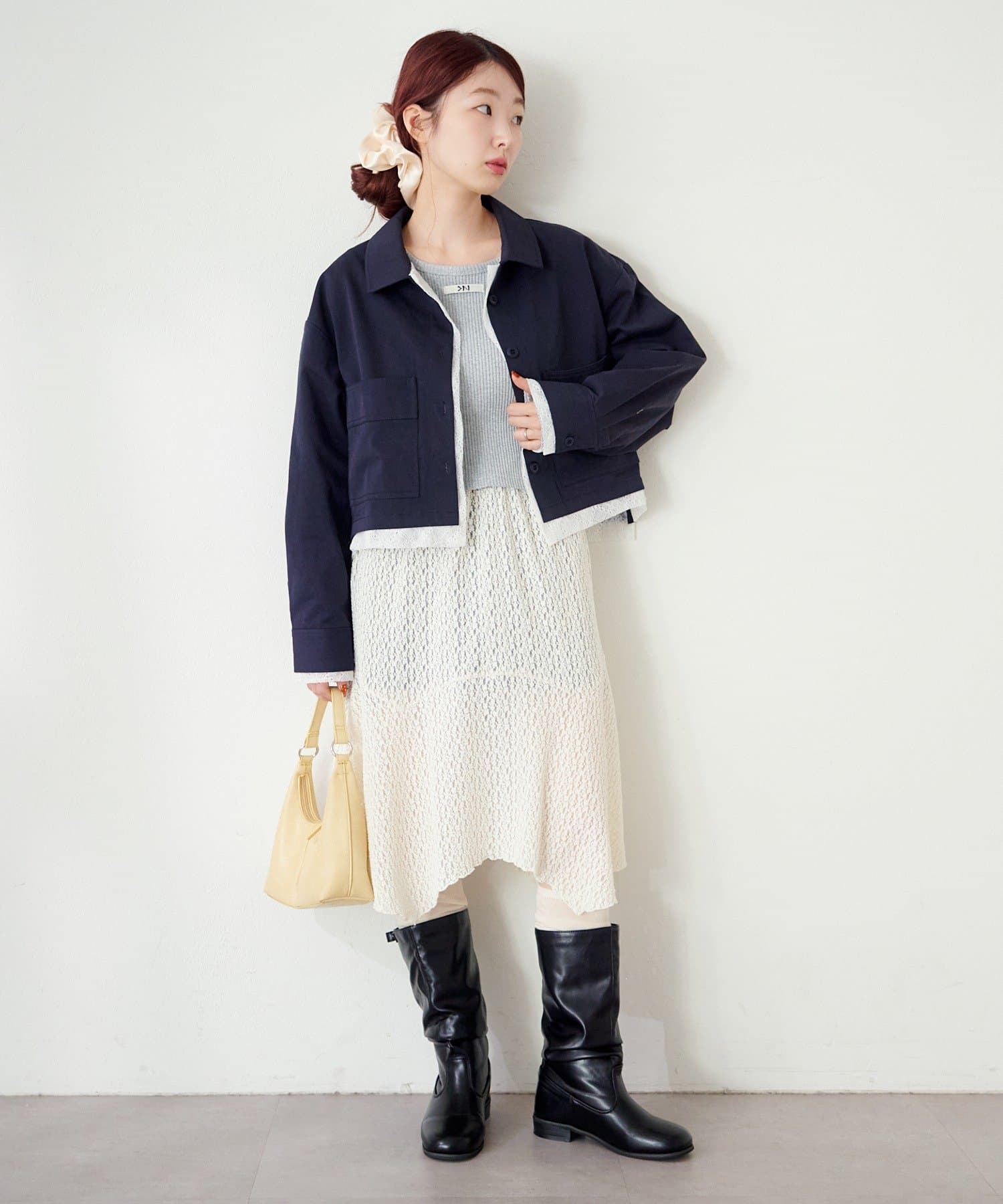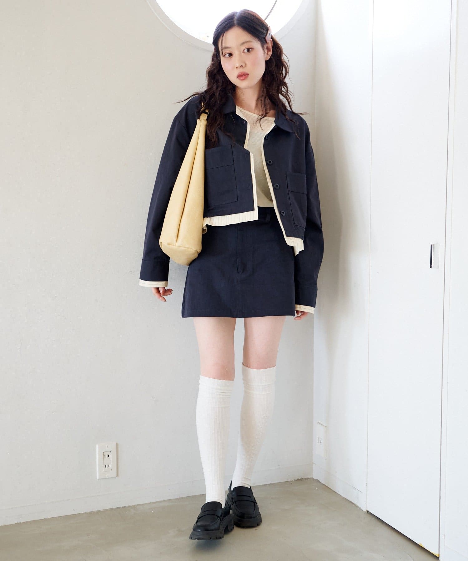 ショート丈×レイヤードのバランスが今っぽい着こなしになります。