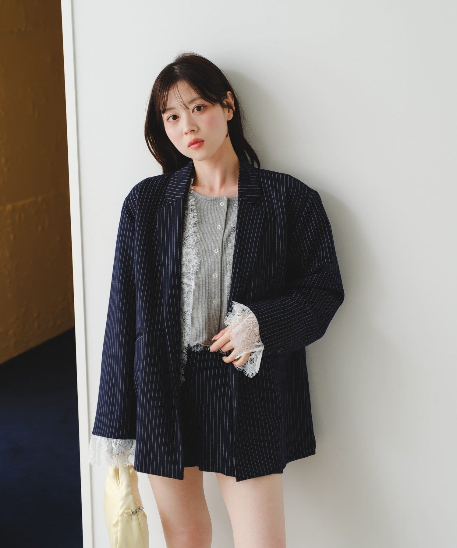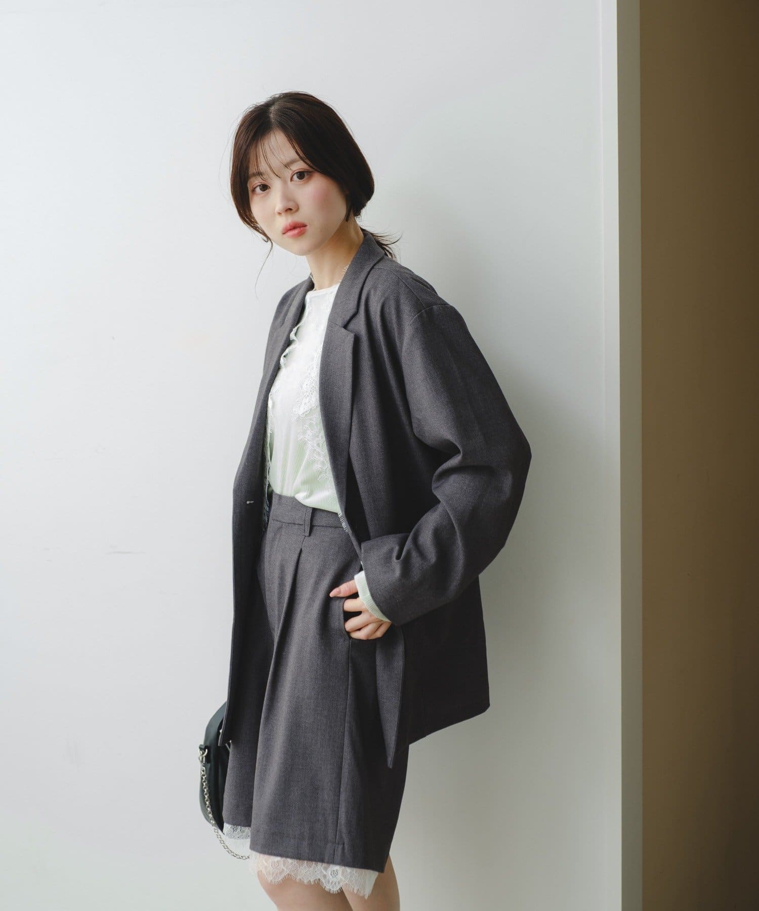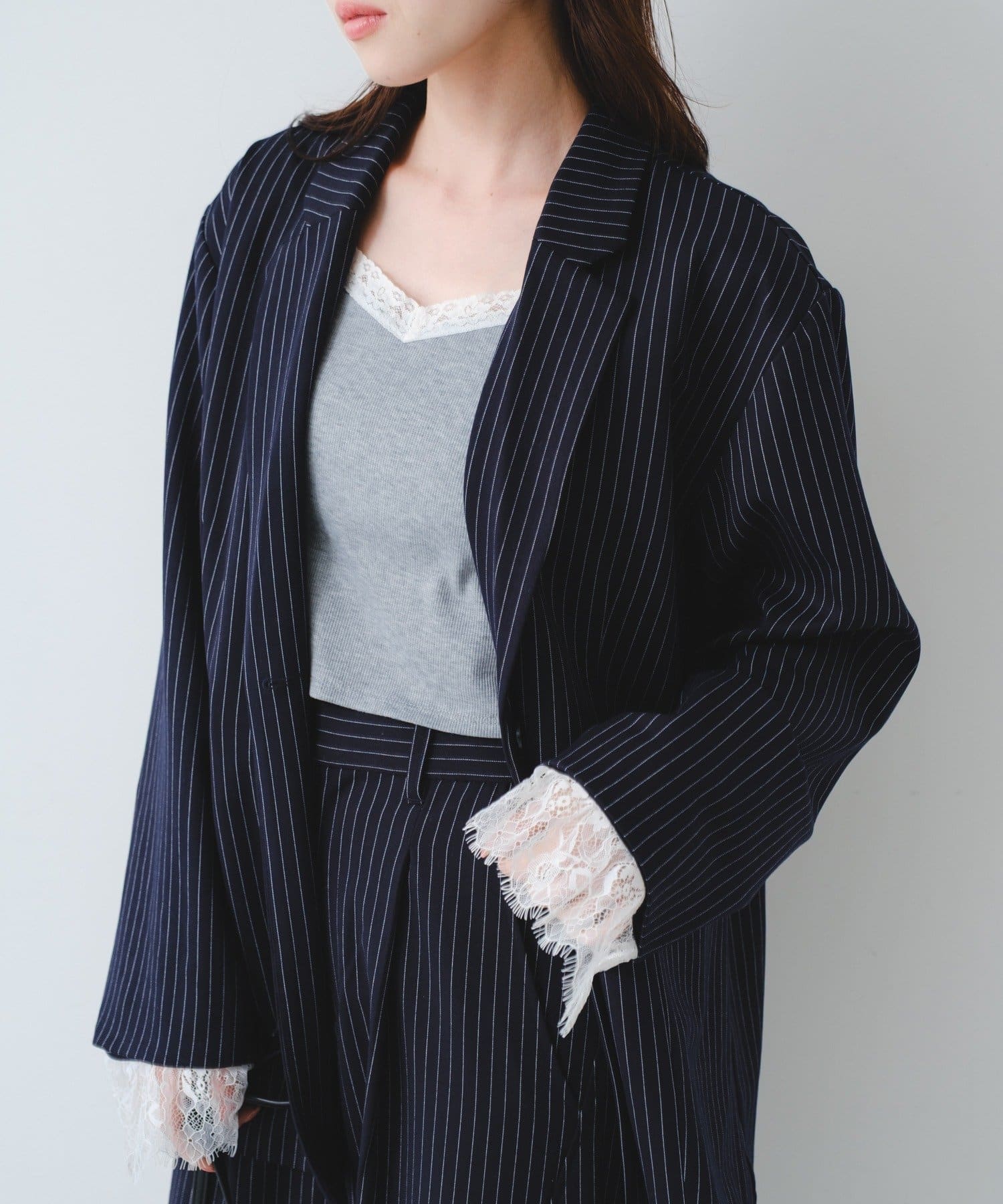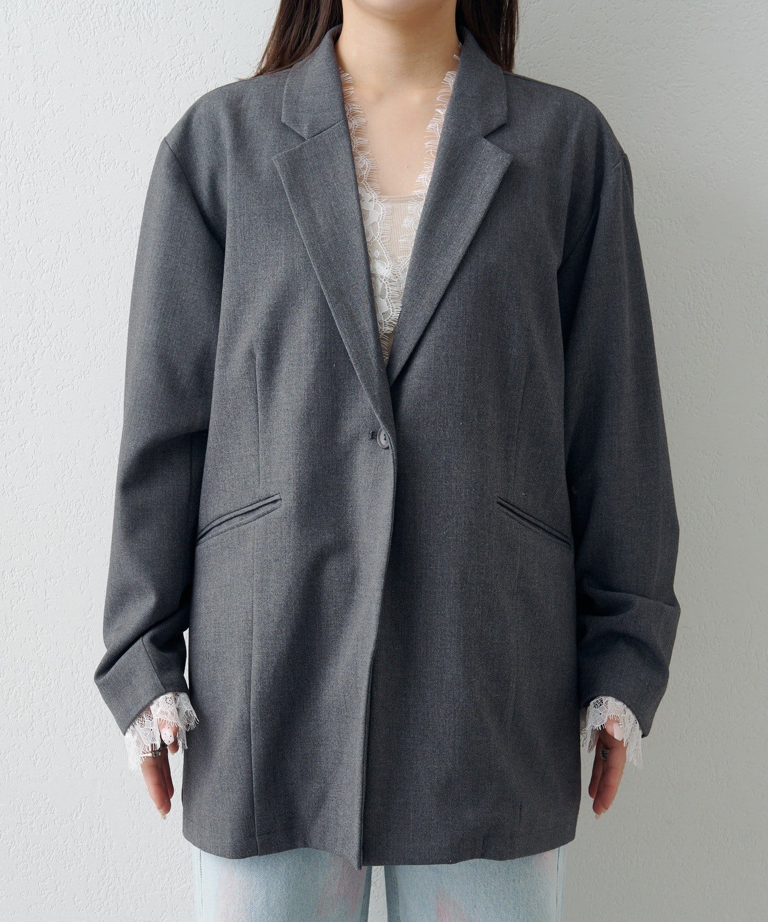 ジャケットに繊細なレースを組み合わせた、着回し力抜群のマルチウェイアイテム。