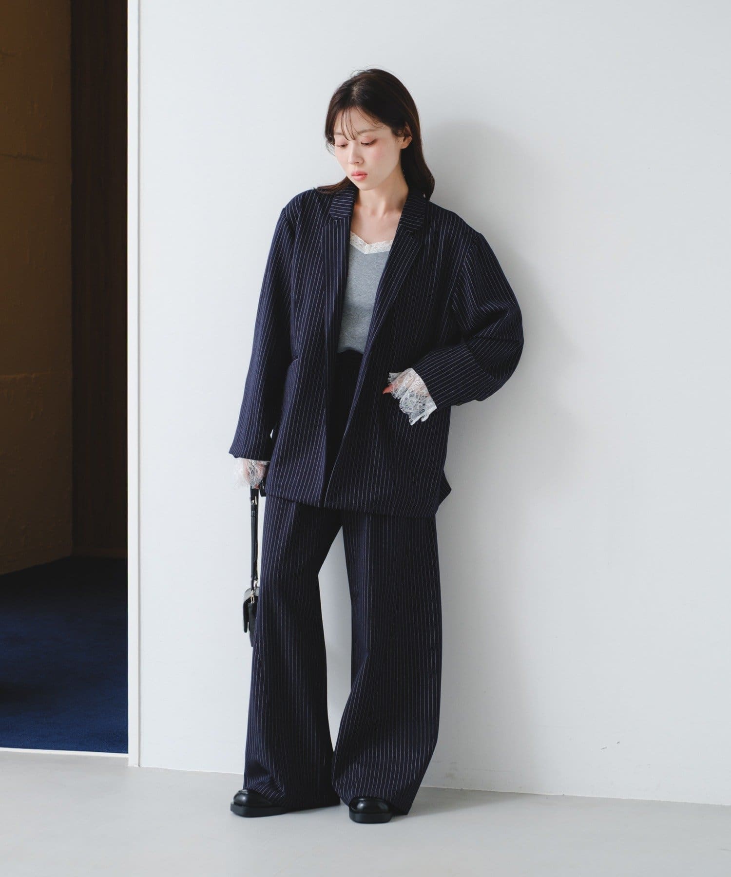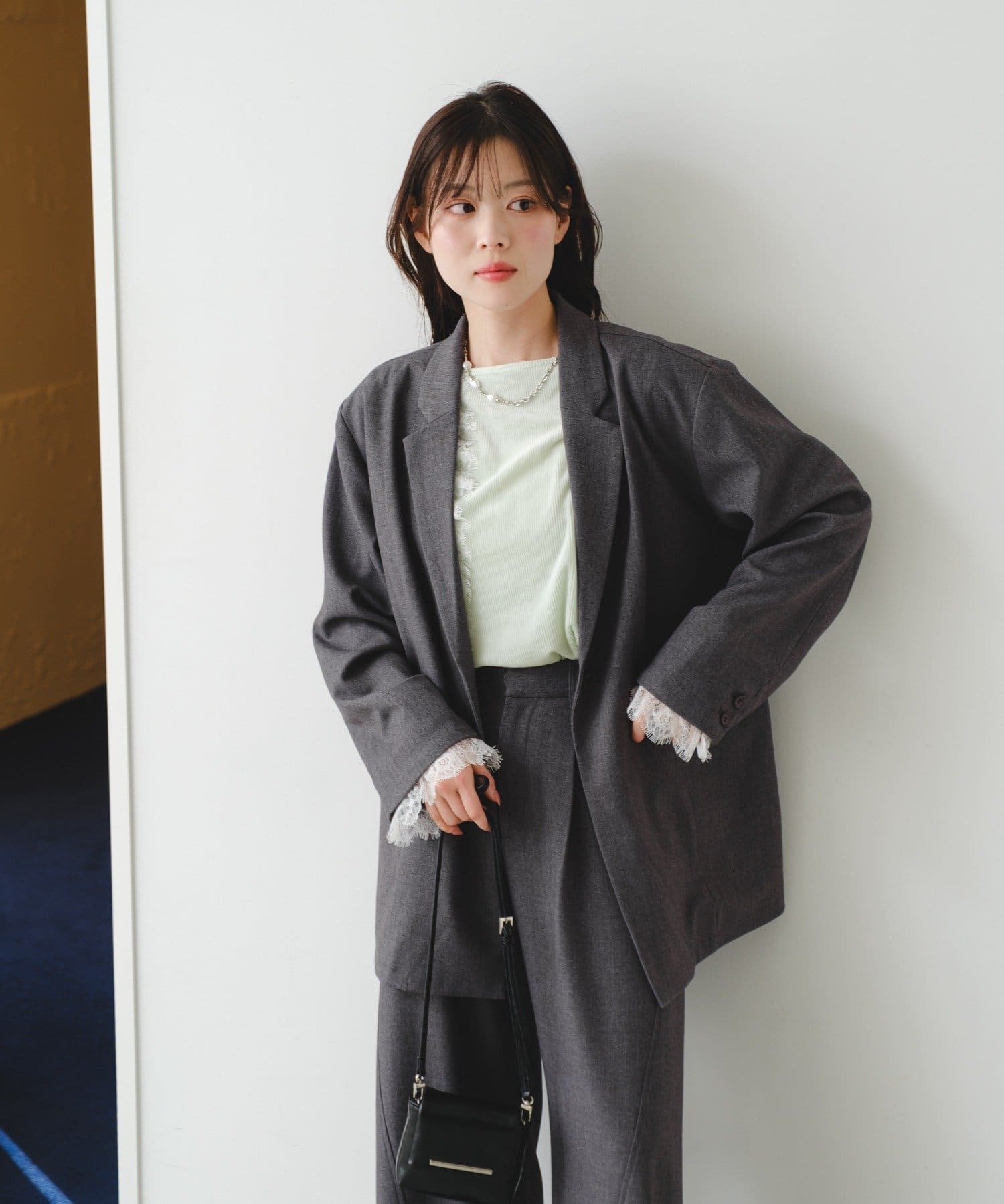 袖レースを外し、スラックスやデニム合わせで大人コーデ。