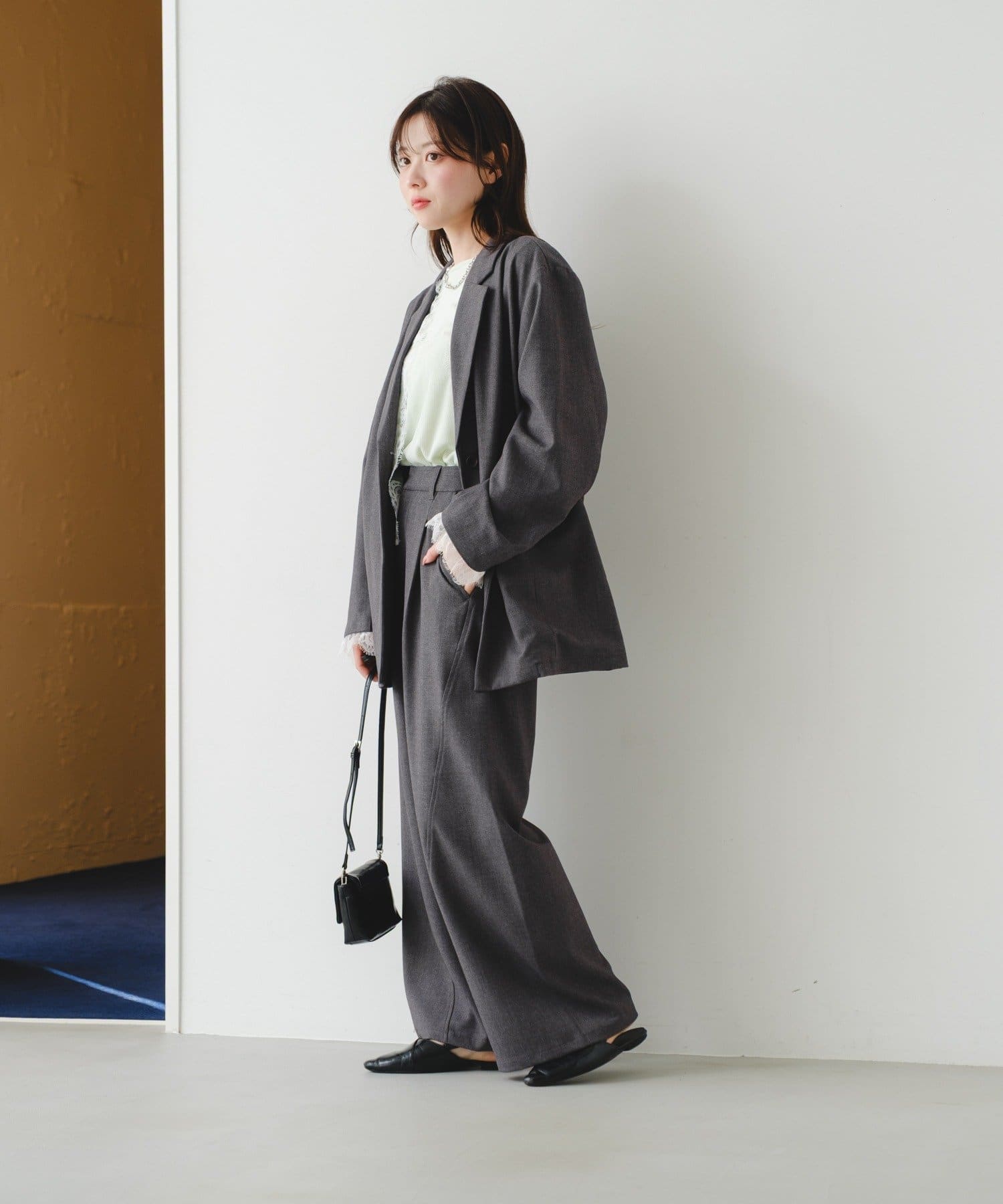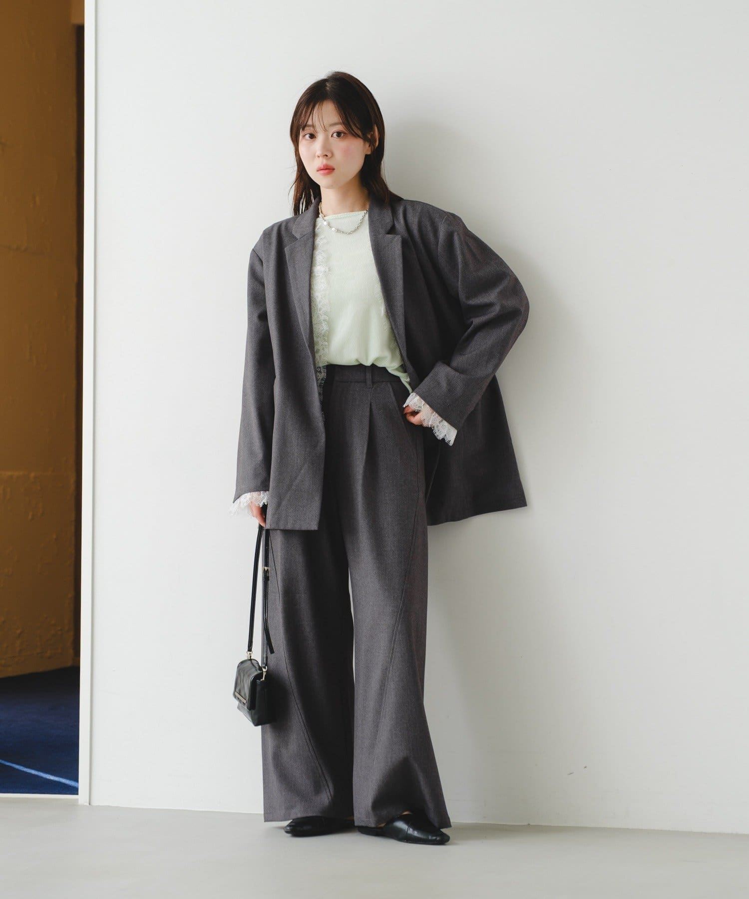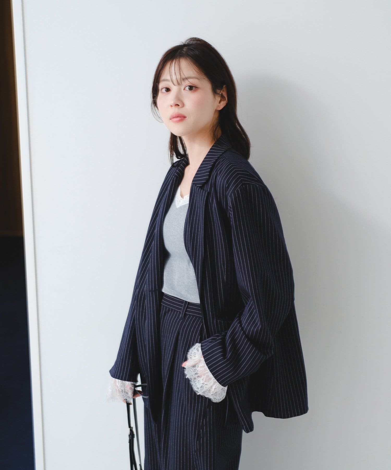 同素材パンツと合わせてセットアップ風に着用してもこなれ感が出ておすすめです。