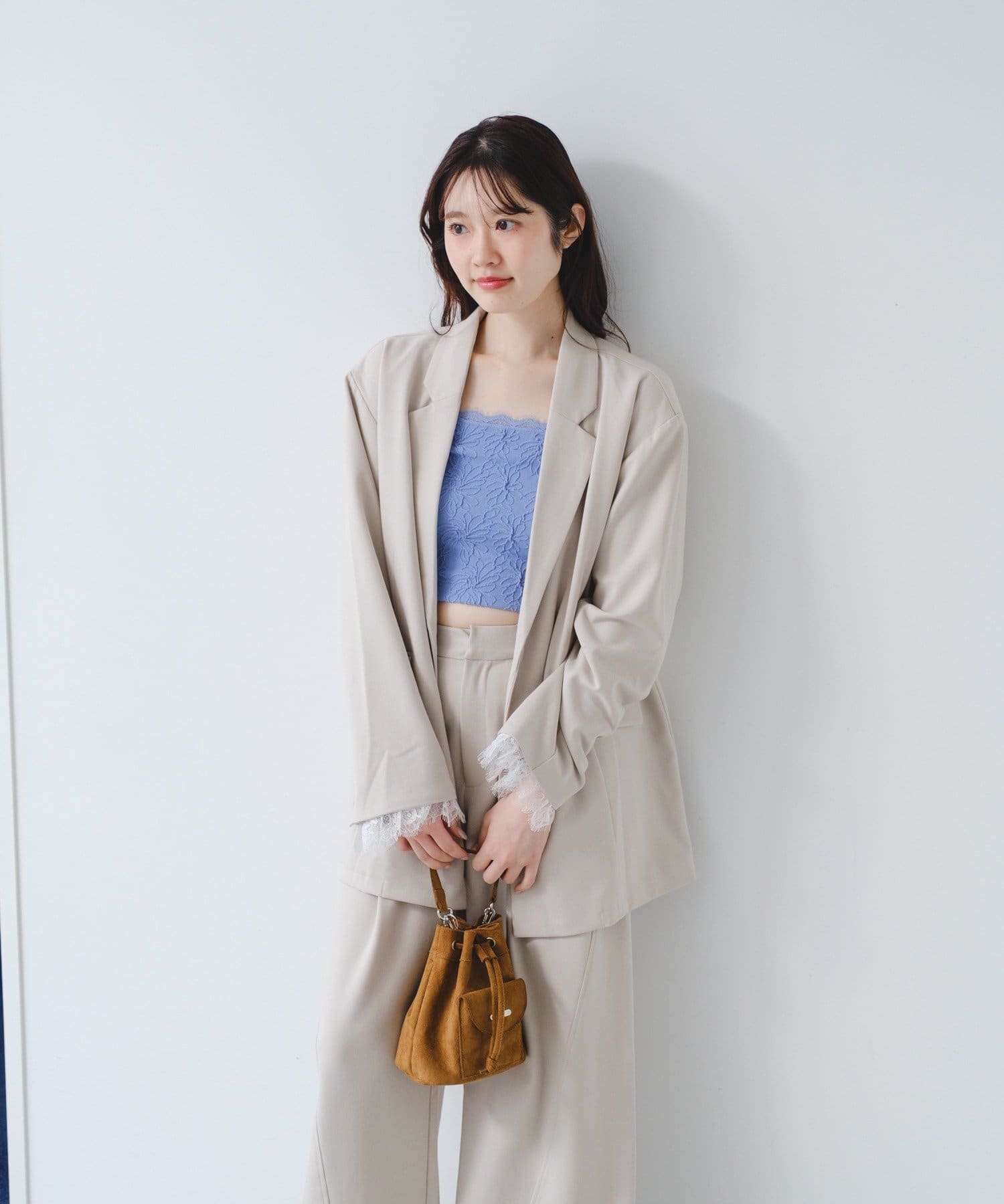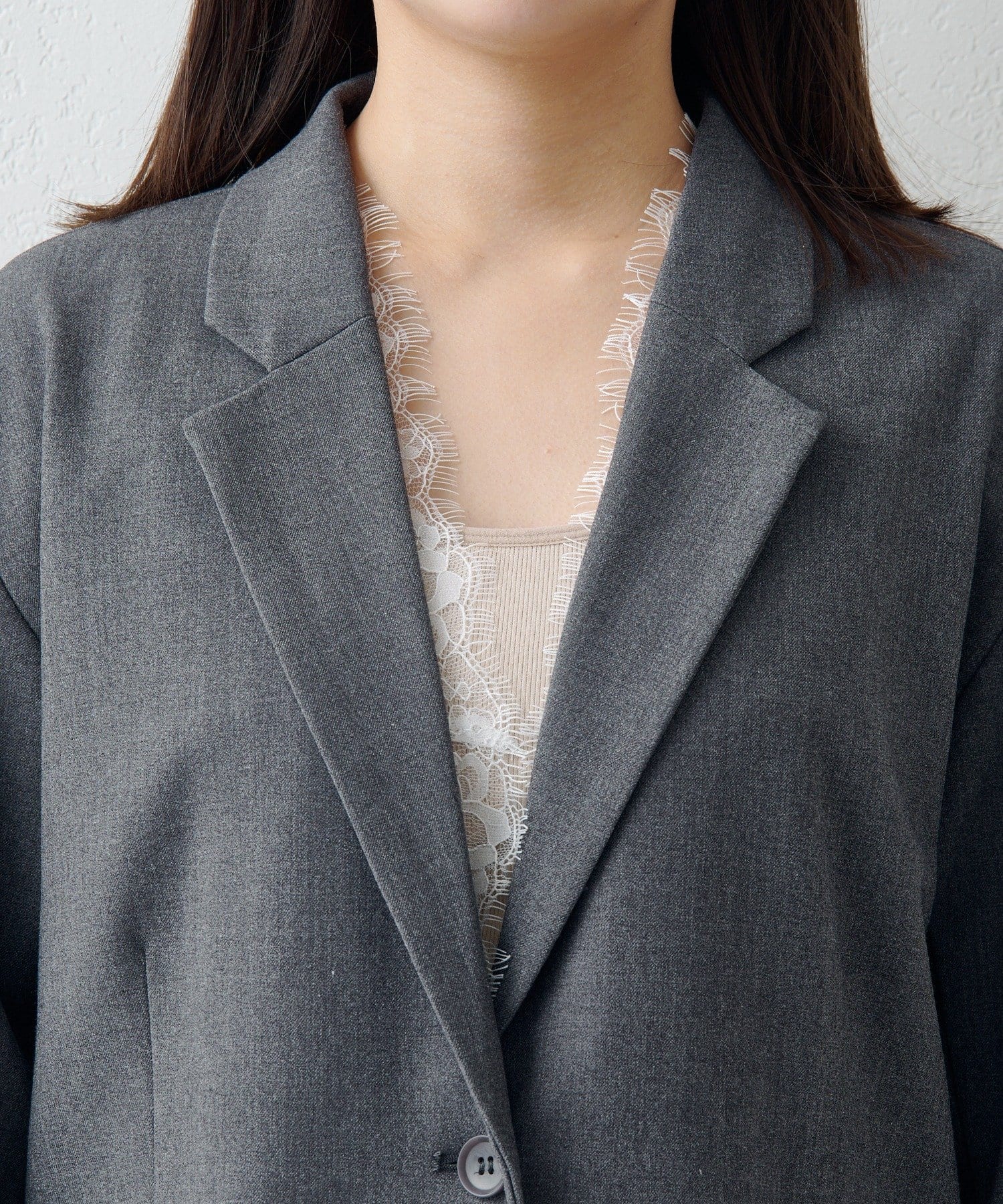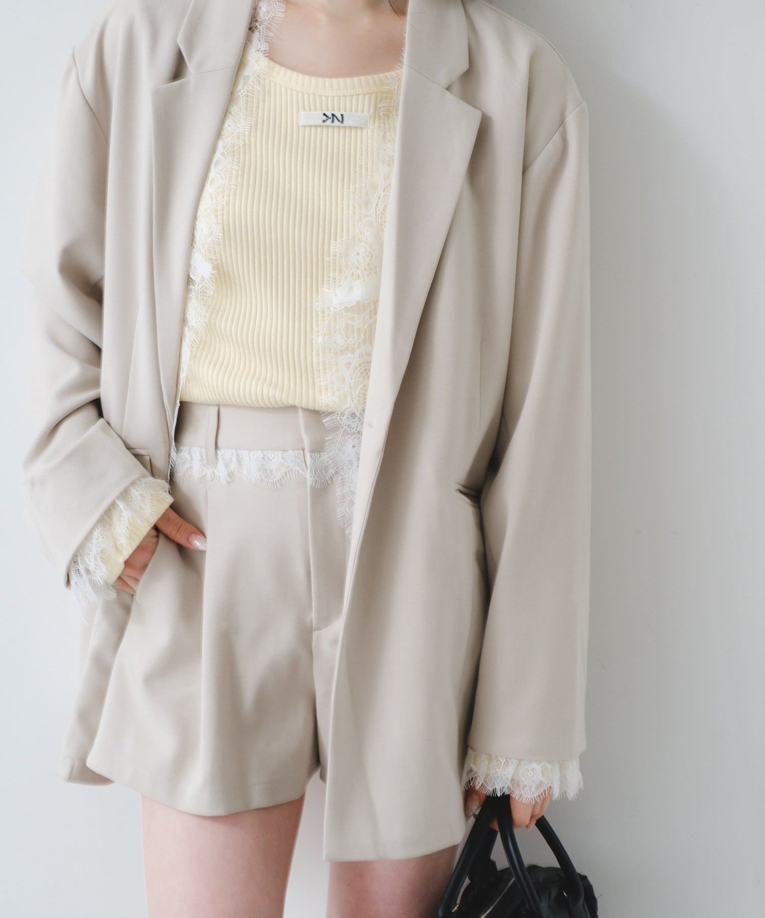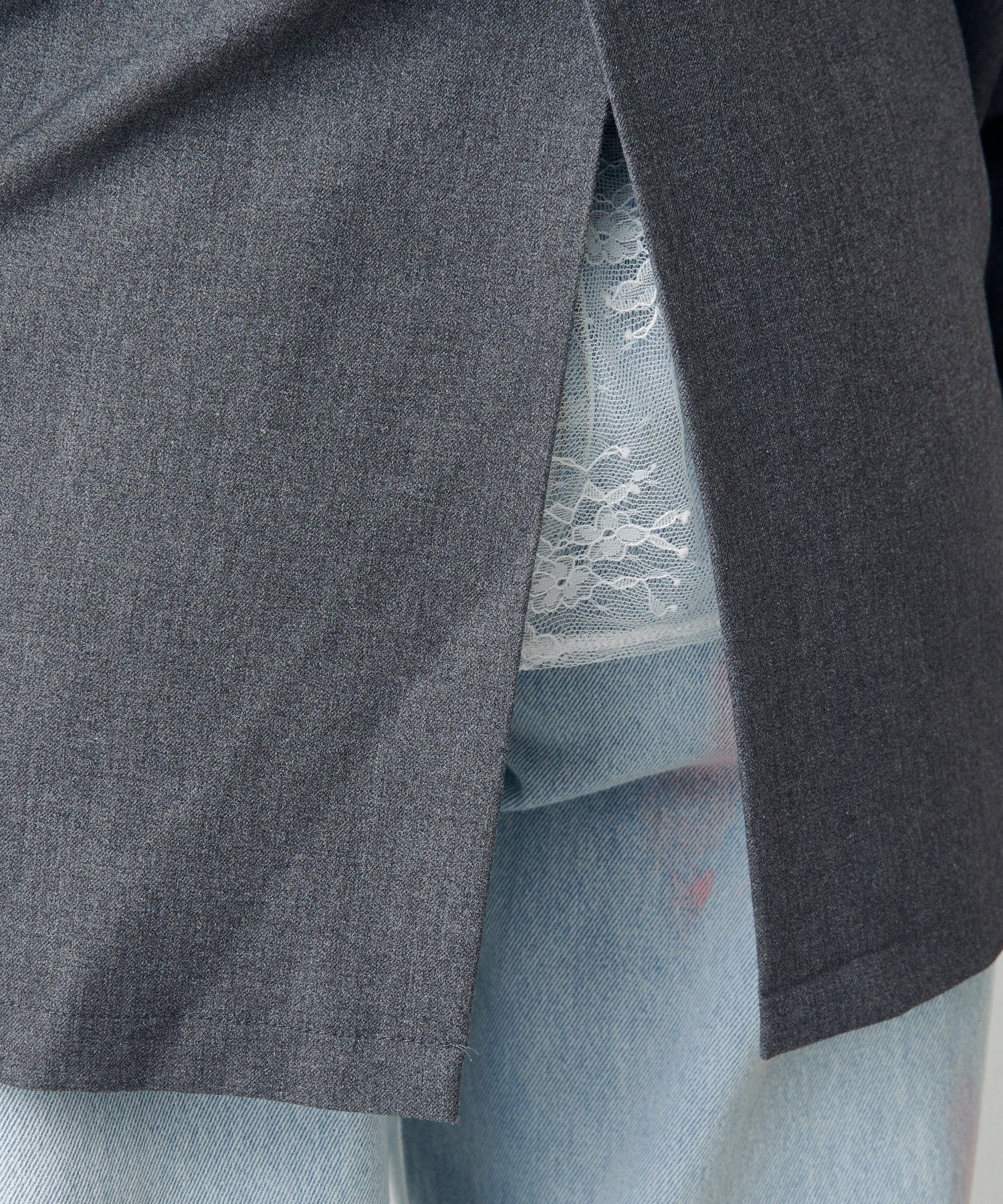 付属のレースベストはレイヤードスタイルはもちろん、単体使いも可能。