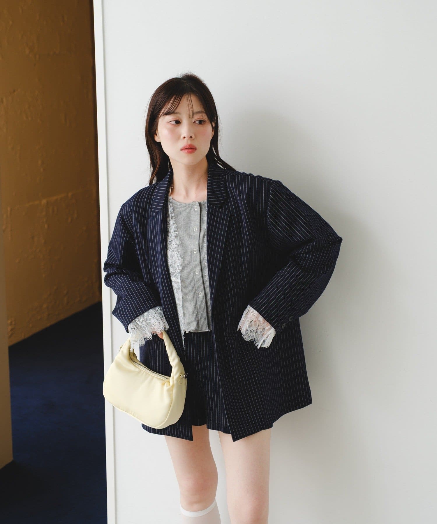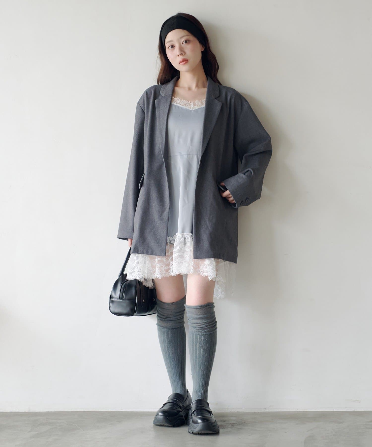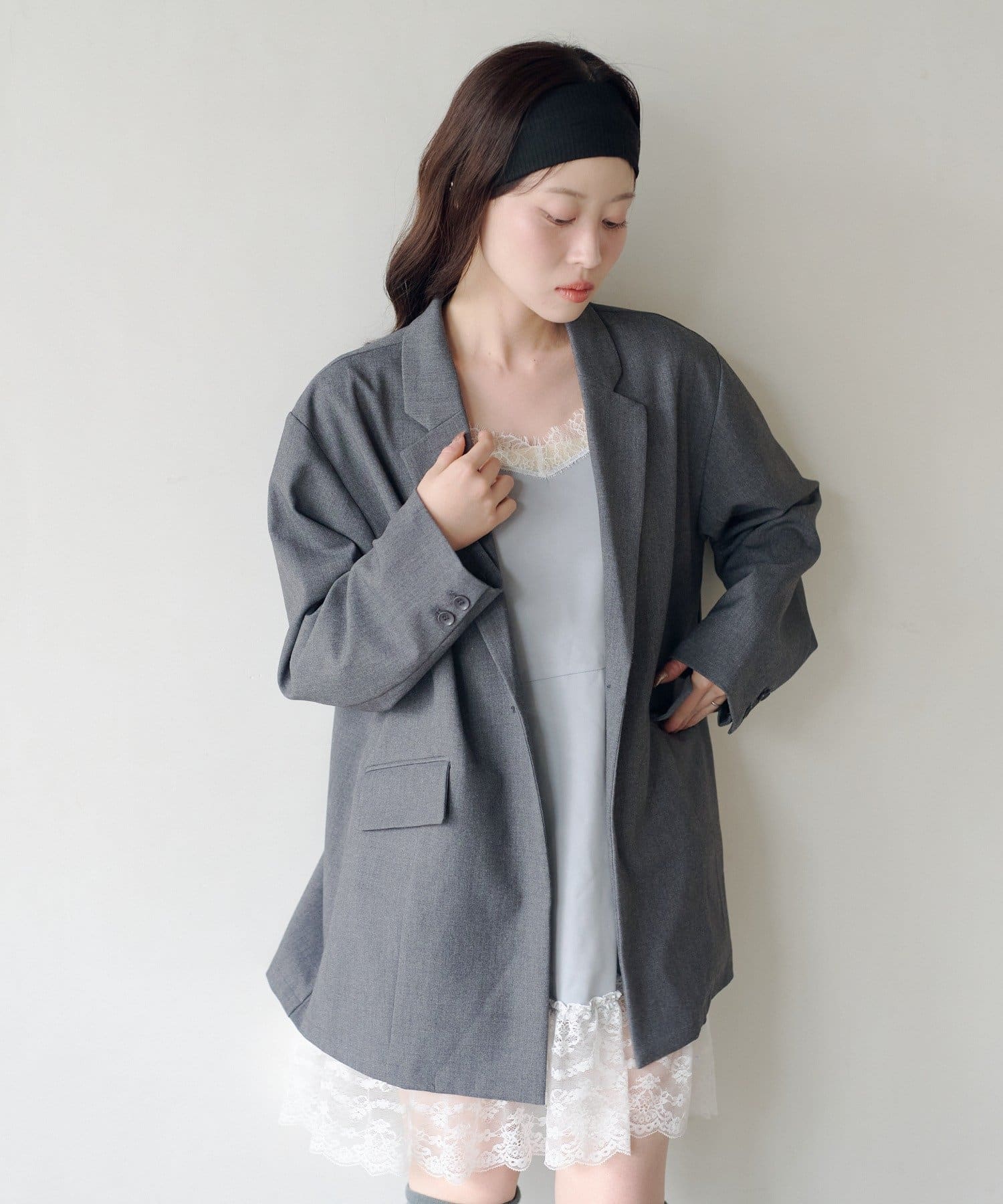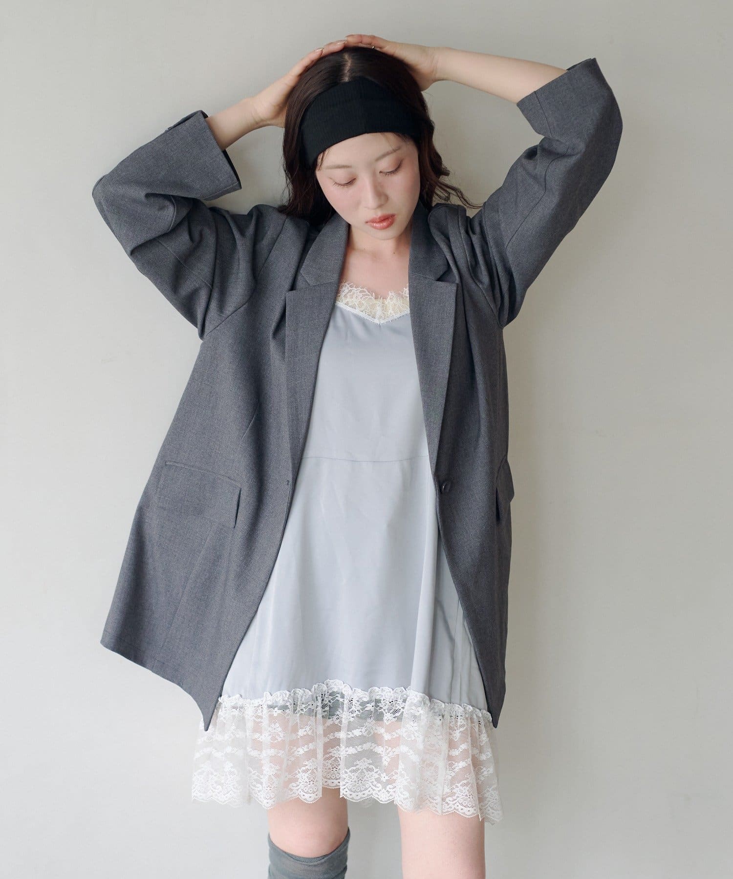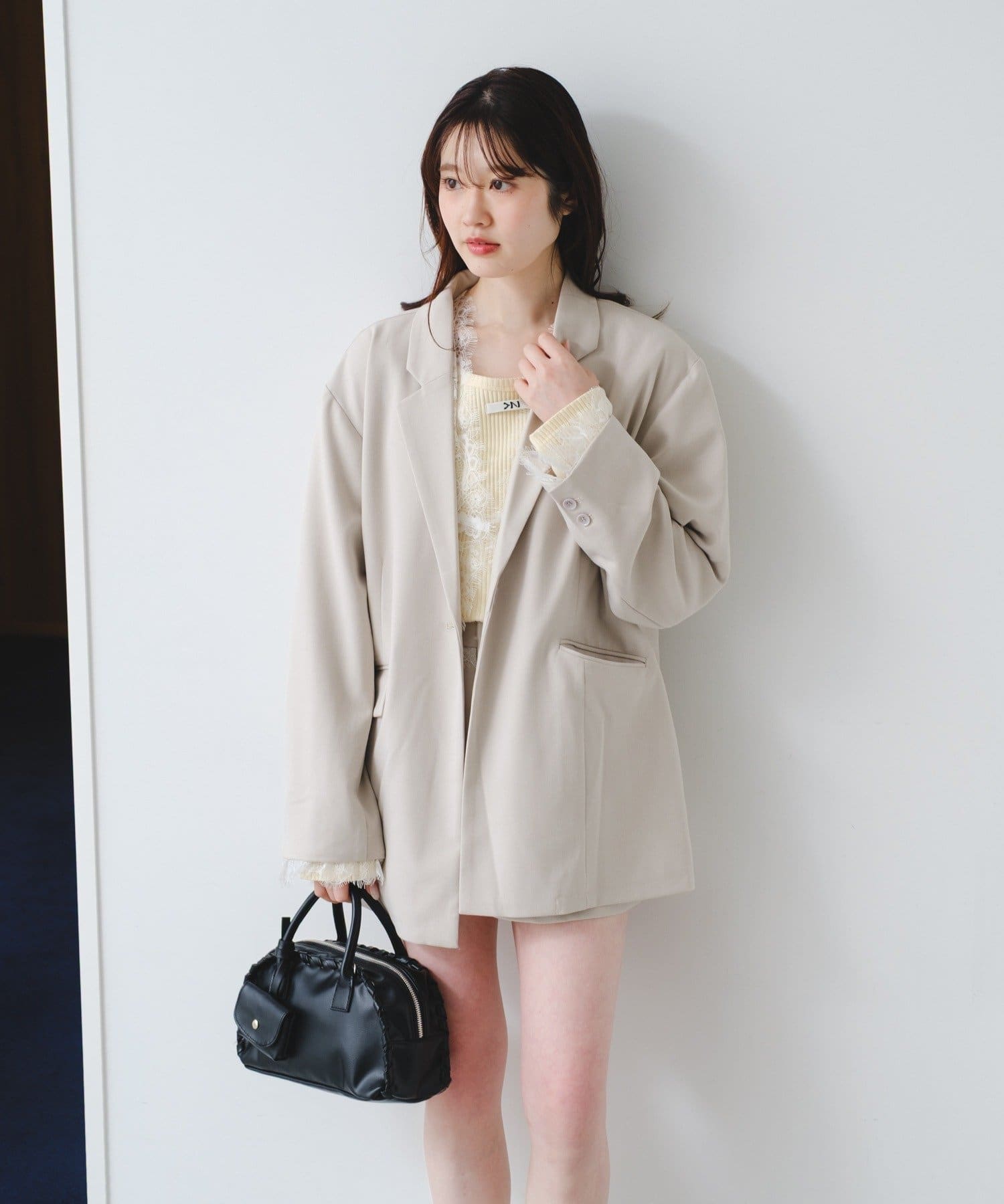 付属のレースベストはレイヤードスタイルはもちろん、単体使いも可能。