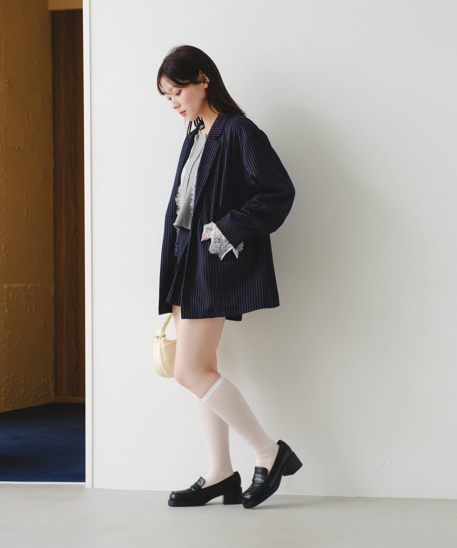 ミニボトム×ローファーでクラシックフェミニンに。
