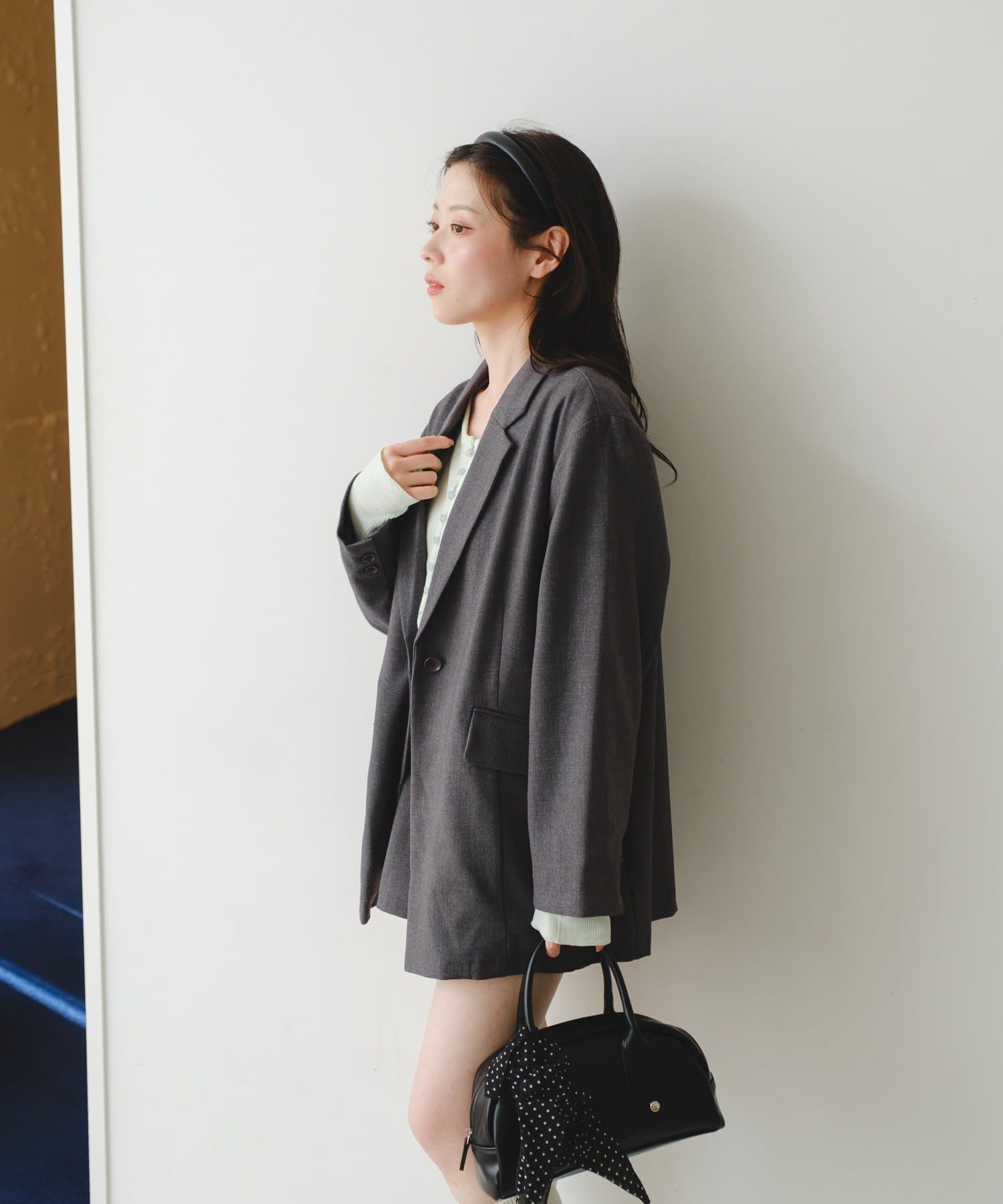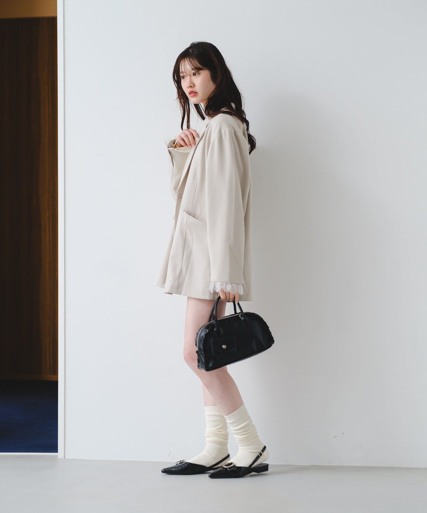 程よくハリのある素材感でシルエットを美しく保ち、カジュアルからきれいめまで幅広いスタイリングに対応します。