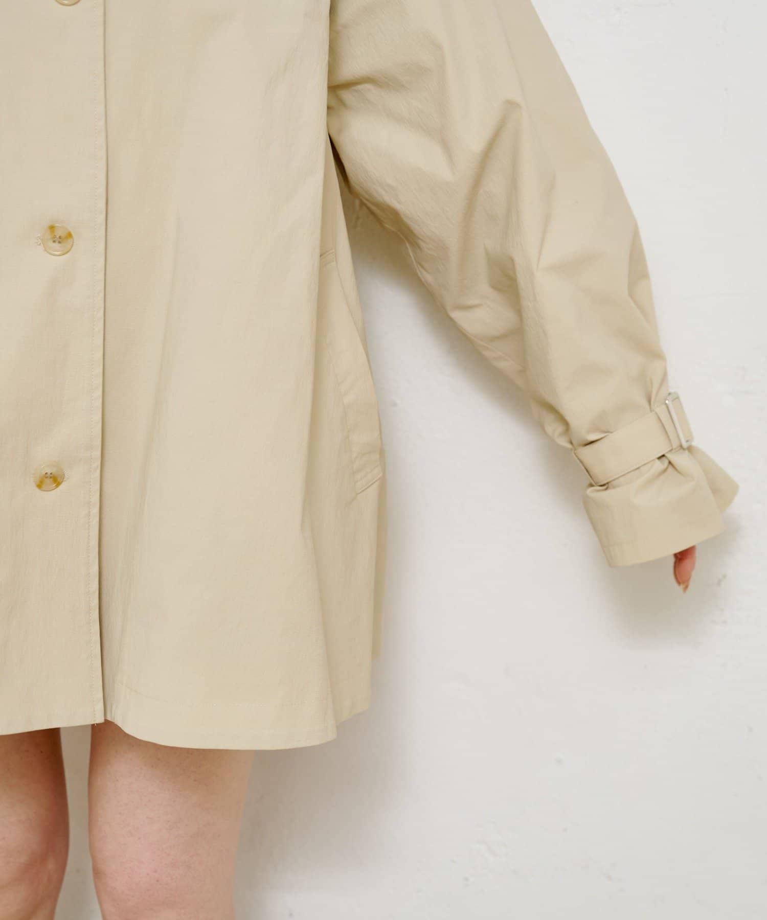 レースなしだとシンプルで使いやすいトレンチコートになります!袖を絞ってたぽっとさせるのも可愛いです。