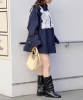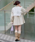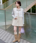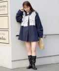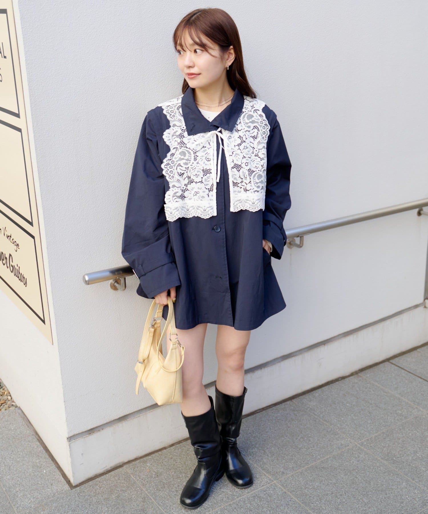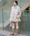 ボタンを閉めてミニワンピ風にすると一枚で主役級に。