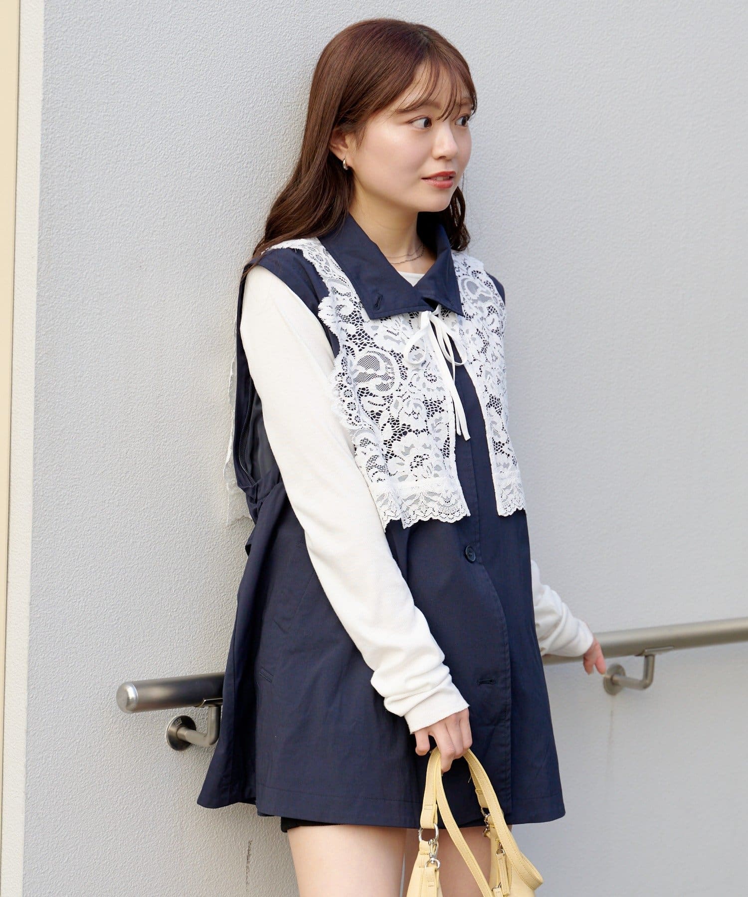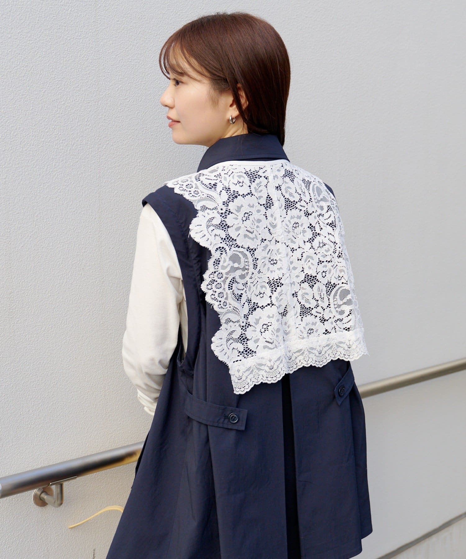 取り外し可能なレースティペットと、袖を外してベスト風にも着られるマルチウェイ仕様で