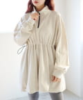 ウエストにギャザーを入れることで、ふんわりと立体感のあるフォルムに。
