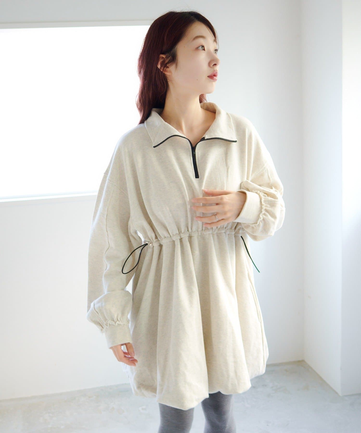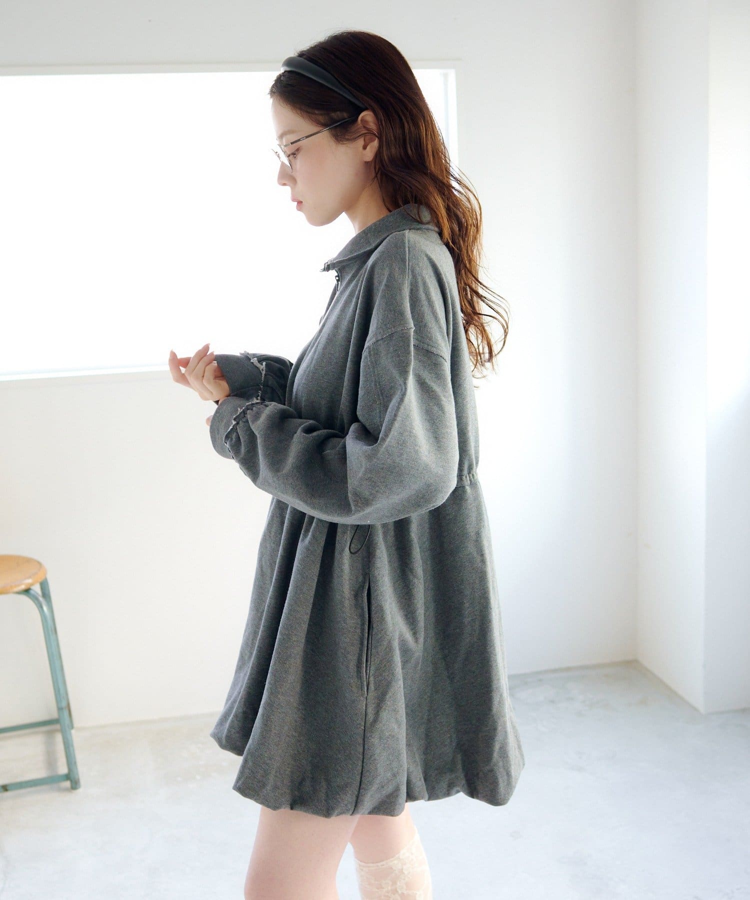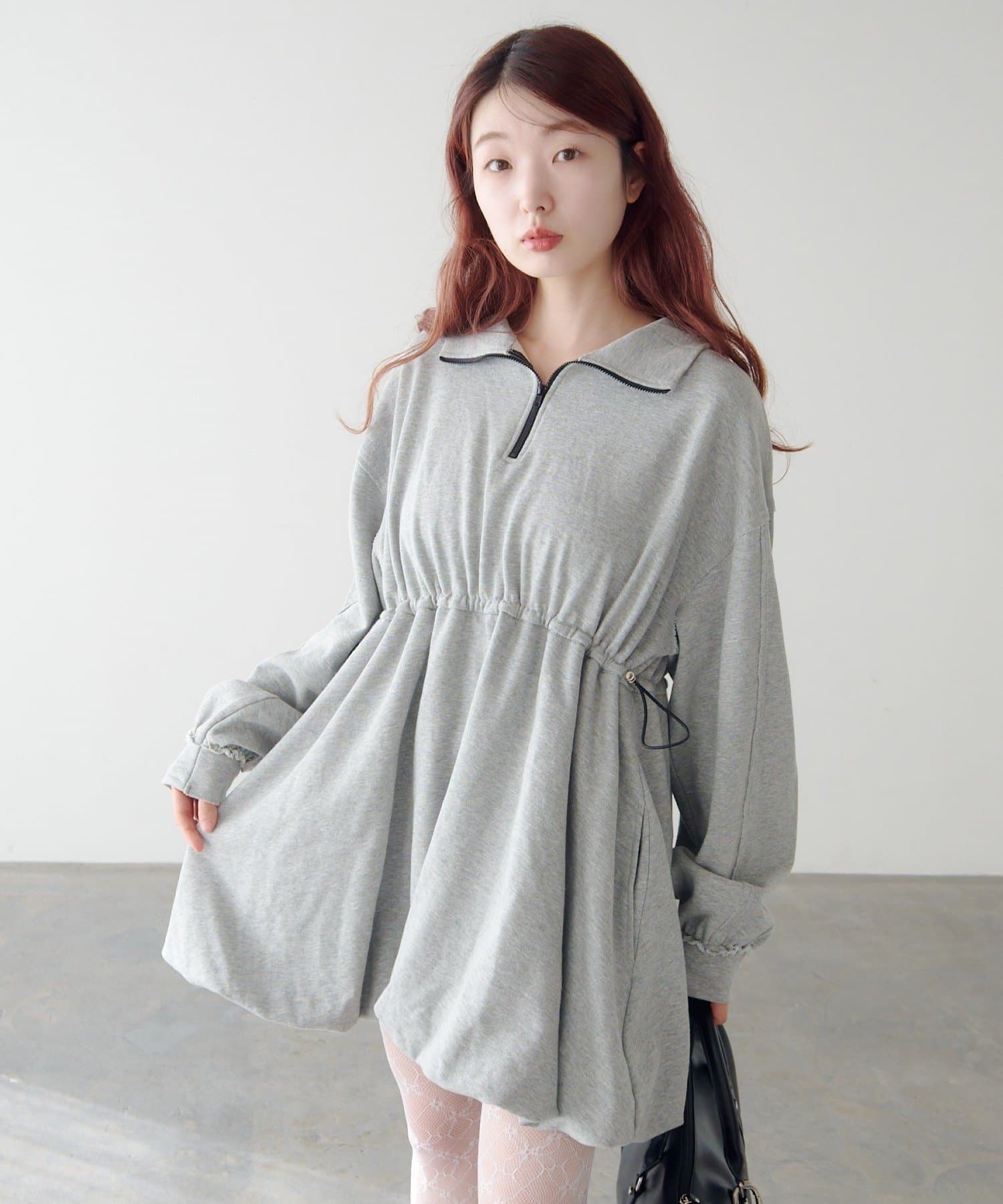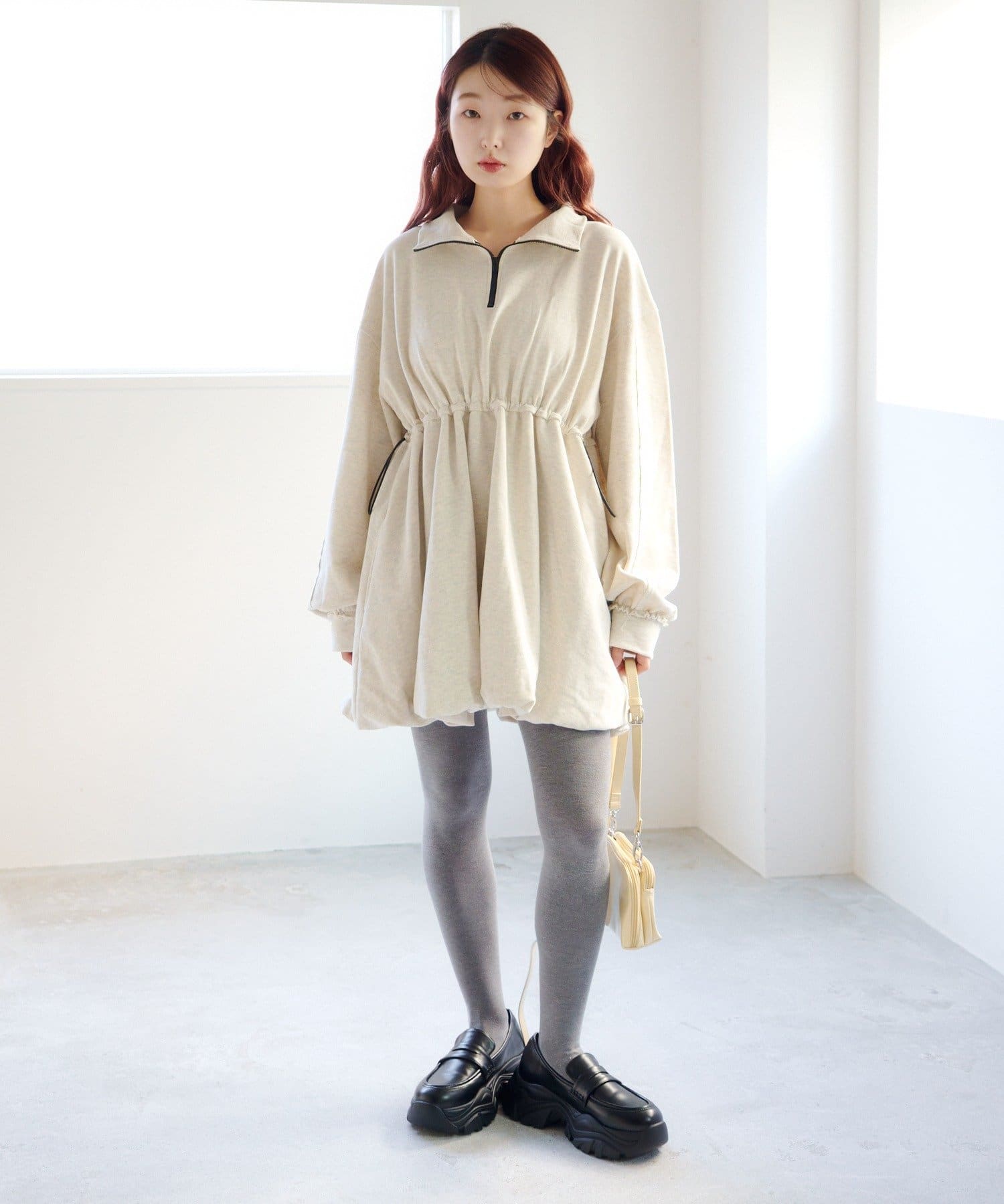 丸みのあるバルーンシルエットが印象的なスウェットミニワンピース。