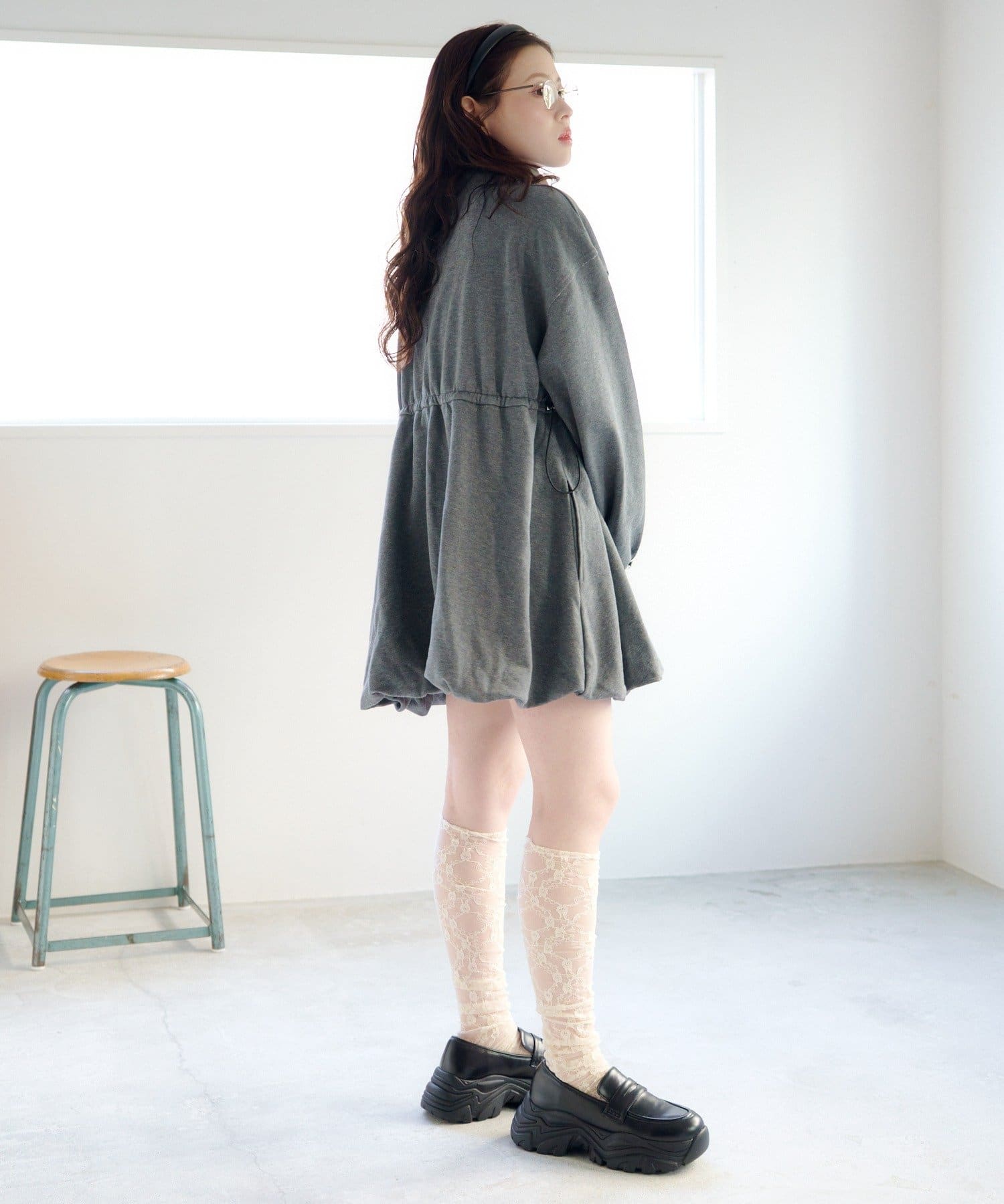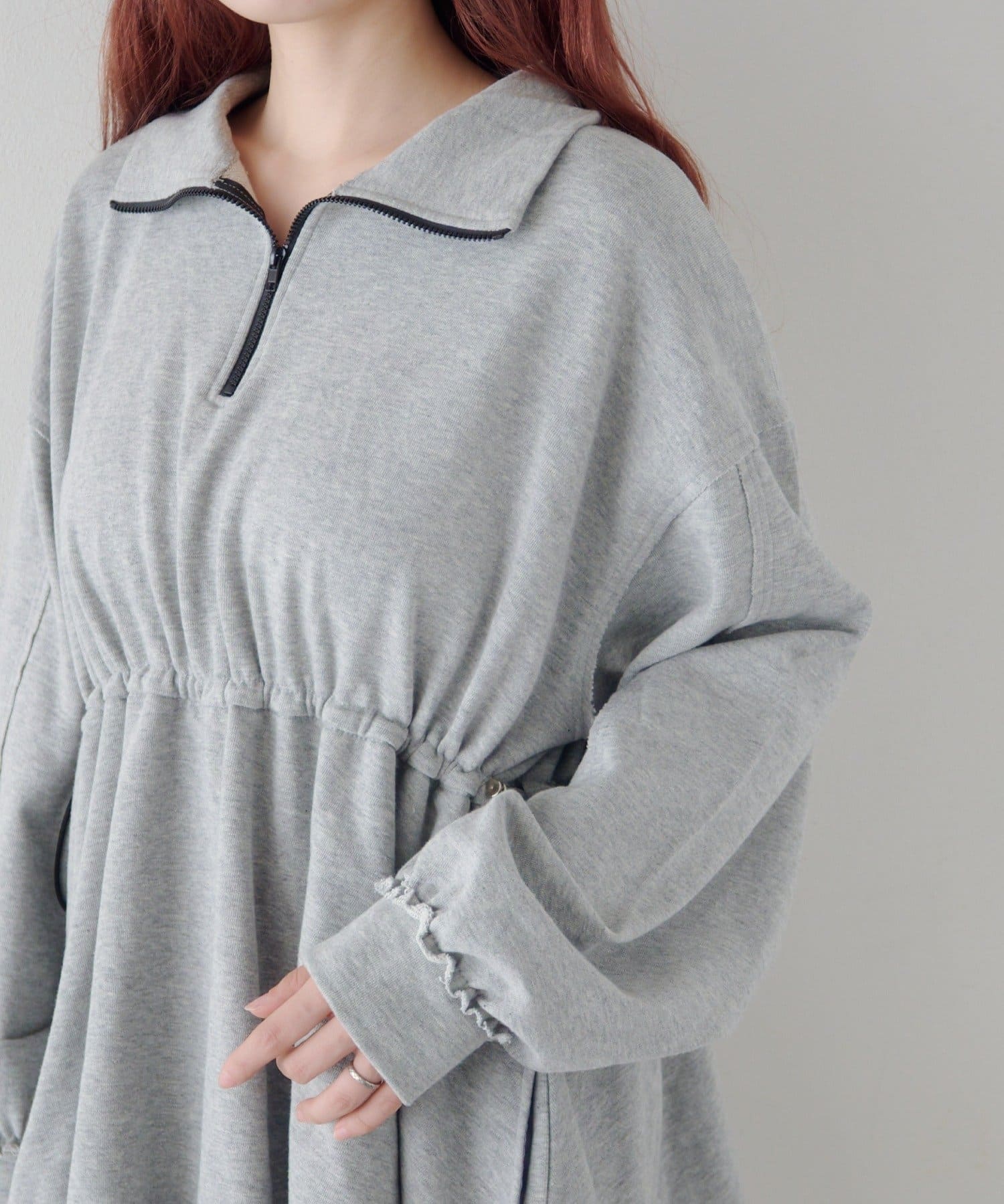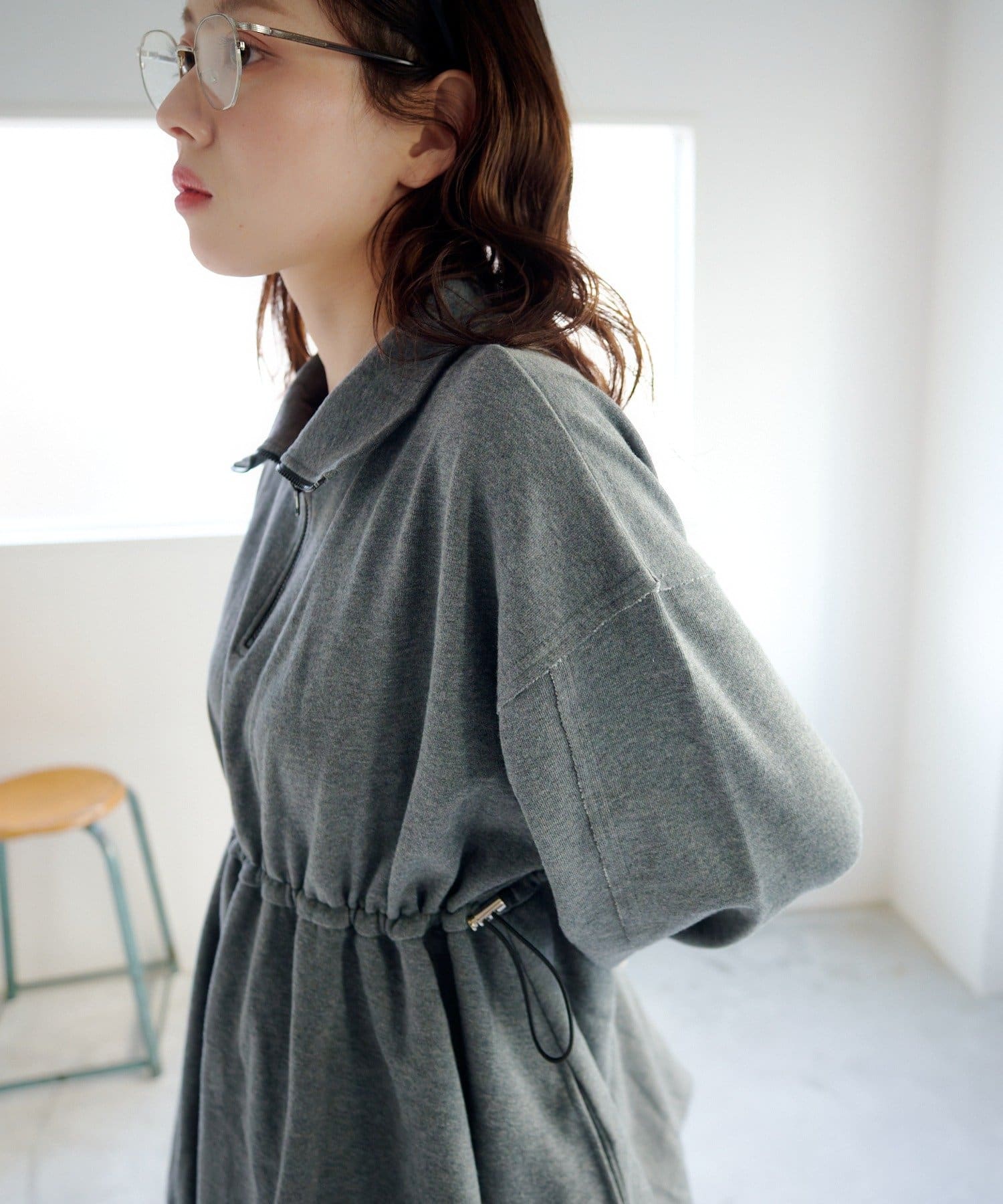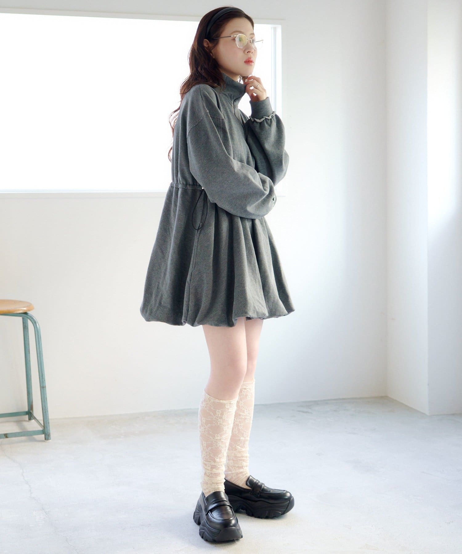 丸みのあるバルーンシルエットが印象的なスウェットミニワンピース。