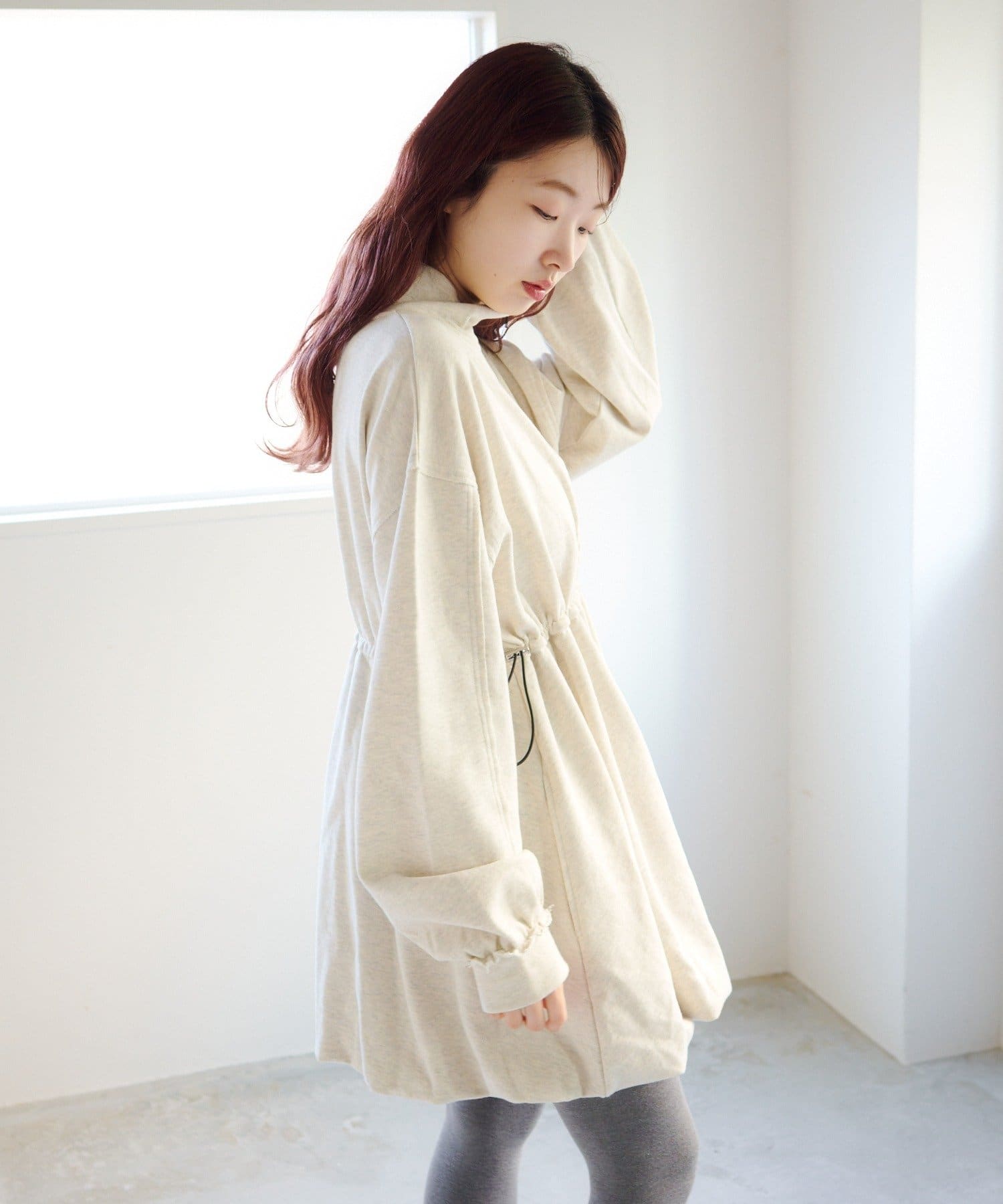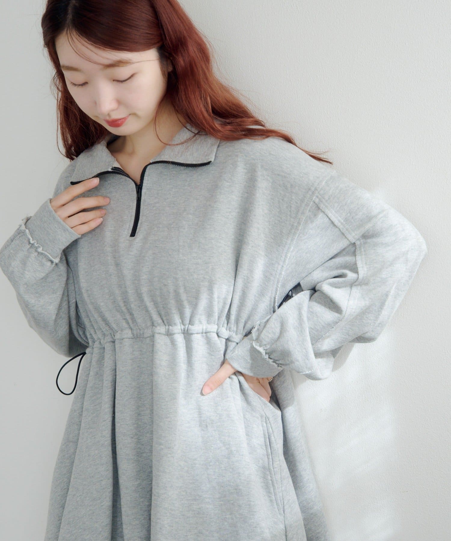 ふんわりシルエットで、一枚でも着映えするスウェットミニワンピース