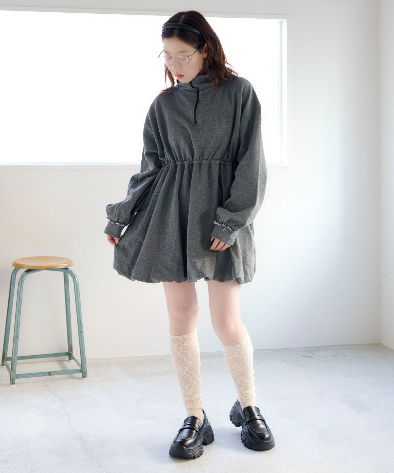 スウェットバルーンミニワンピース