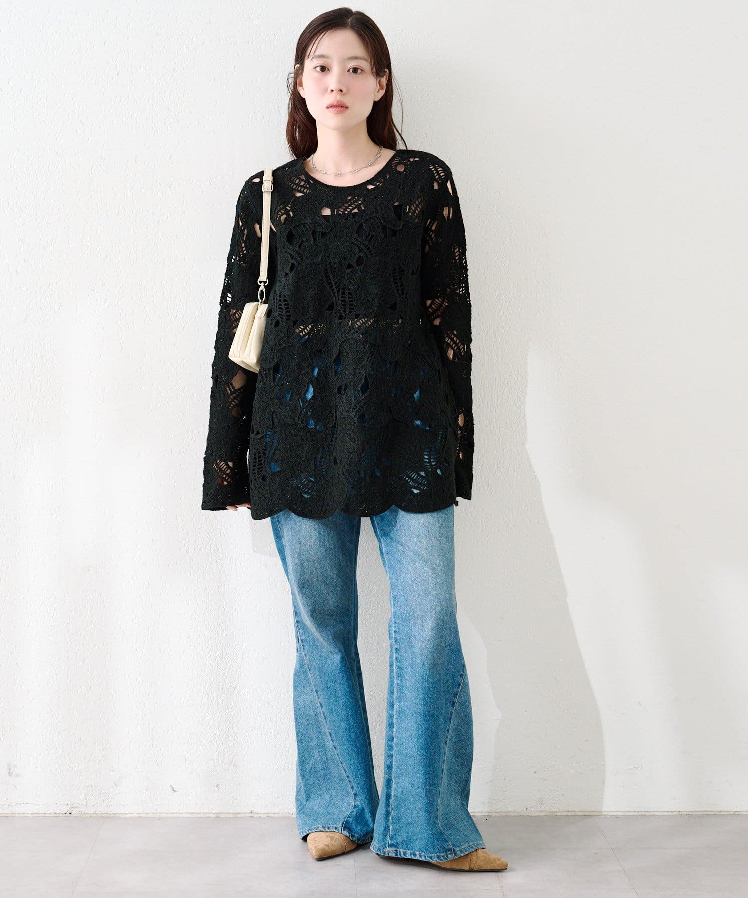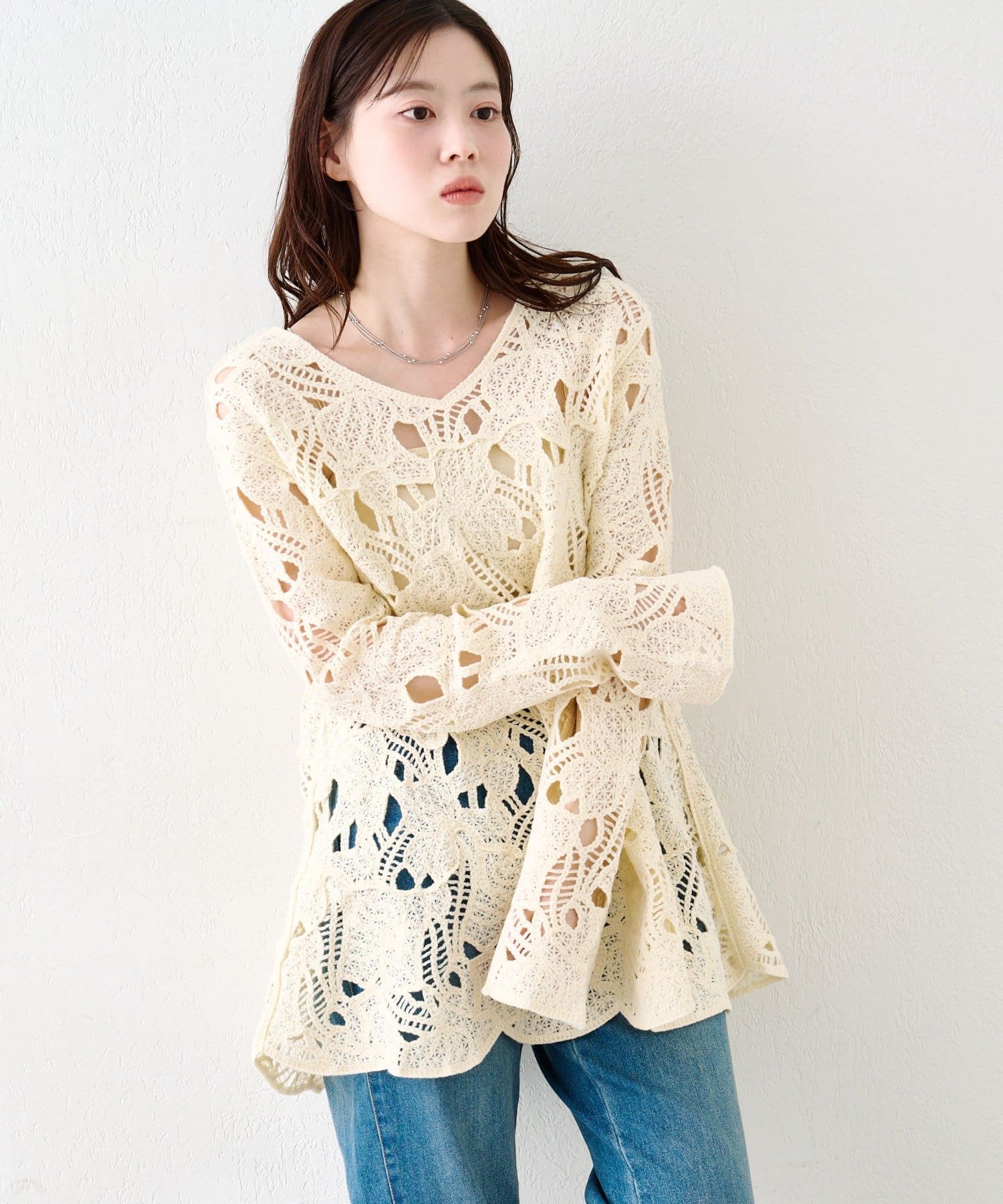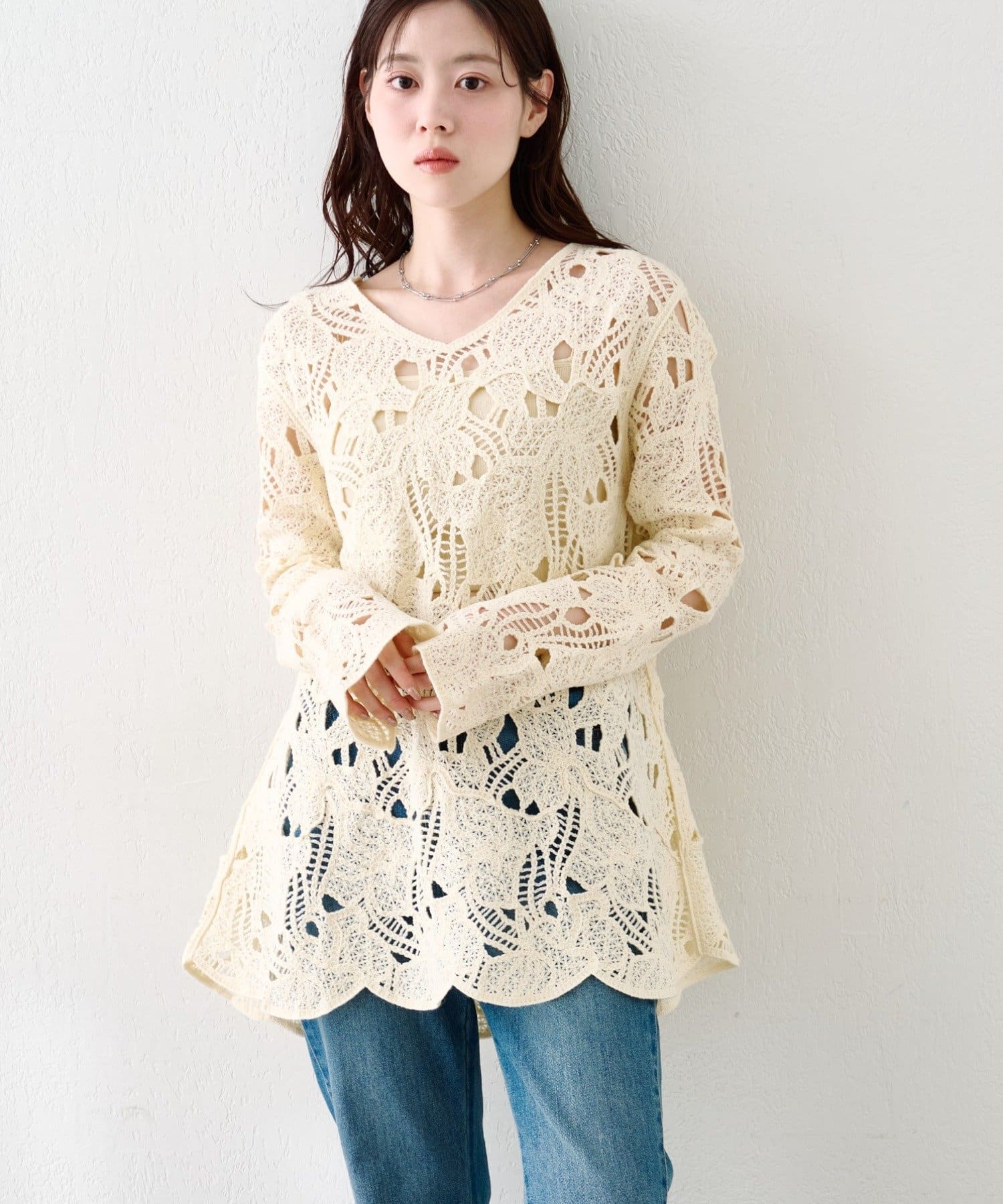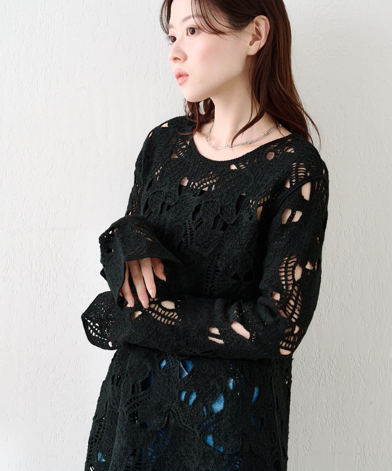 • Kastane(カスタネ) 透かしあみレースミニワンピース