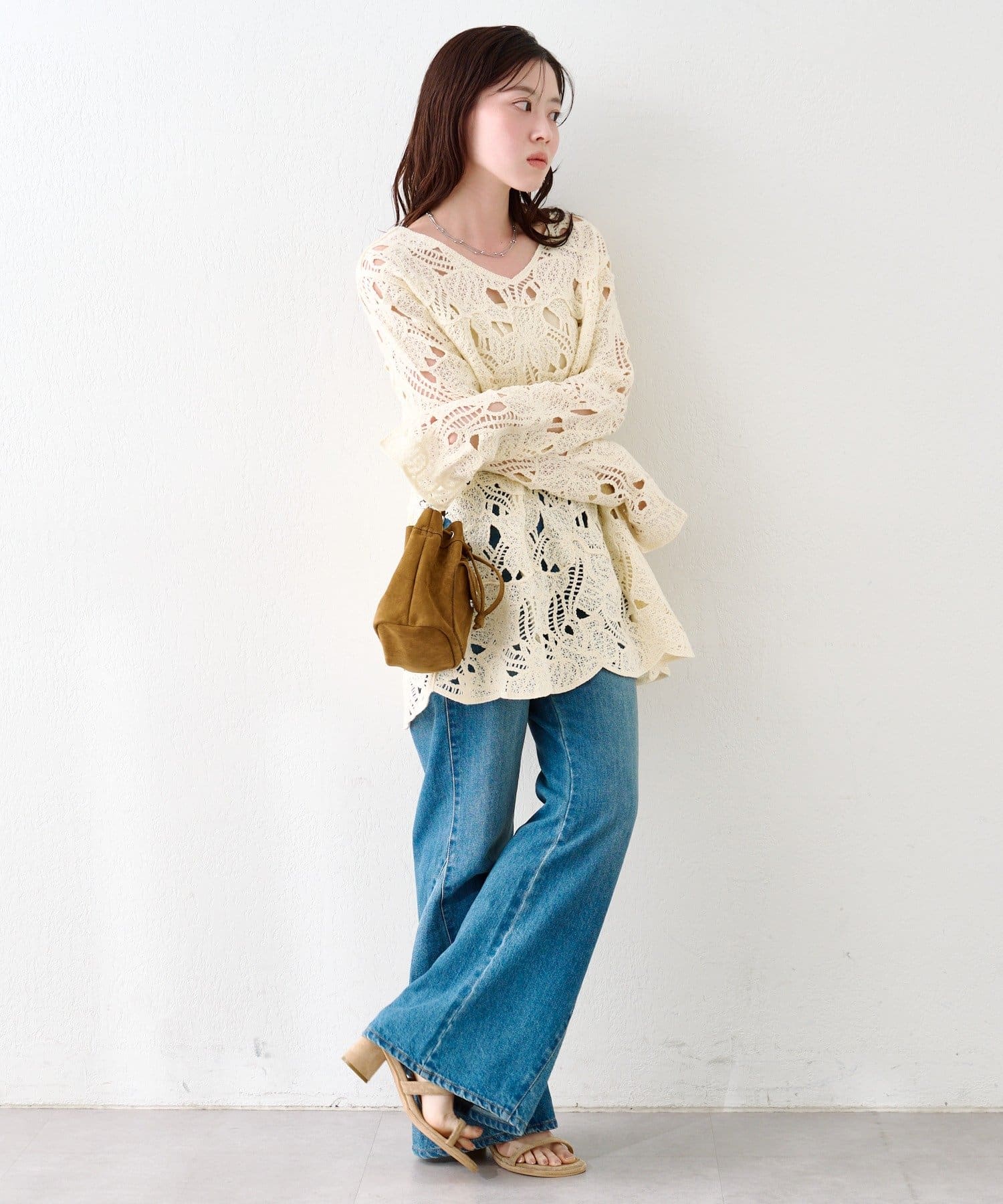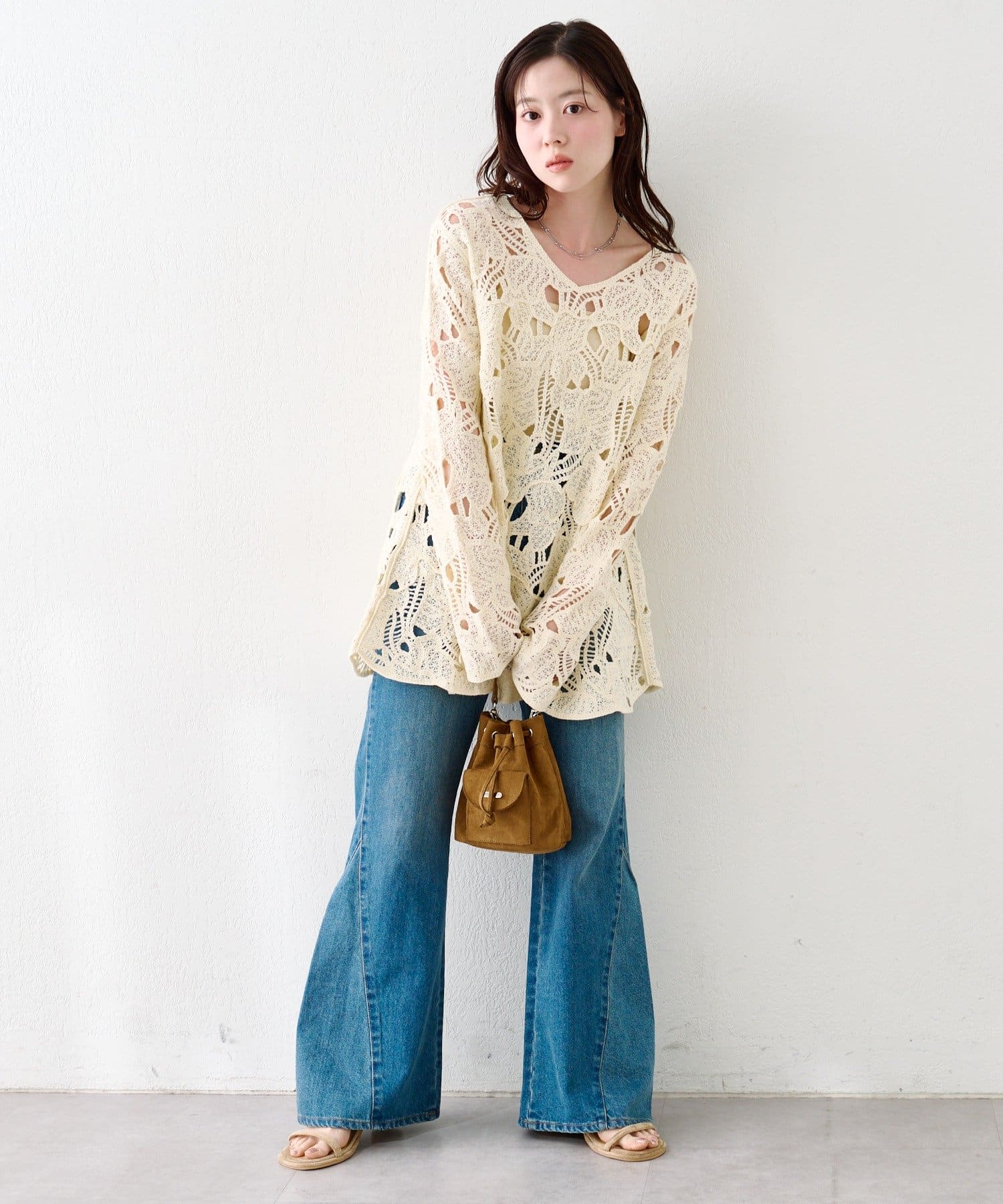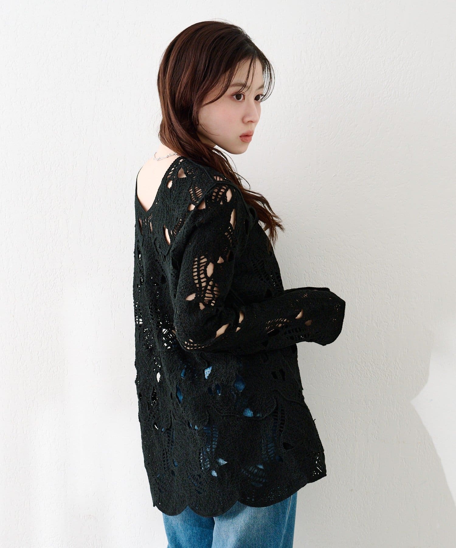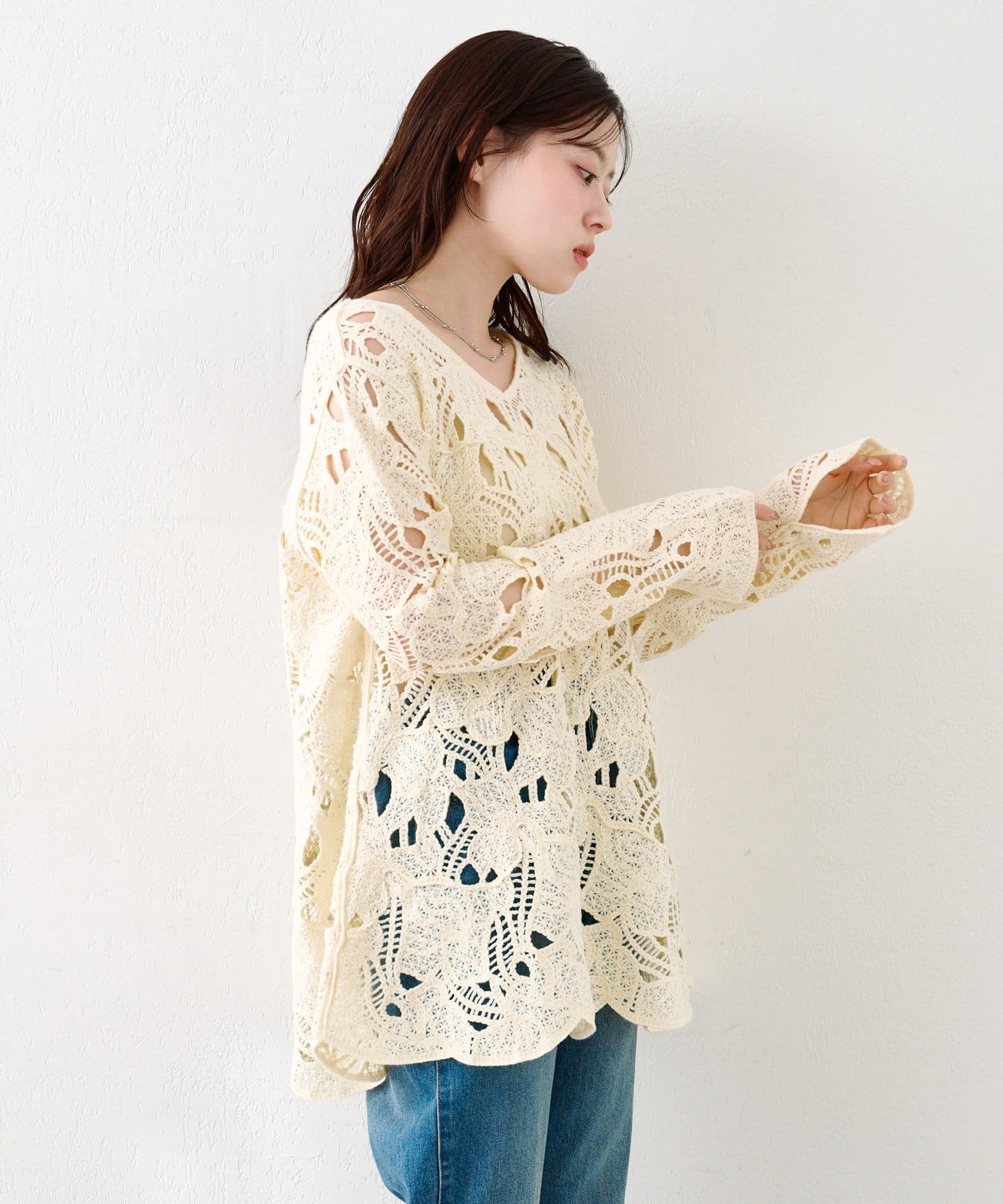 • Kastane(カスタネ) 透かしあみレースミニワンピース