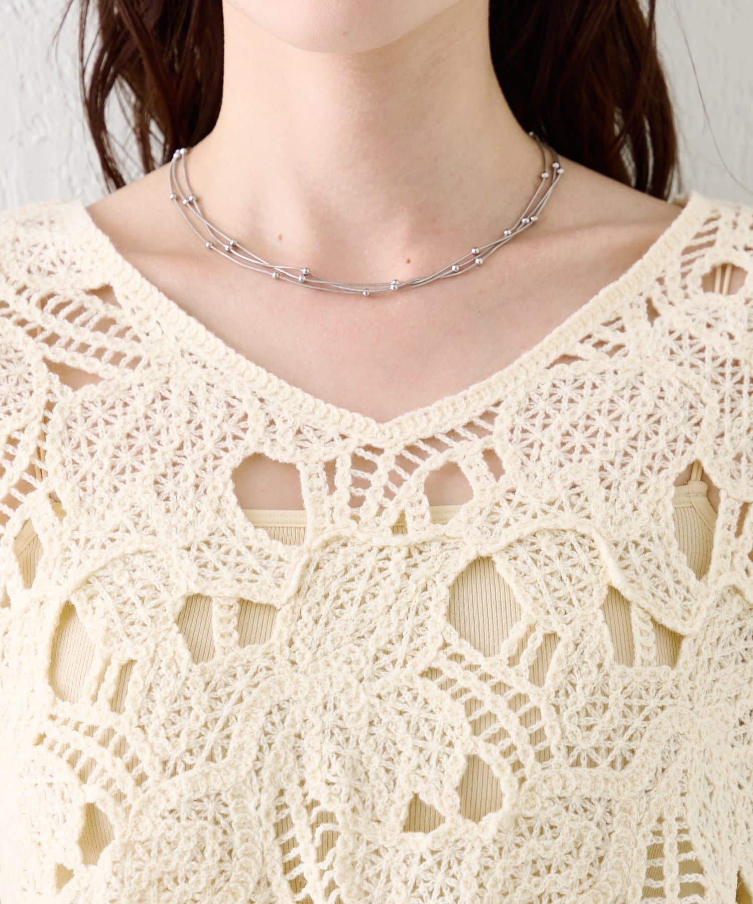 キャミワンピと重ねてフェミニンコーデが完成。