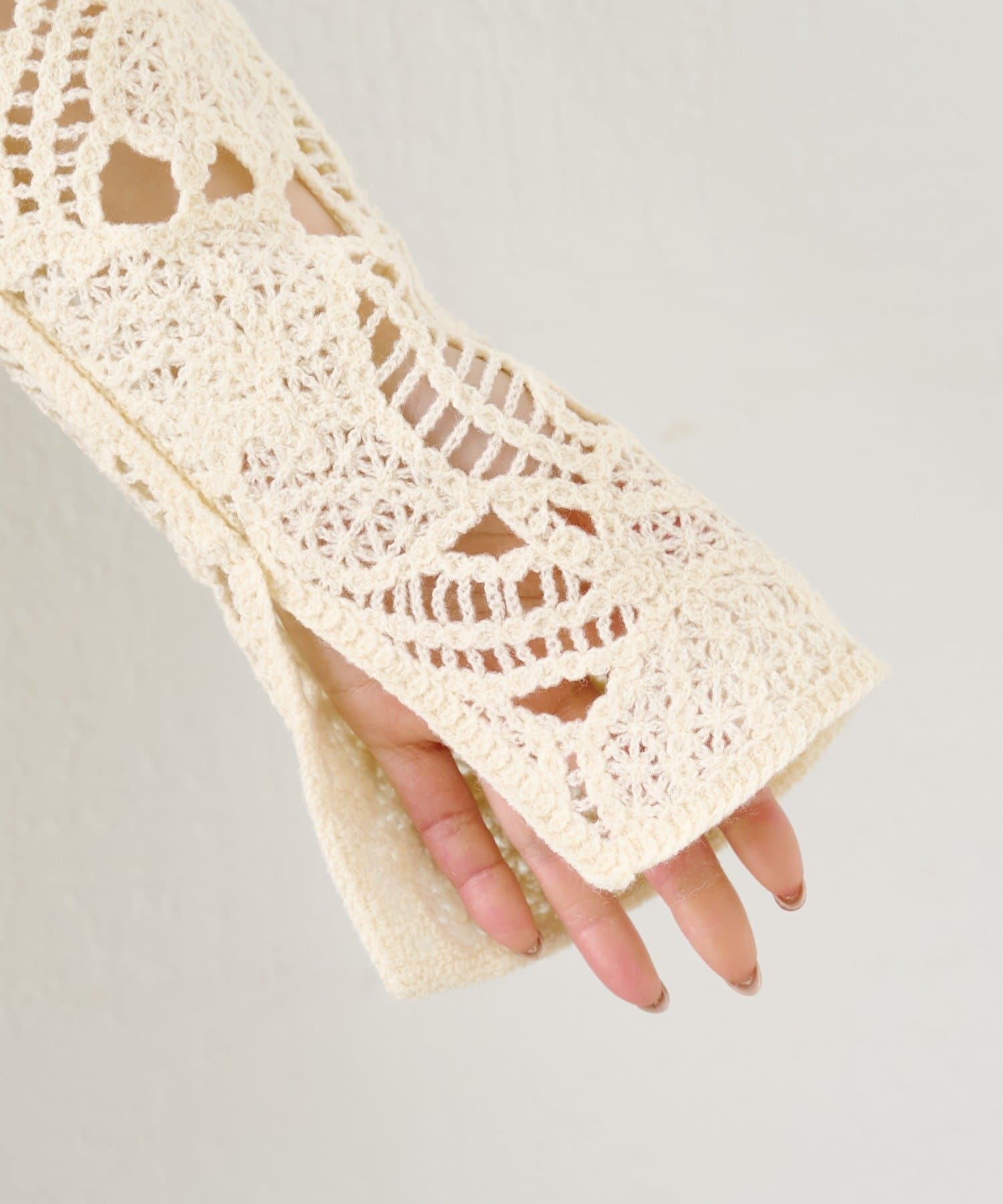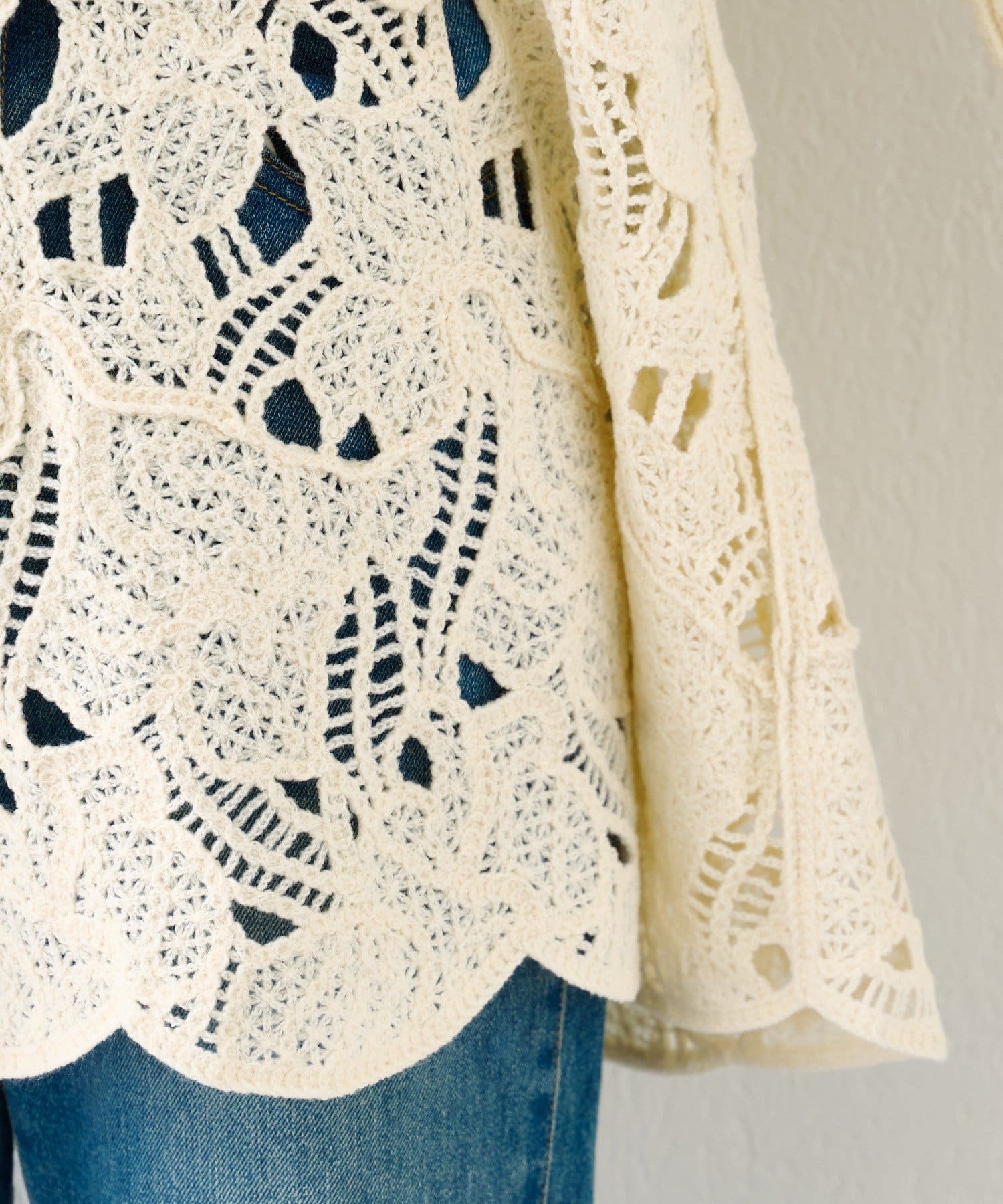 立体感のあるレース編み素材を使用。