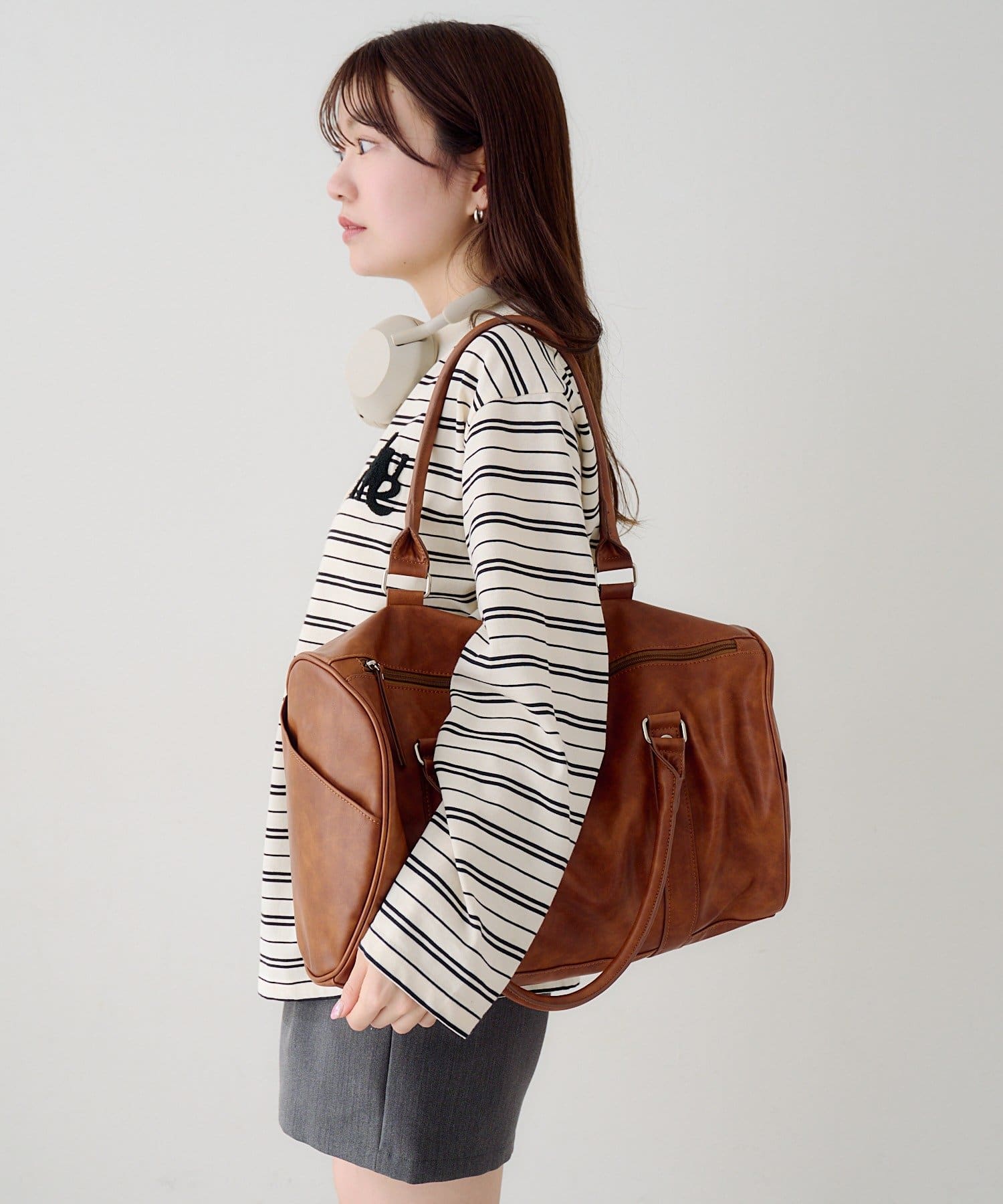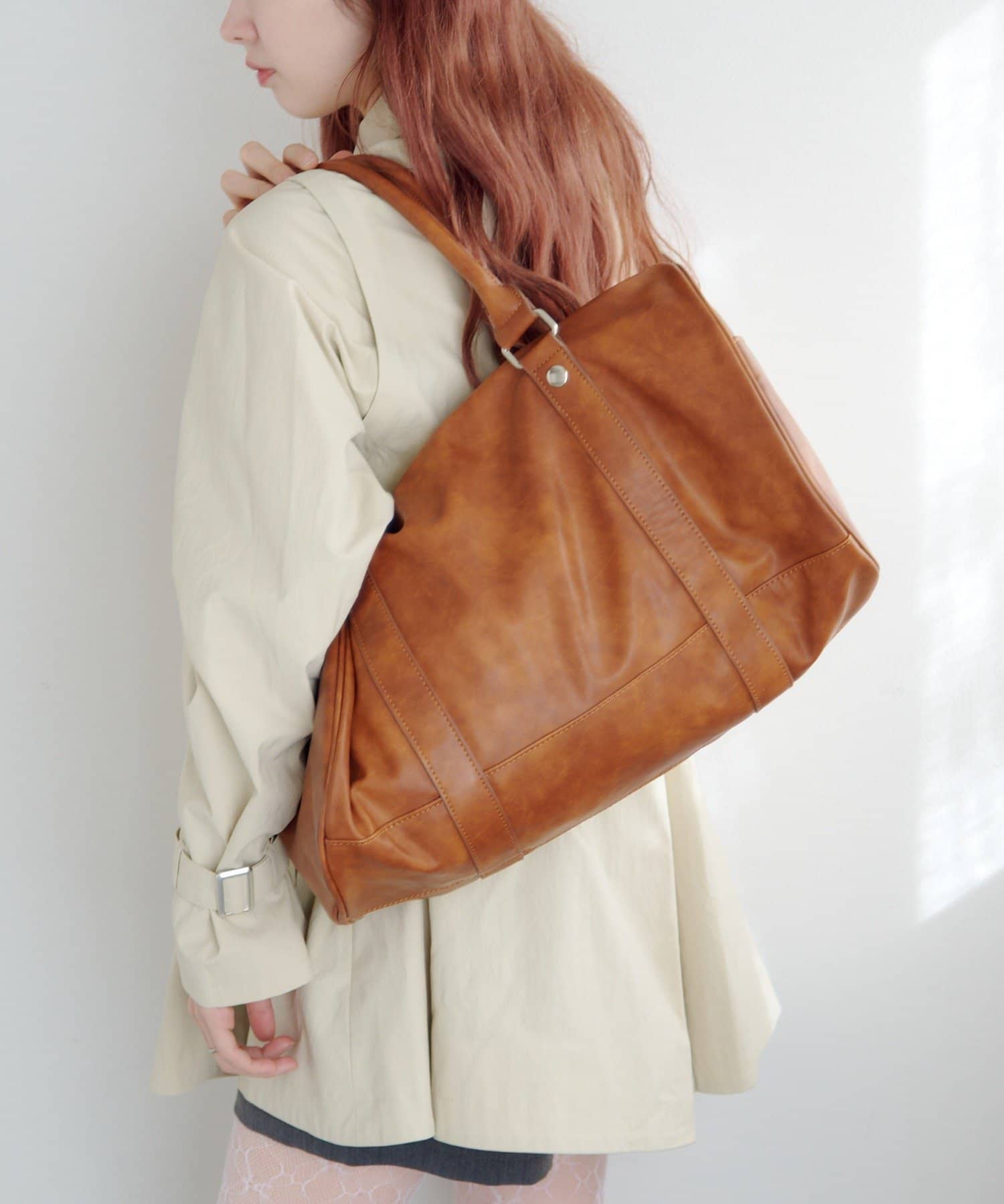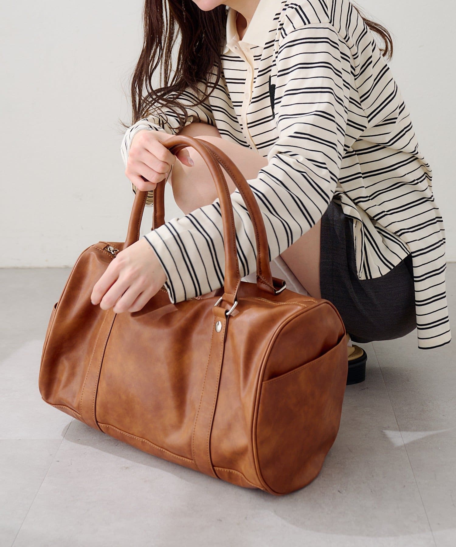 程よくハリのある素材感で、持ったときに形が崩れにくく、スタイリングに安定感を与えてくれます。