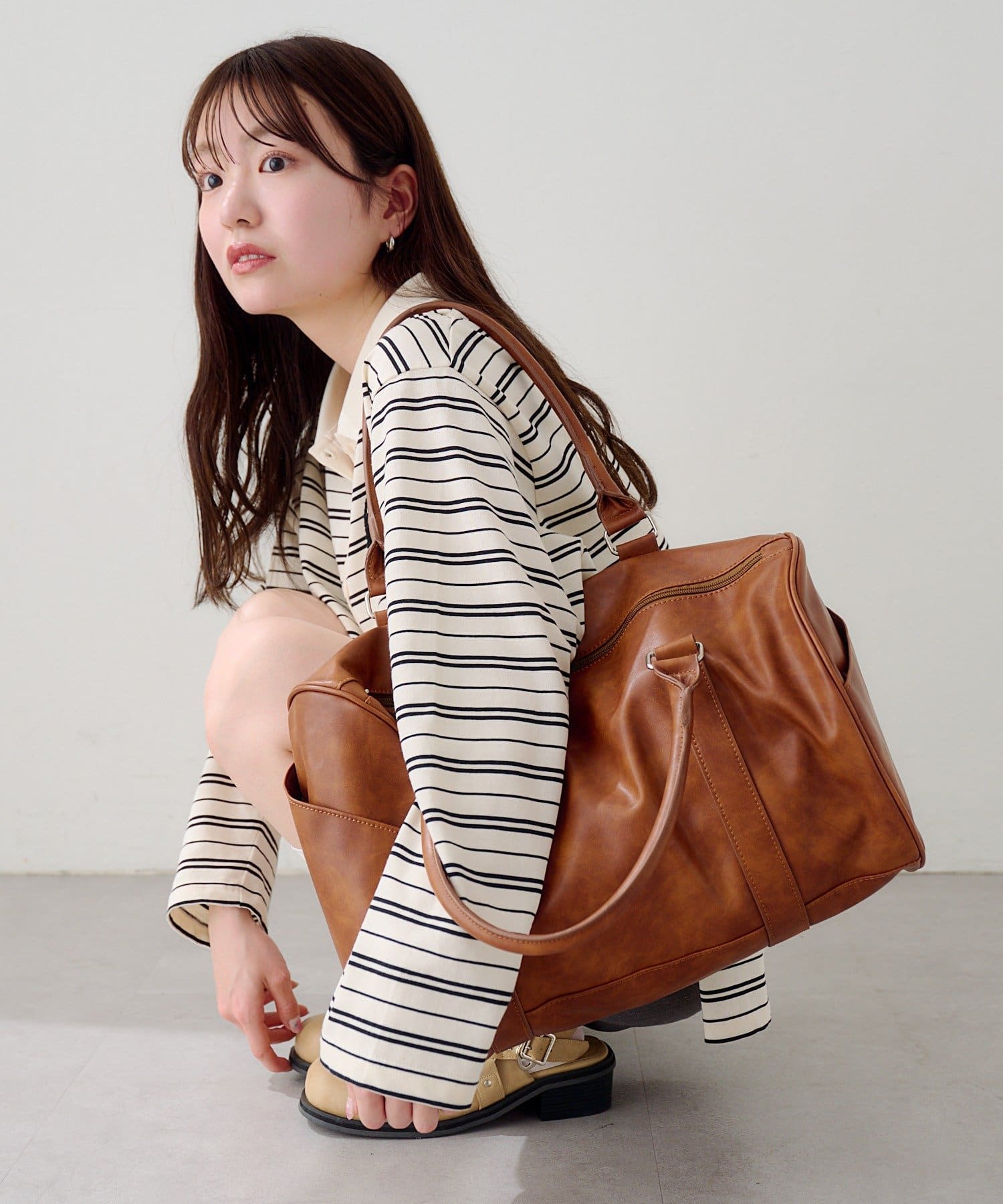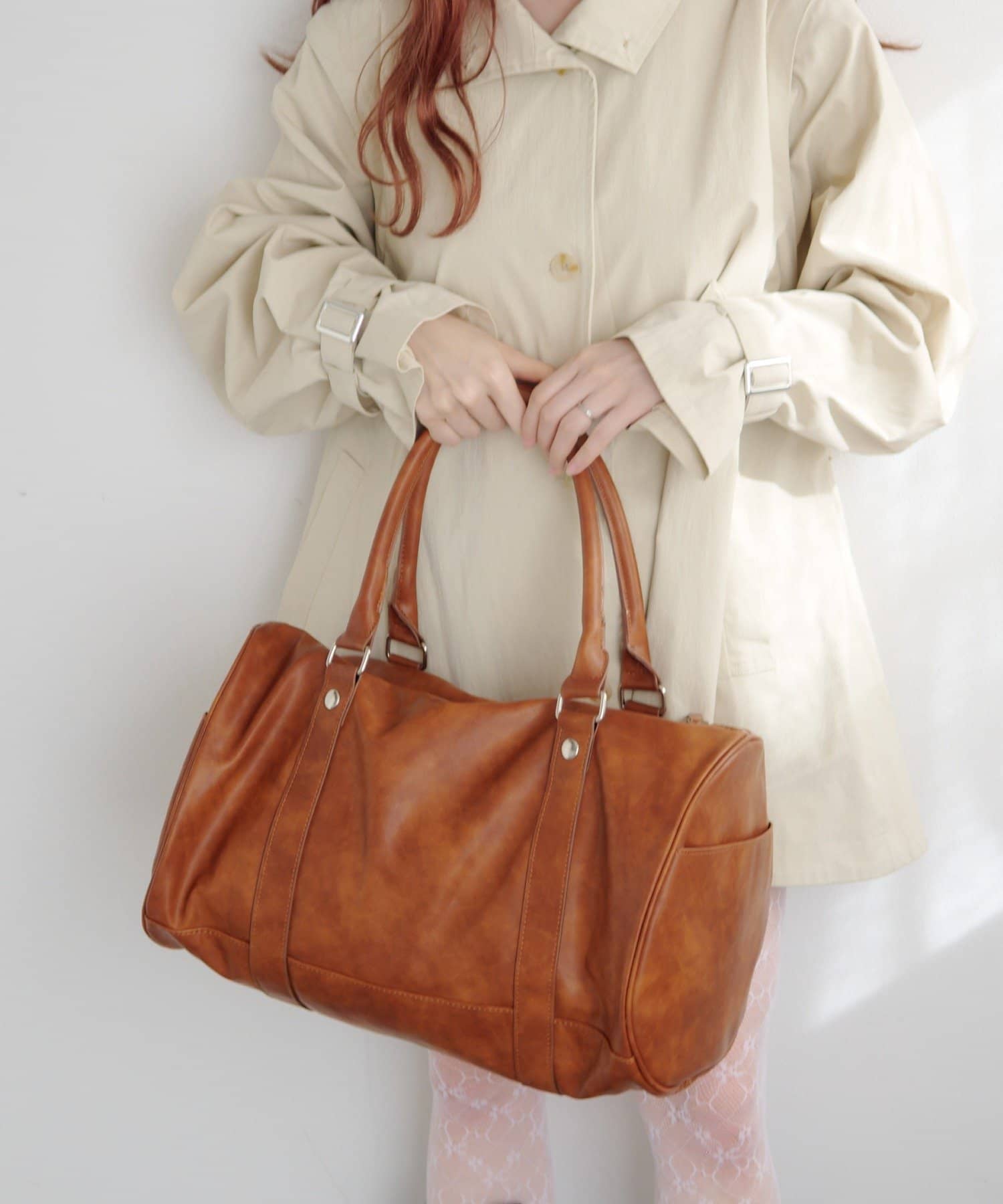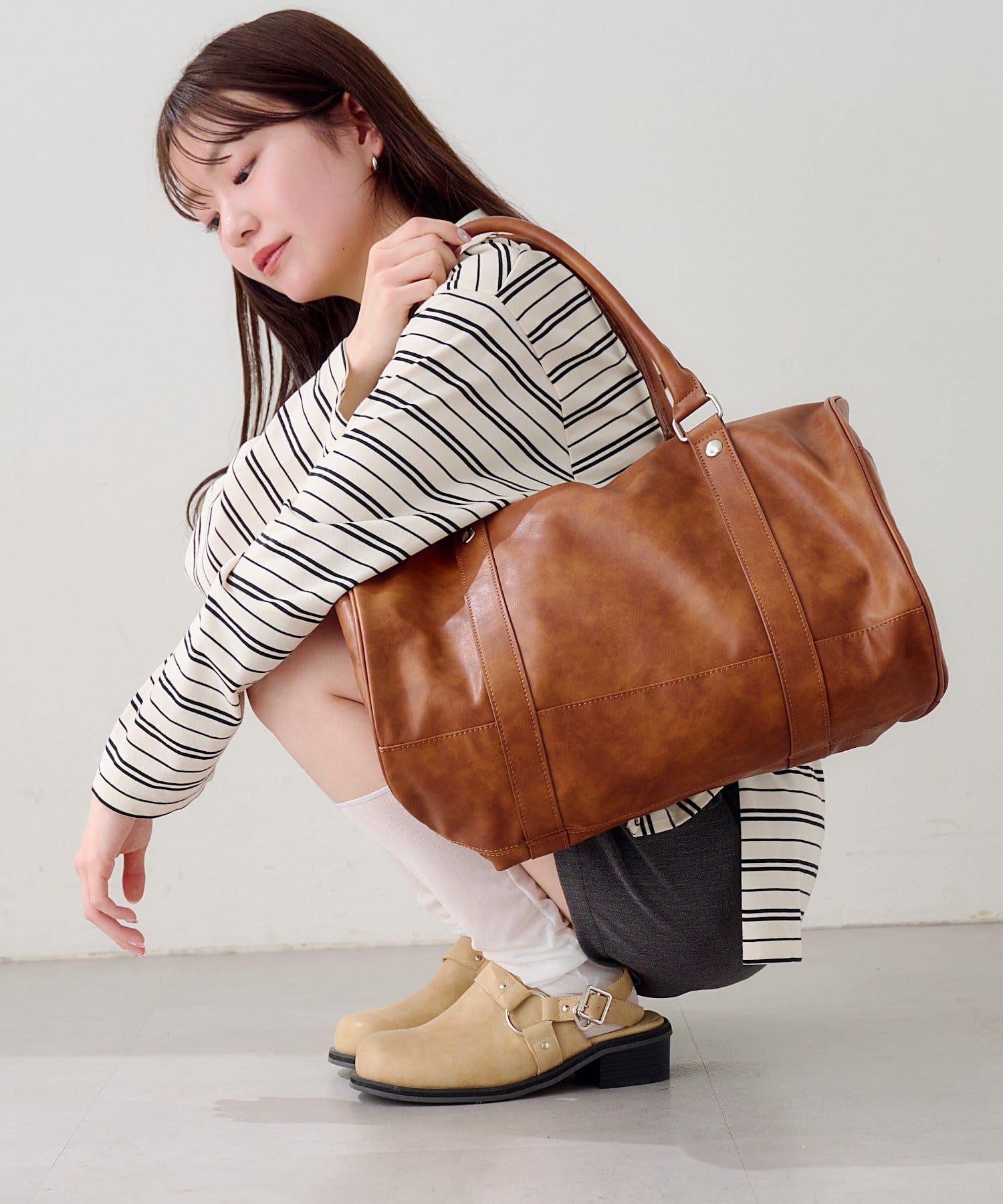 程よくハリのある素材感で、持ったときに形が崩れにくく、スタイリングに安定感を与えてくれます。