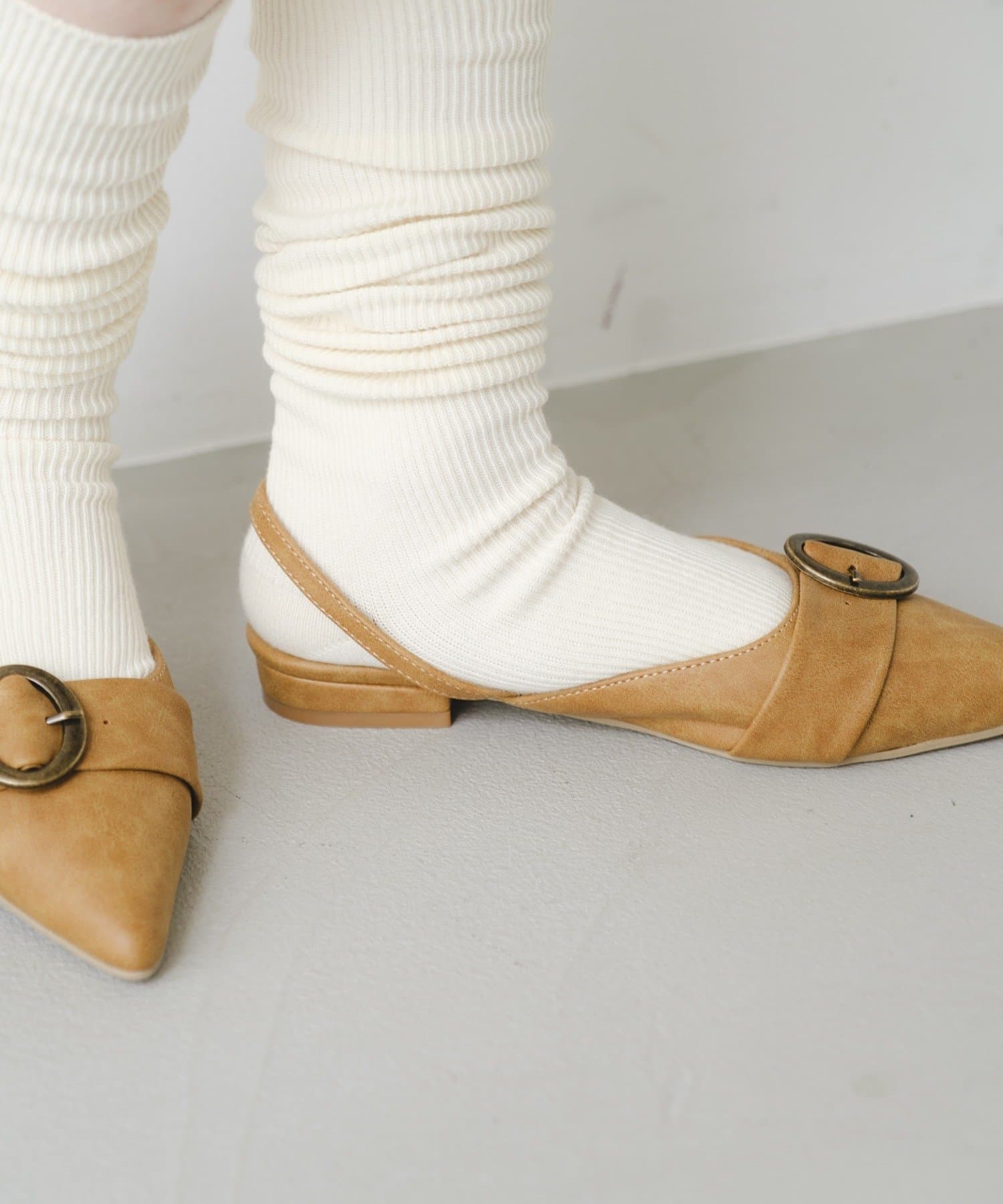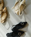 甲部分のベルトデザインが足元にアクセントをプラスし、シンプルながらも洗練された印象に。
