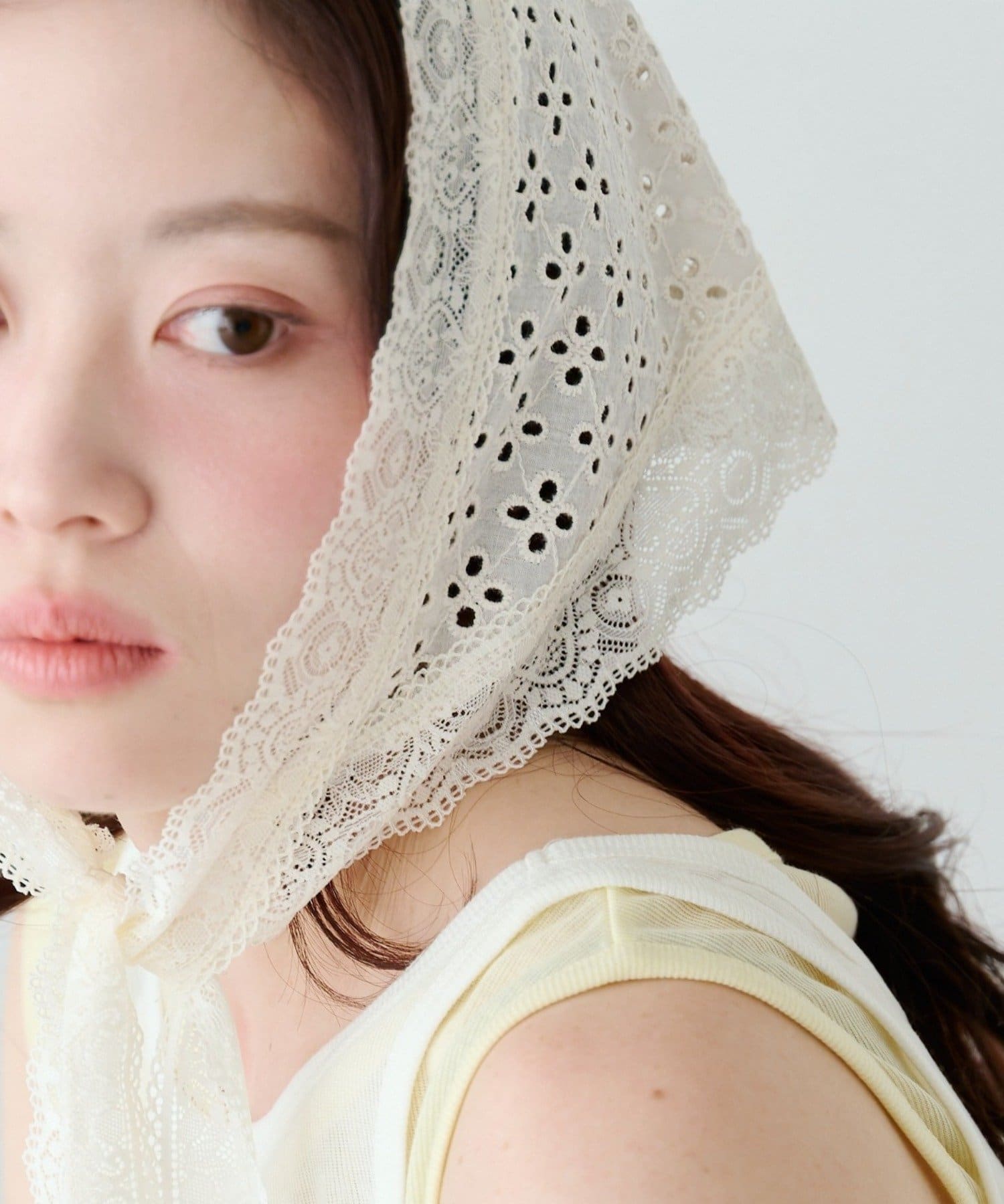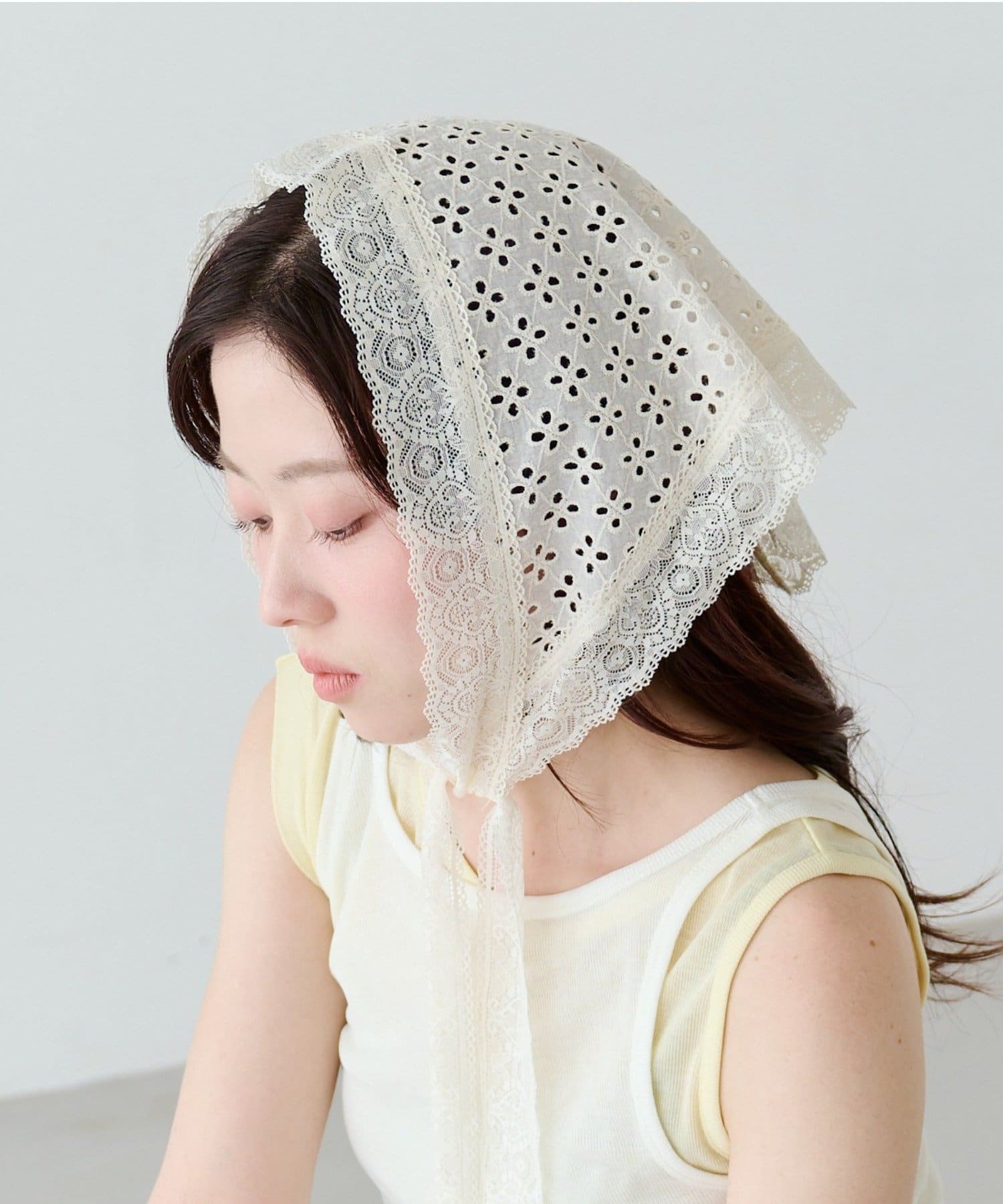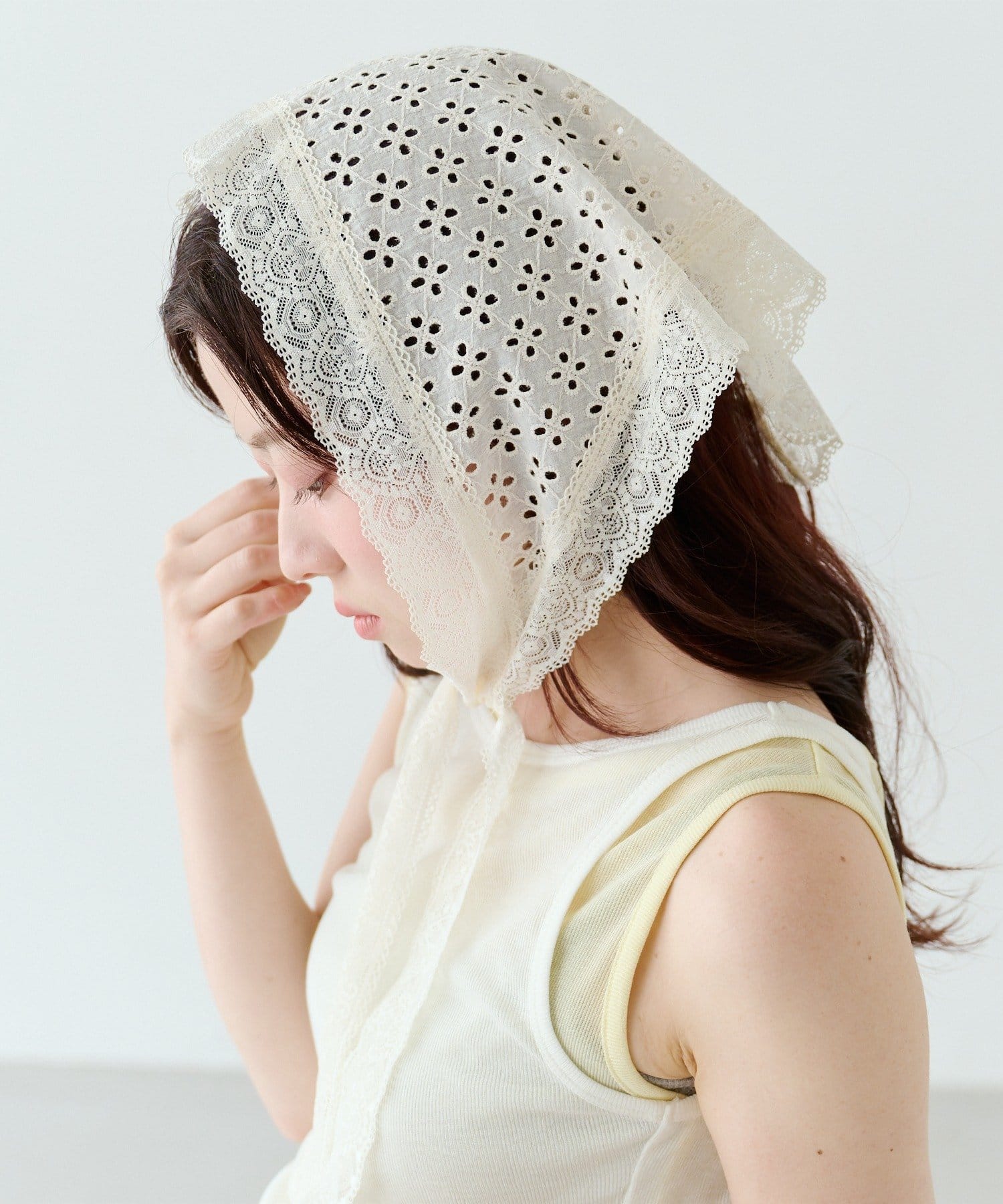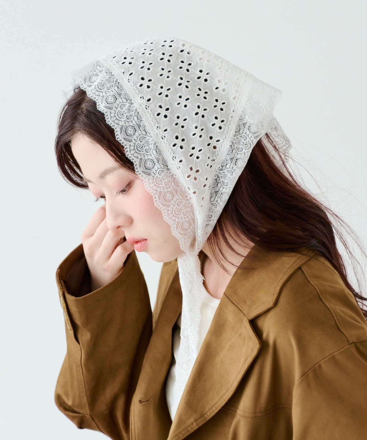繊細なフラワーレースが美しく映える、上品なレーススカーフ。